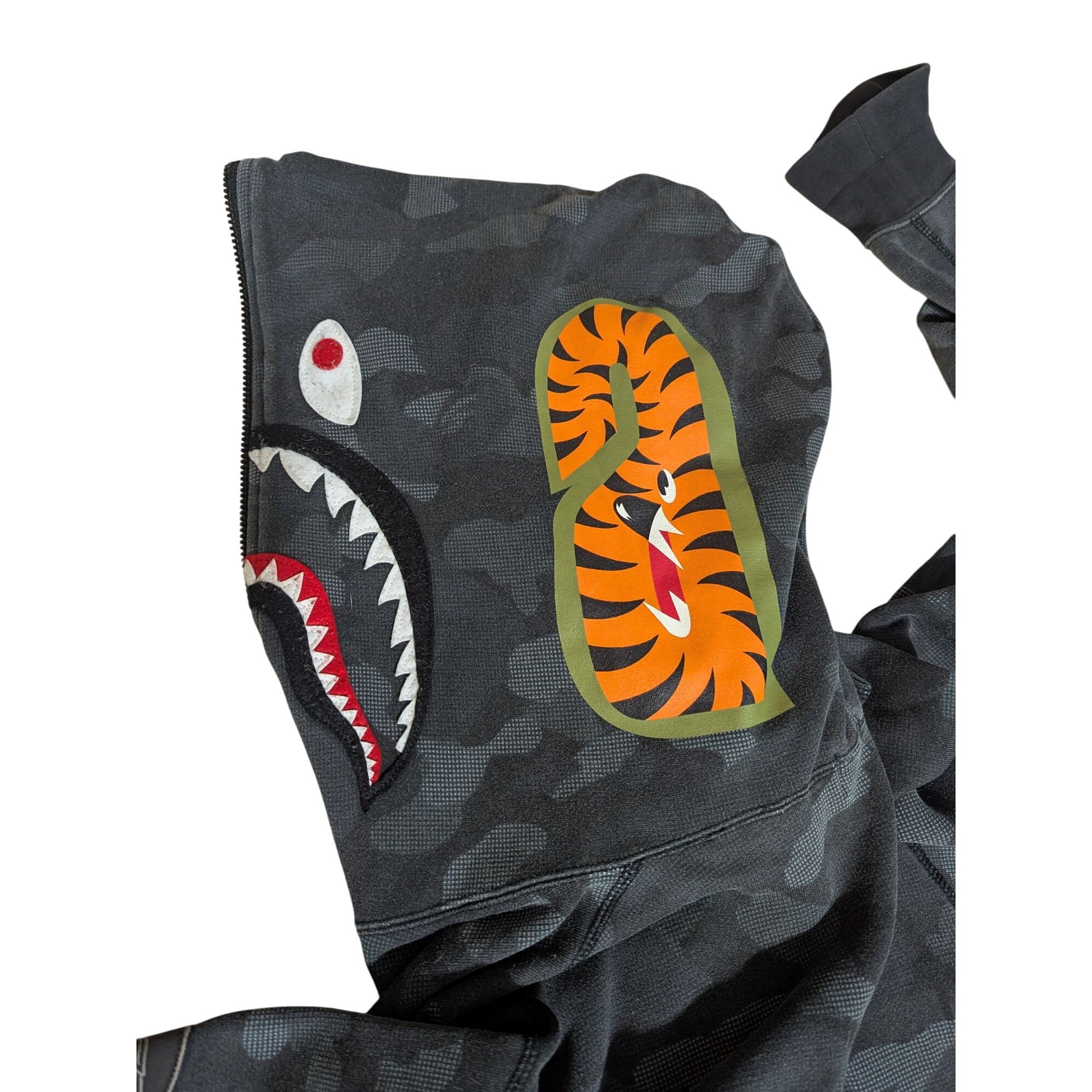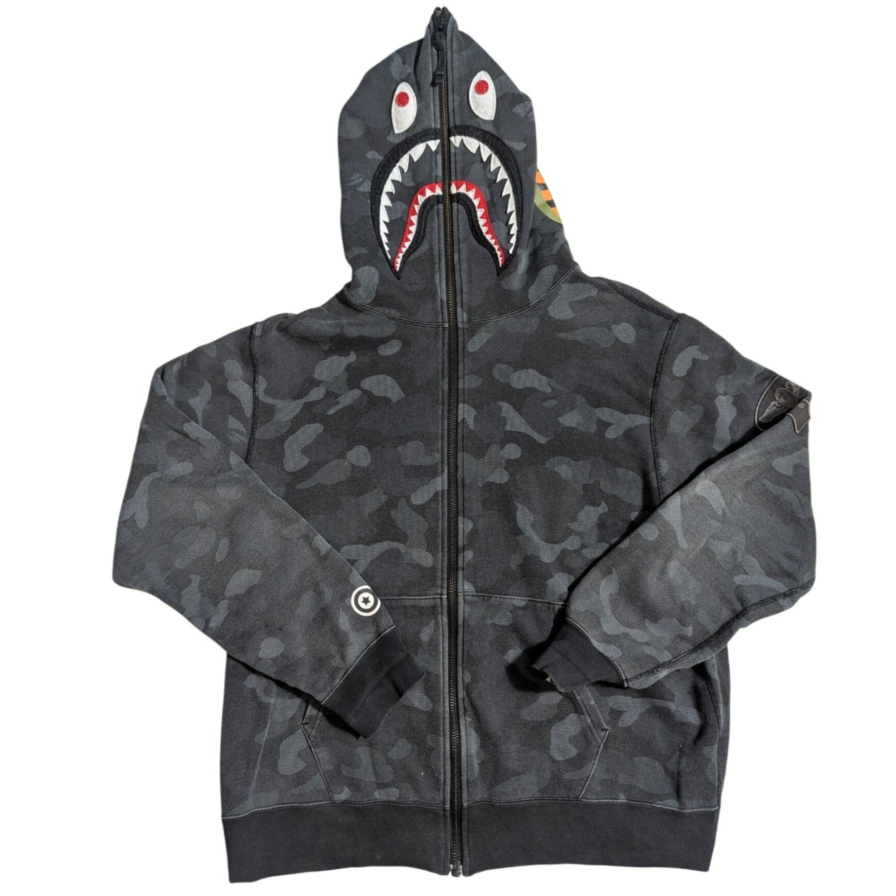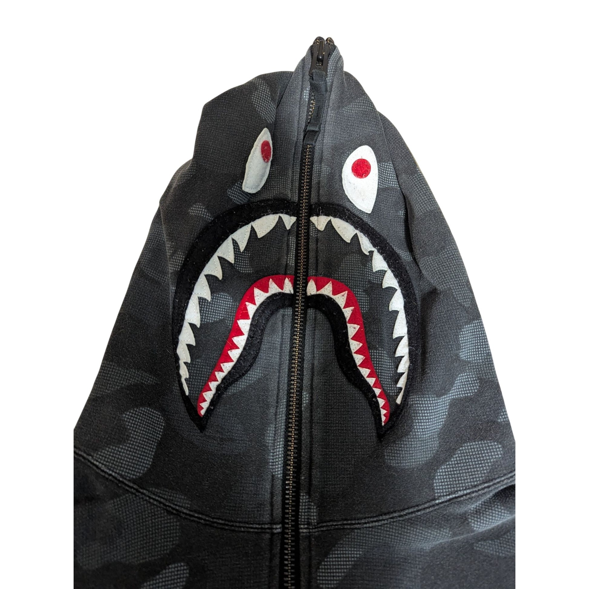 A Bathing Ape Shark Hoodie Camo Motif Full Zip 2XL Noir & Gris
