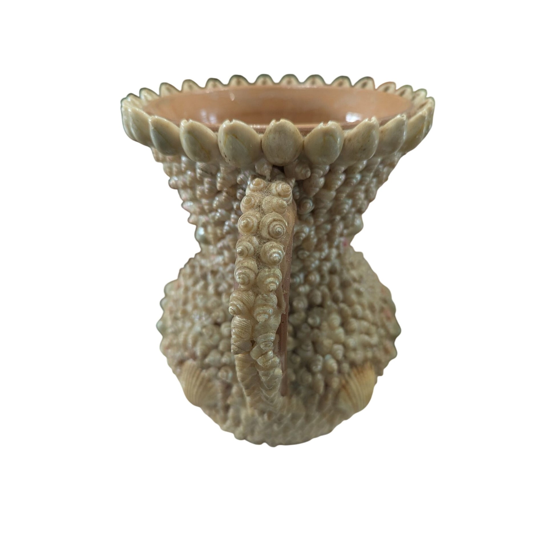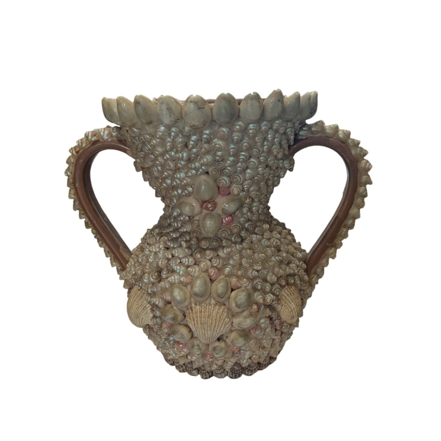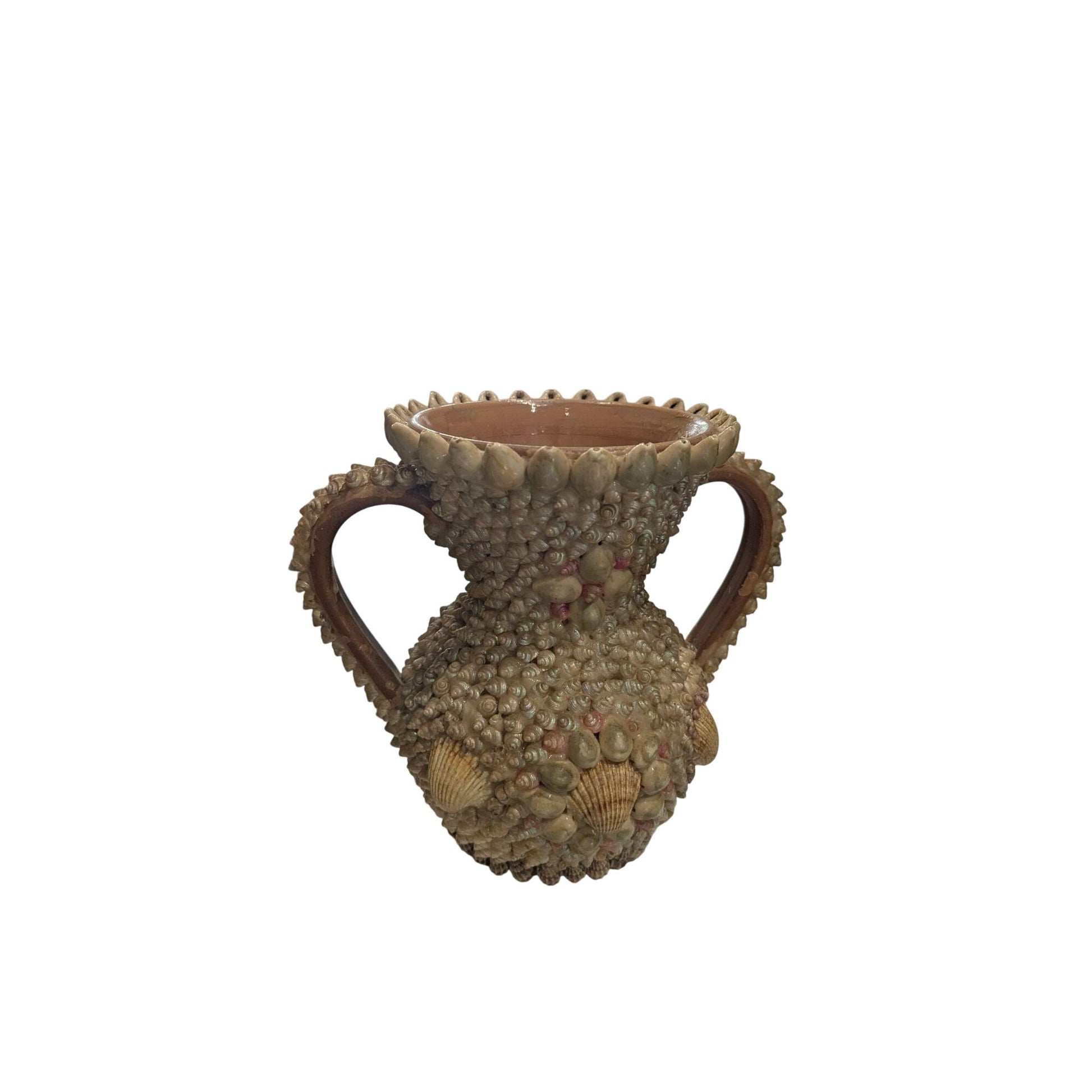 Vase décoratif en céramique incrusté de coquillages, fabriqué à la main, avec deux anses