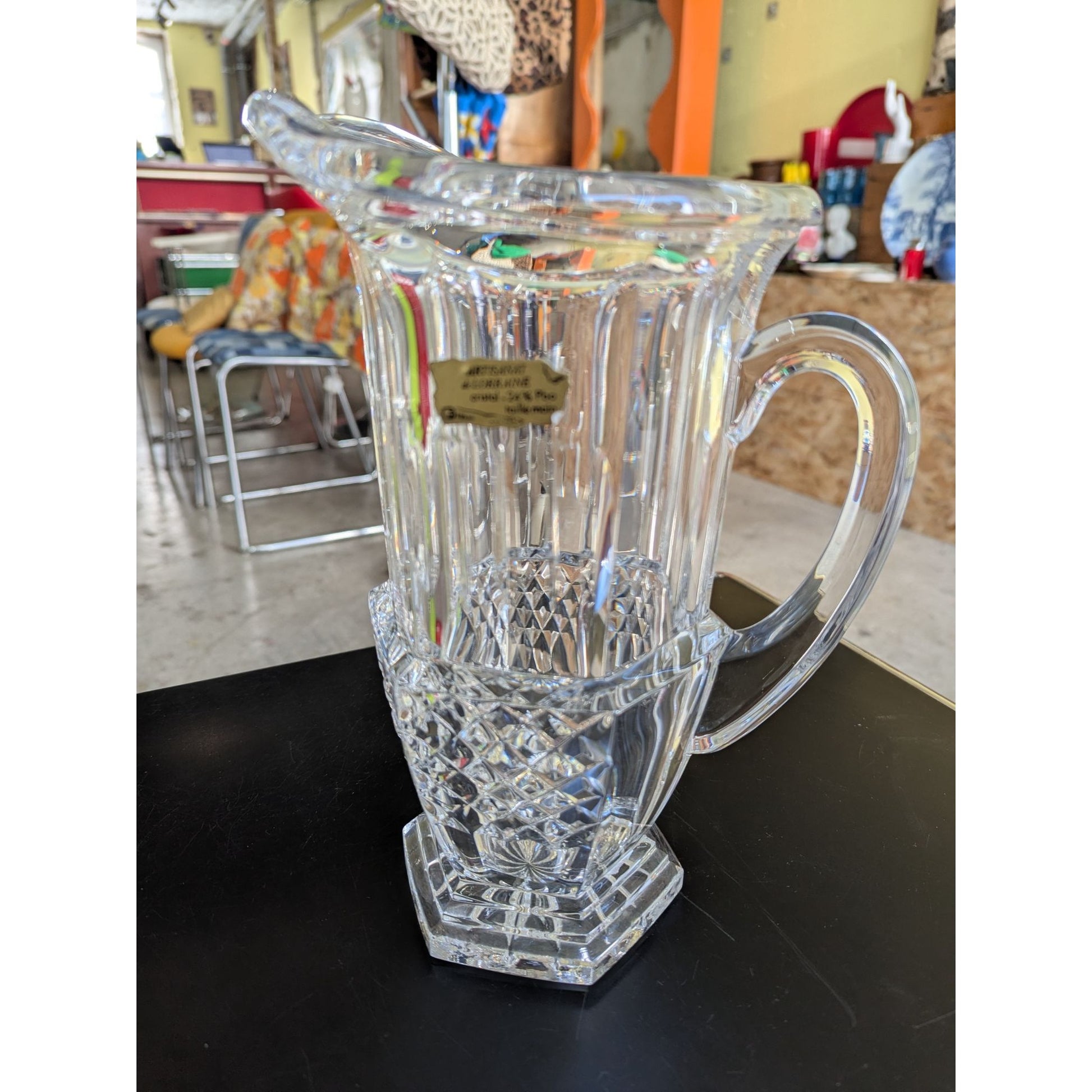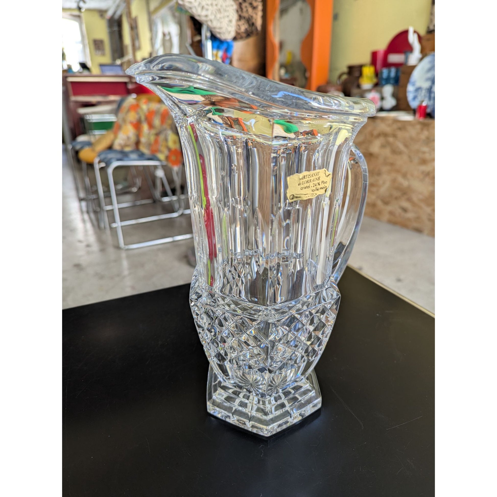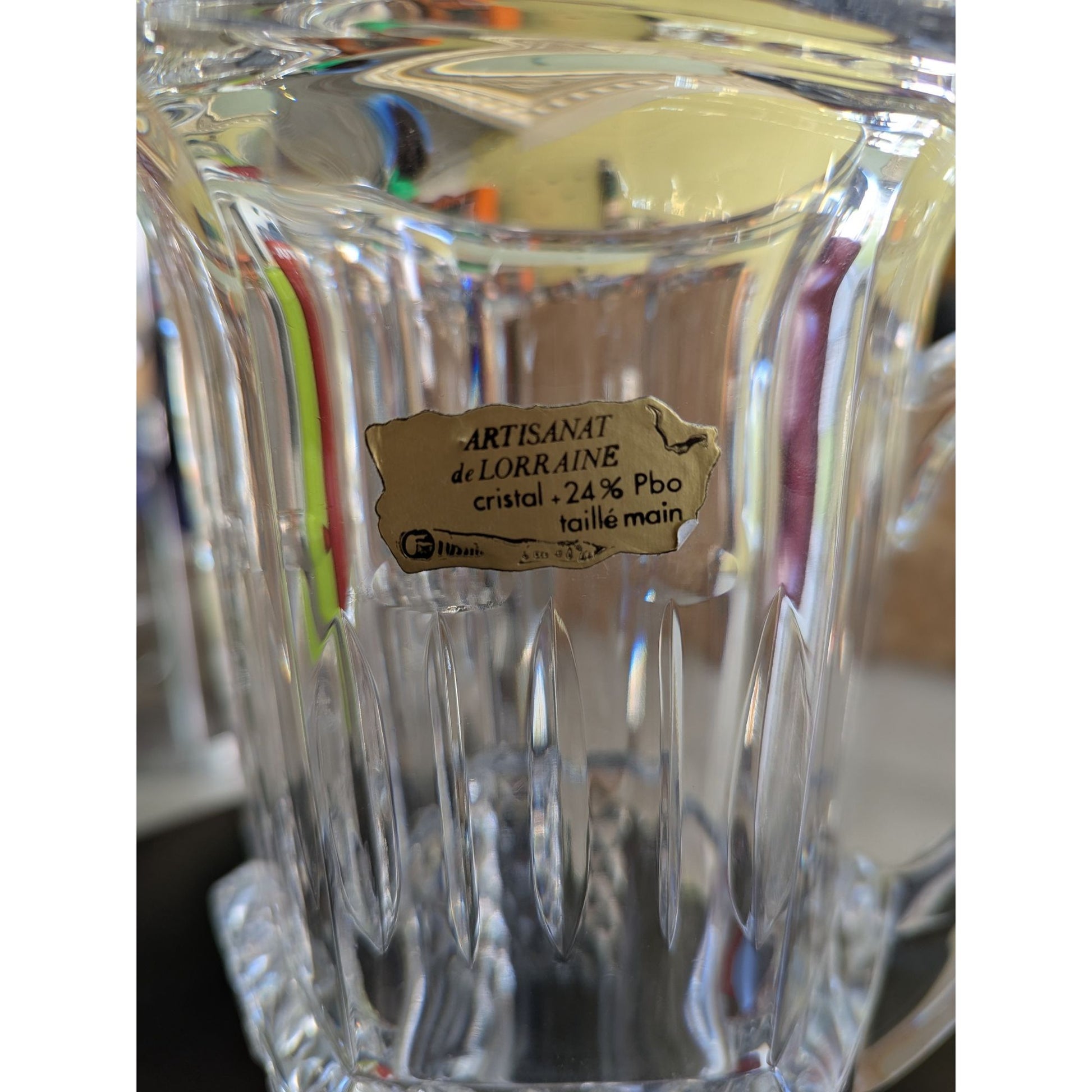 Pichet En Cristal Artisanat De Lorraine 24% Pbo Taille Main Transparent 26 Cm
