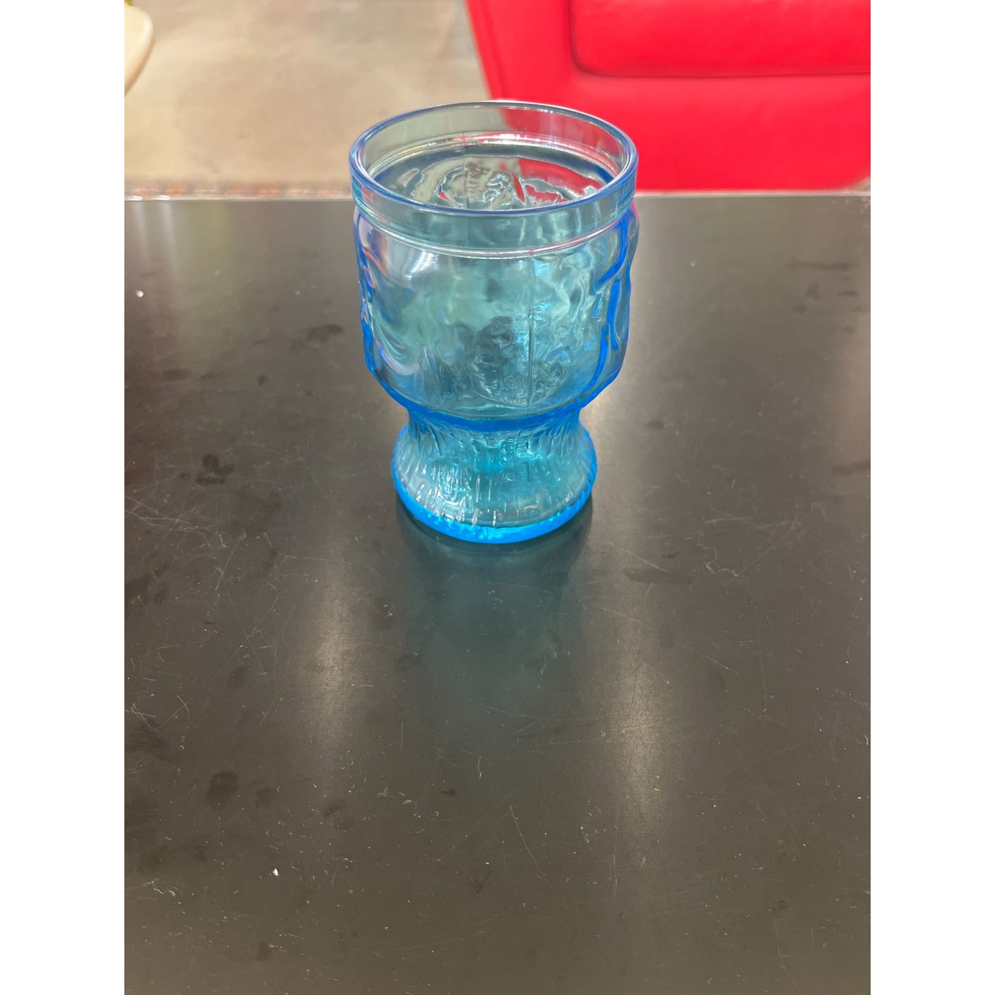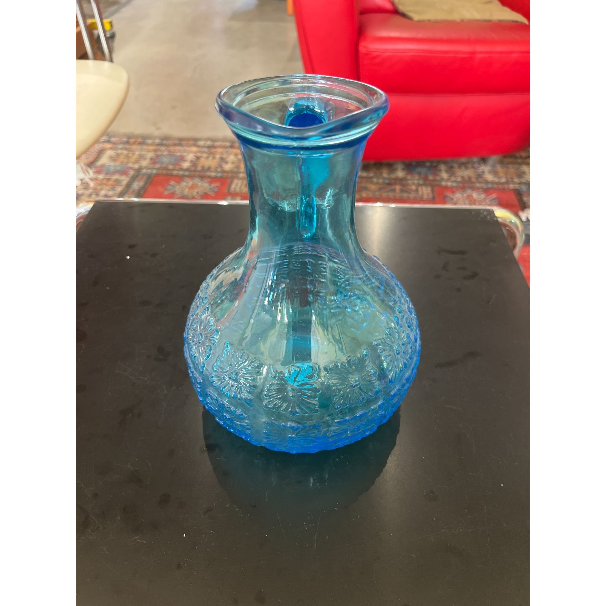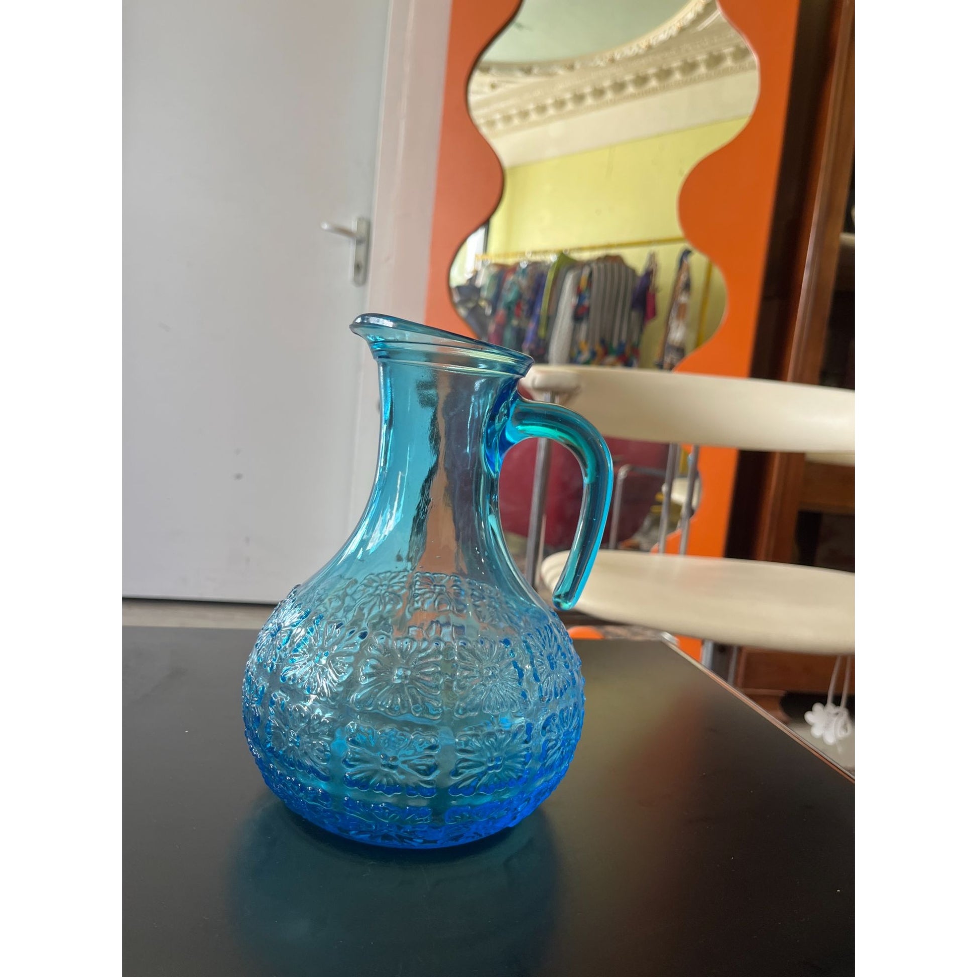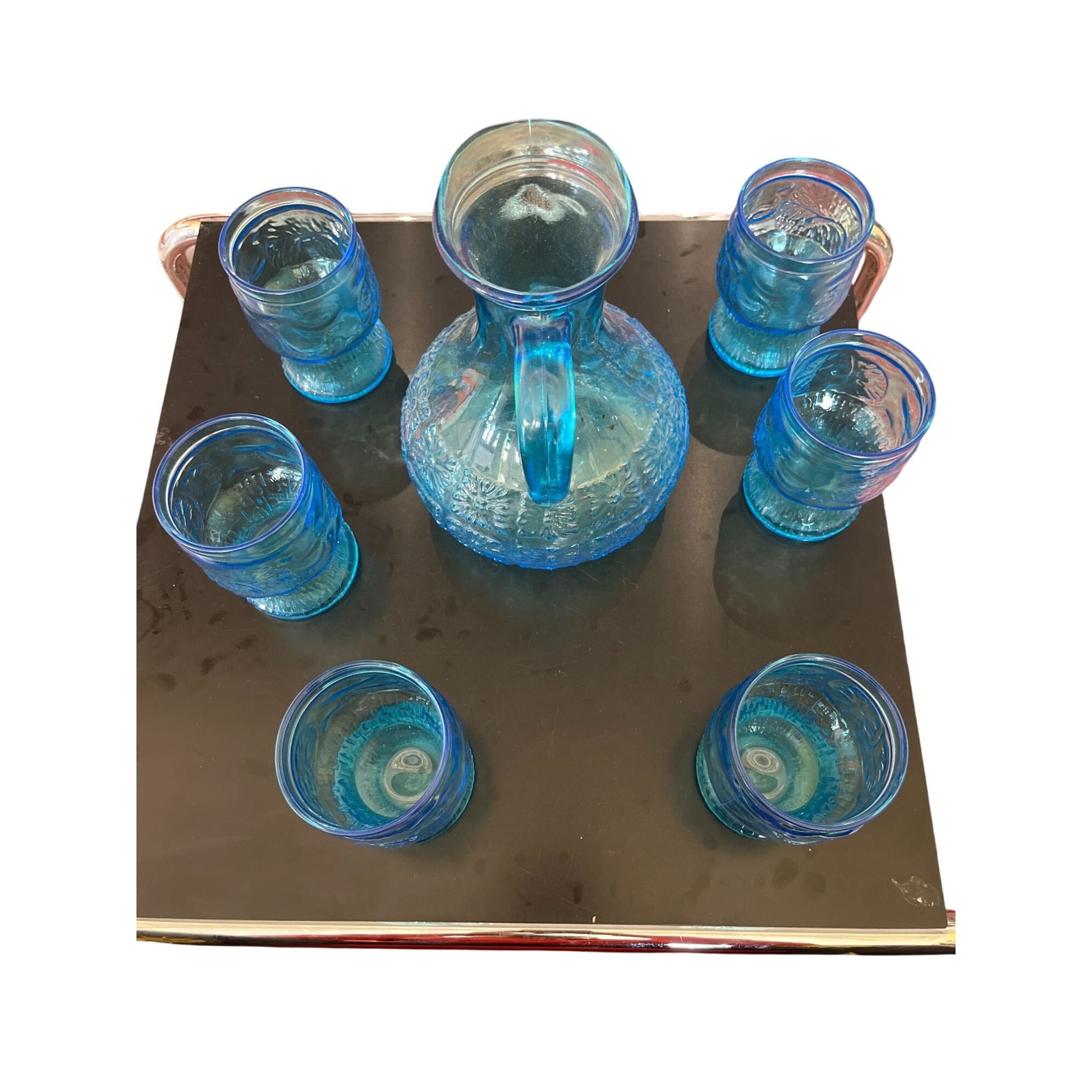 Service À Orangeade En Verre Bleu Avec Carafe Et 6 Verres Vintage Style Texturé