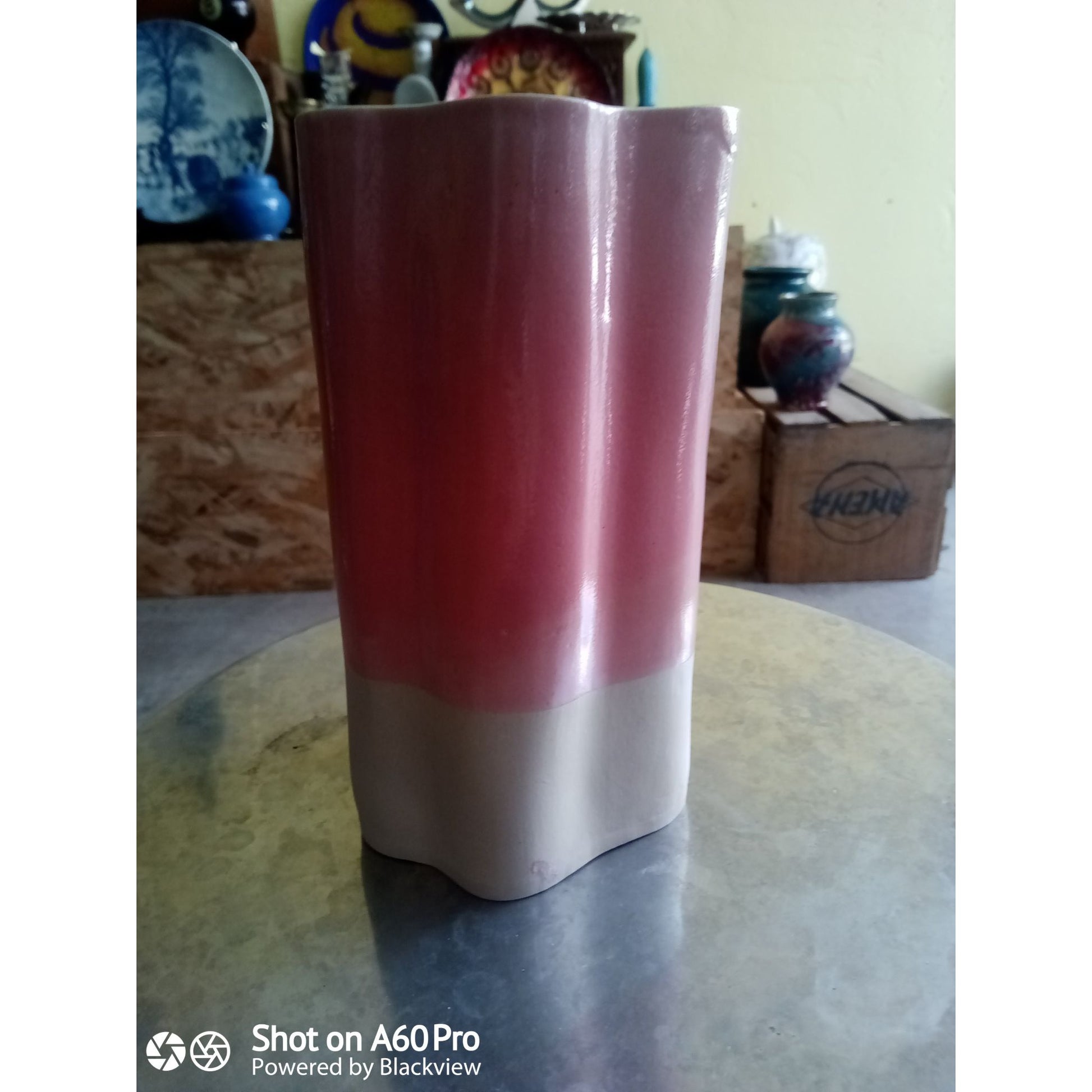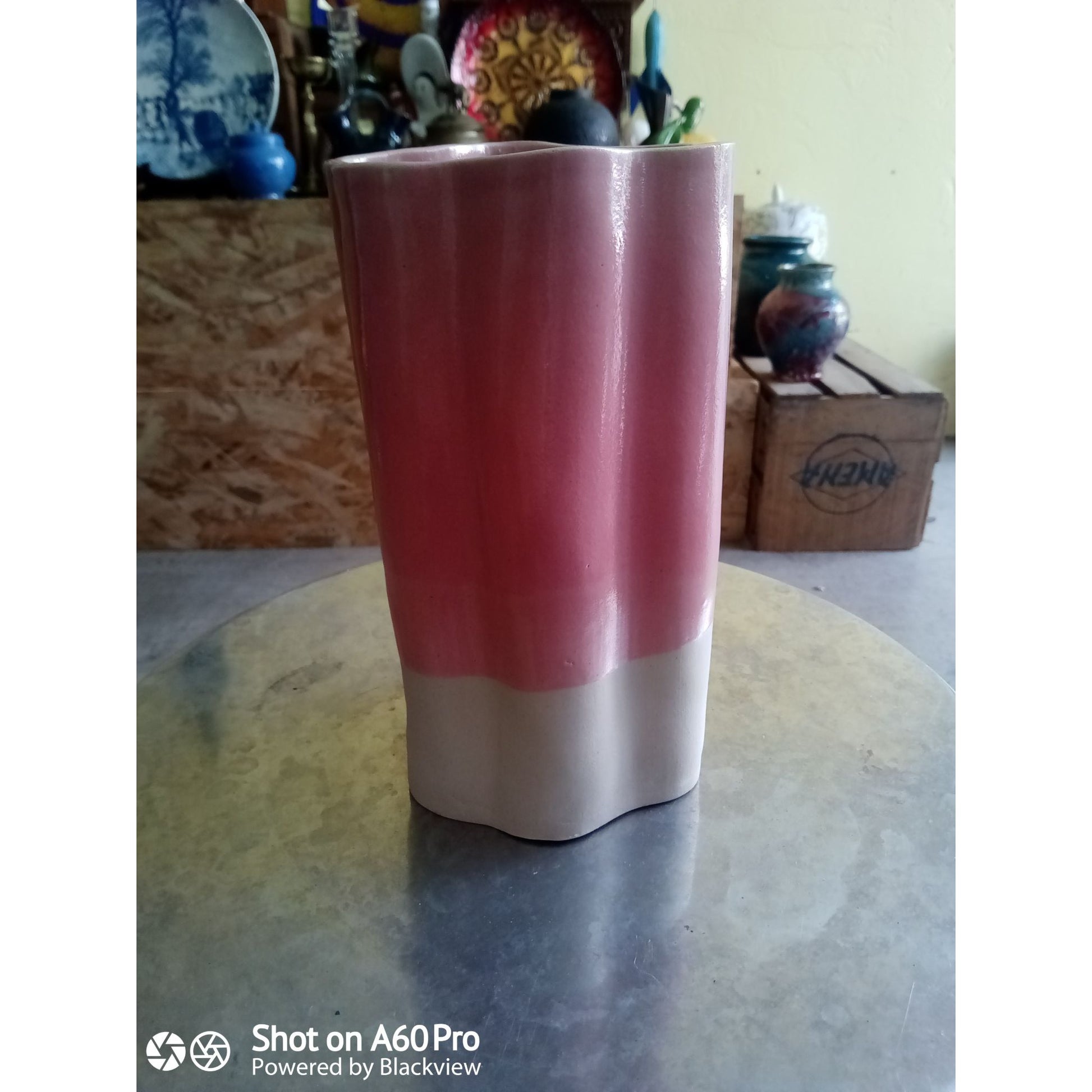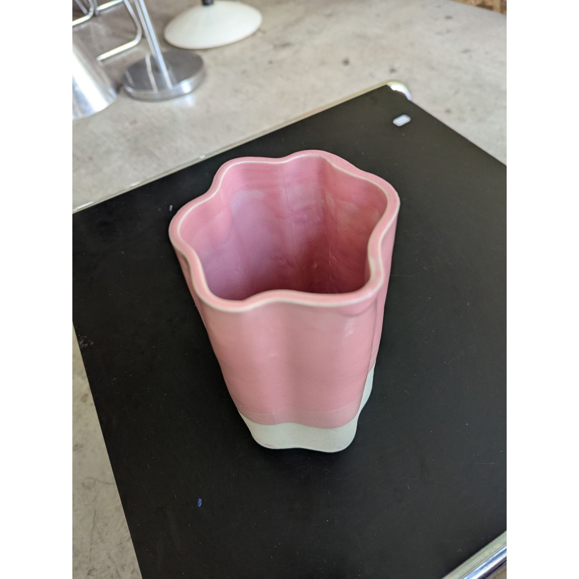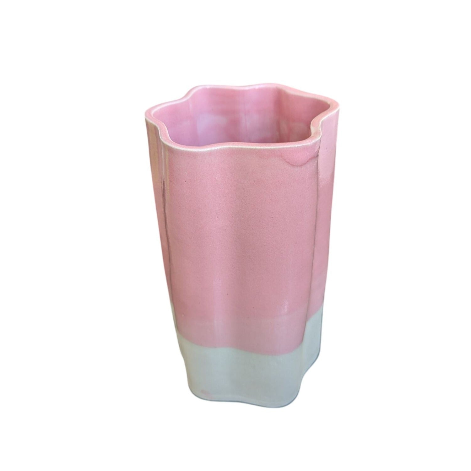 Vase Asymétrique En Céramique Rose & Blanc Fait Main Par Chloé Céramique