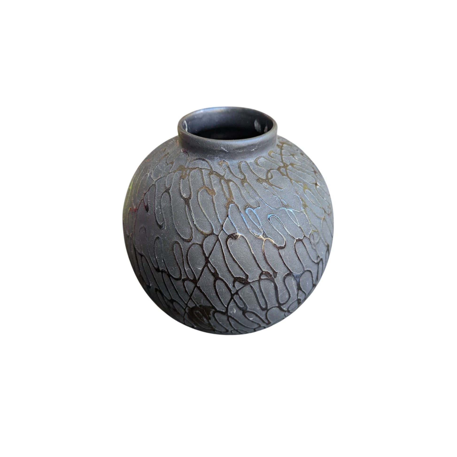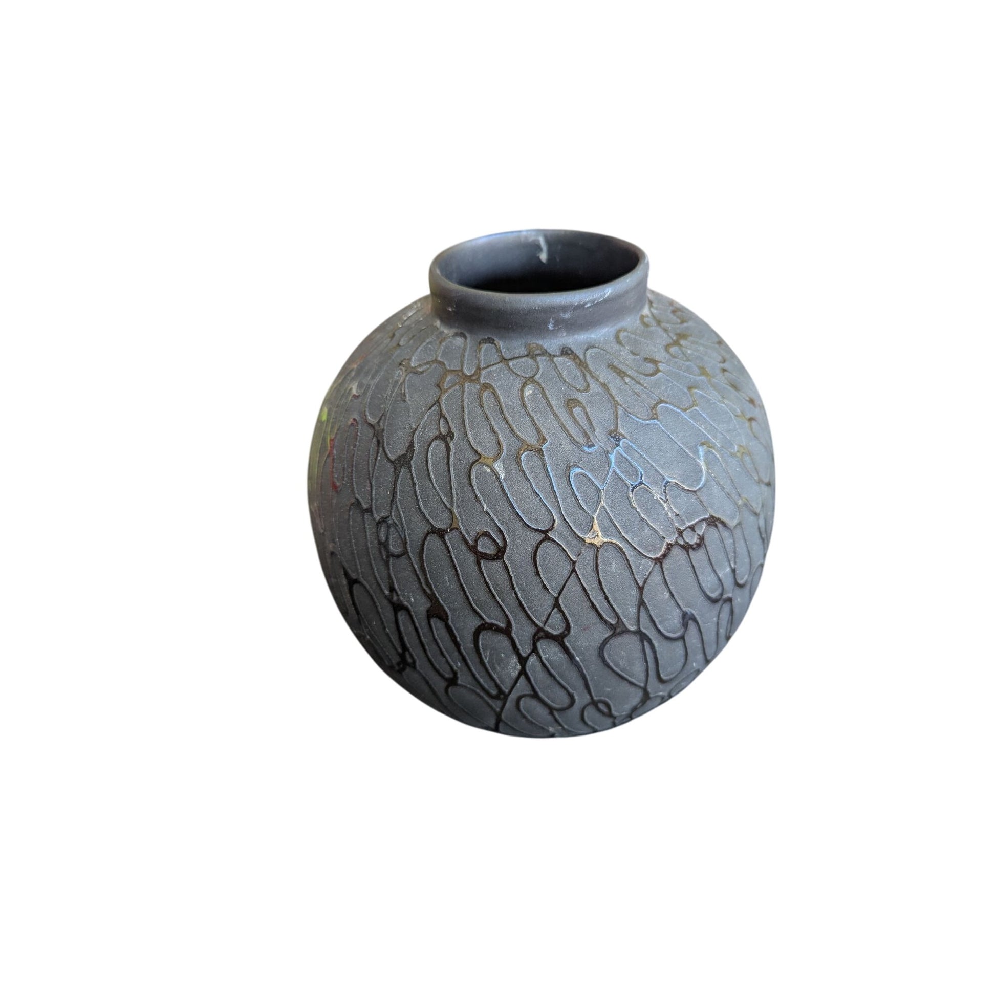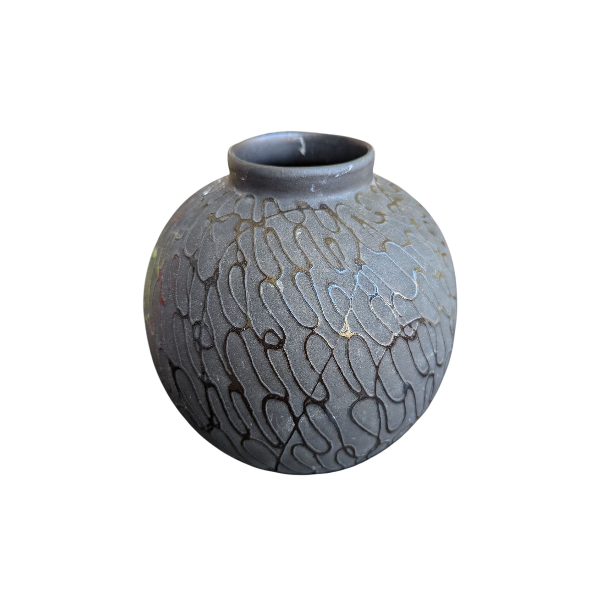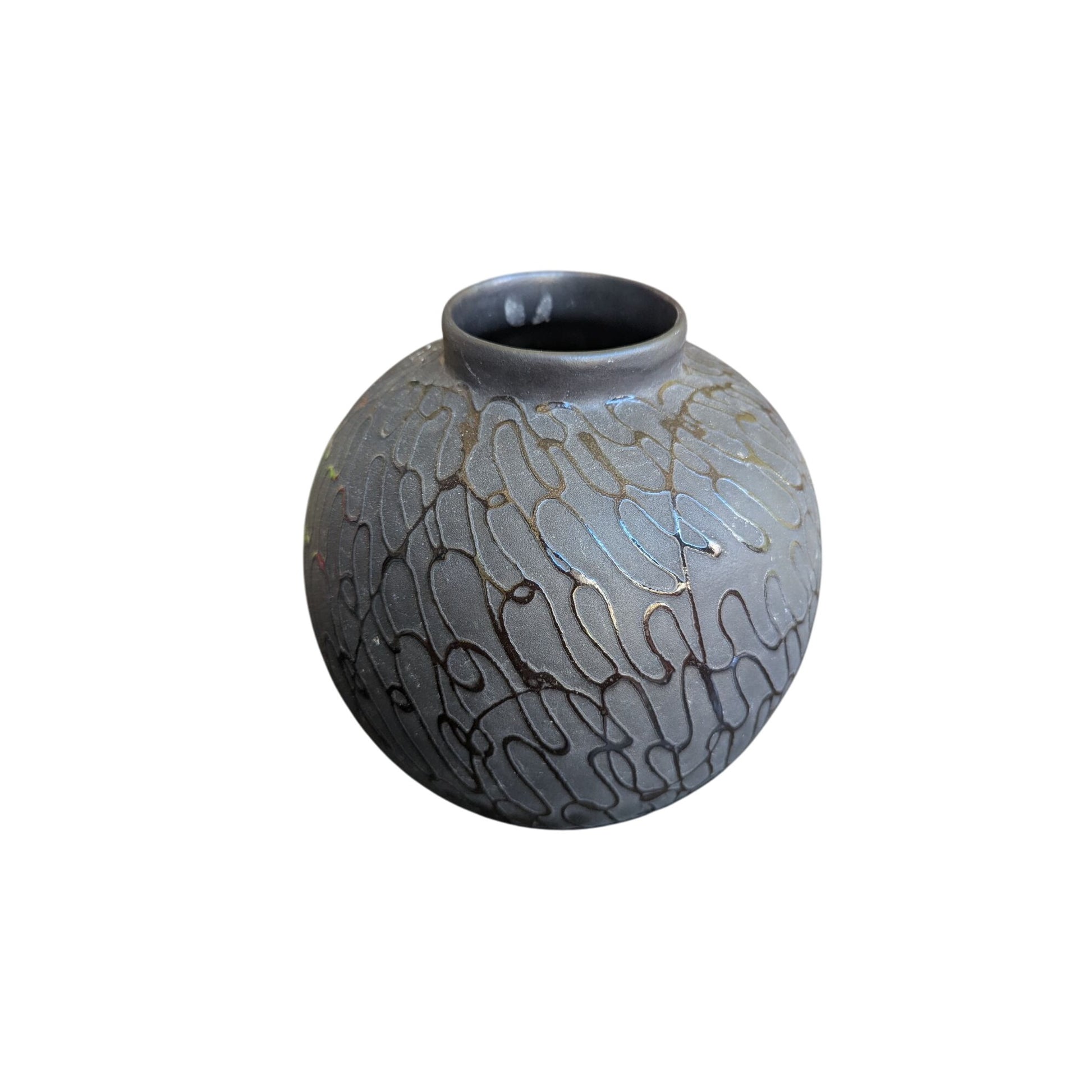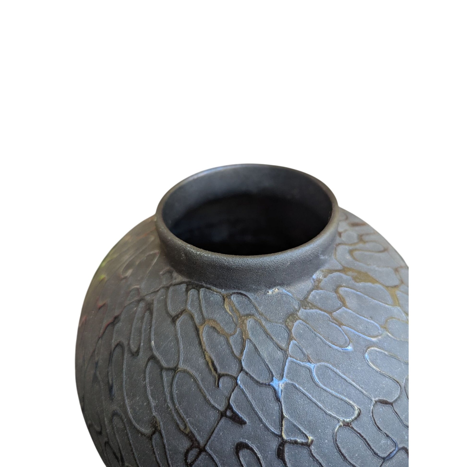 vase décoratif, vase en céramique, design gravé, vase noir, vase moderne, pièce unique, vase rond, décoration maison, art de table, vase contemporain, vase artisanal, objet décoratif, décoration intérieure
