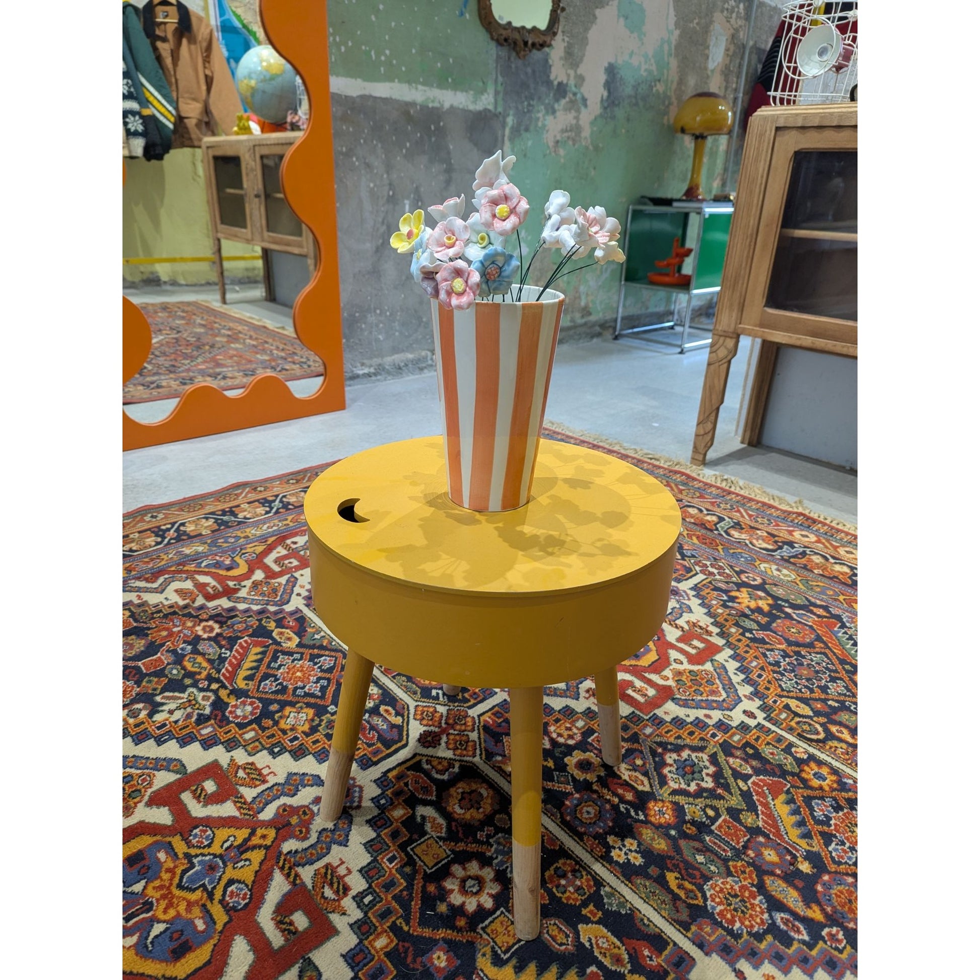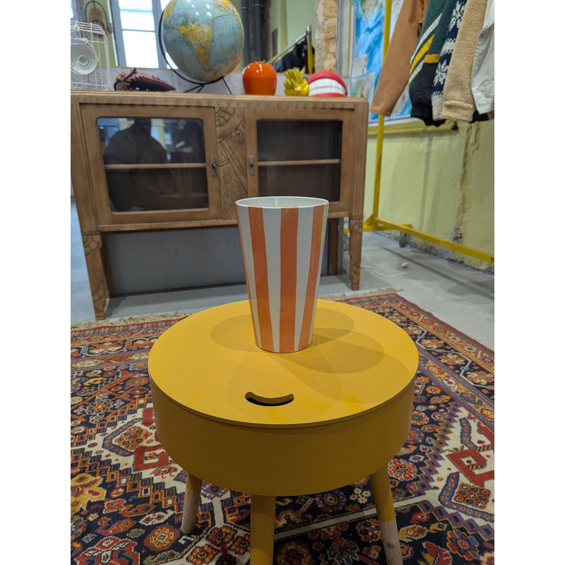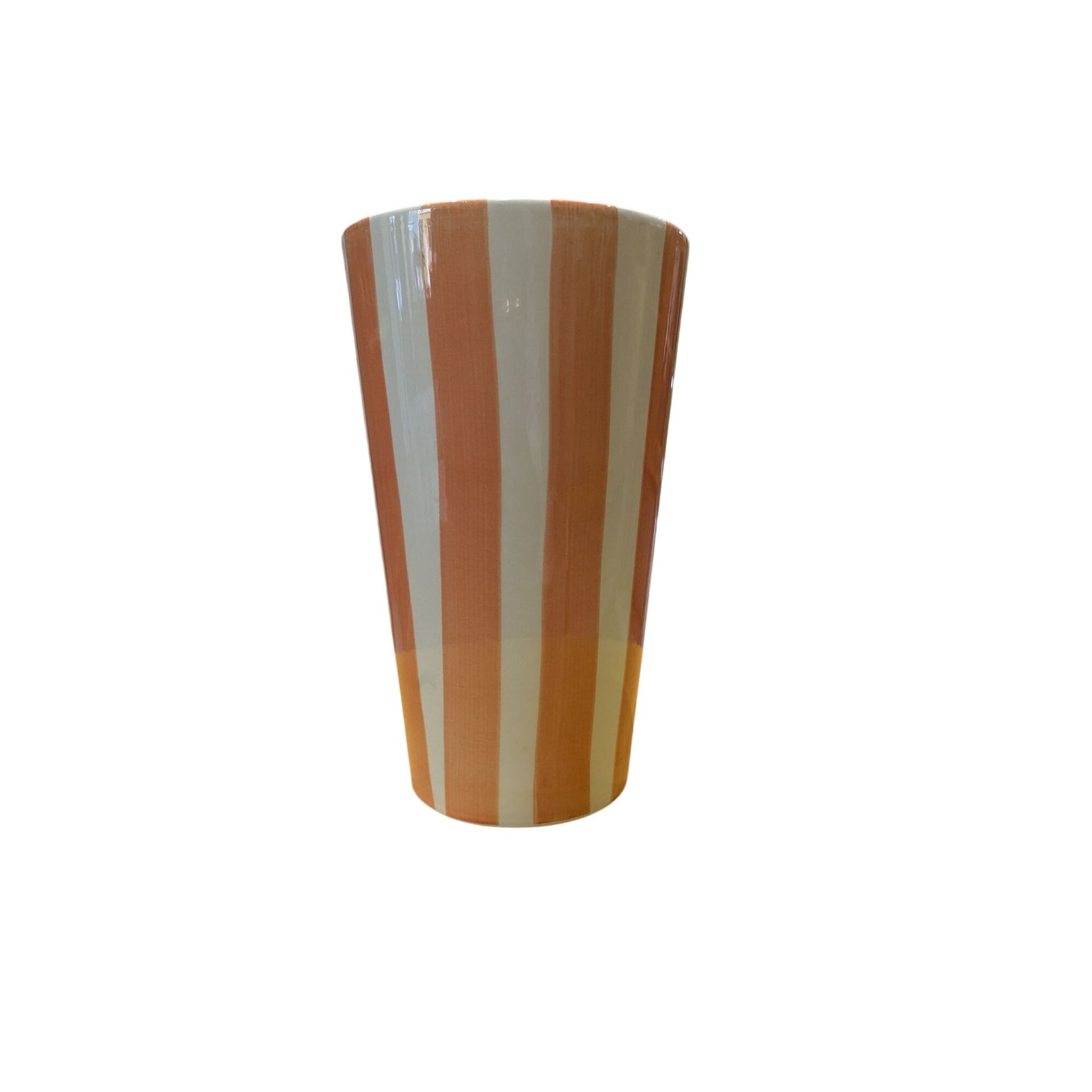 Vase en céramique rayé orange et blanc 21 cm de haut, décoration d'intérieur