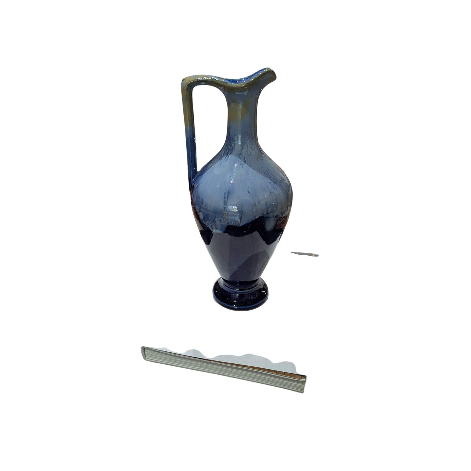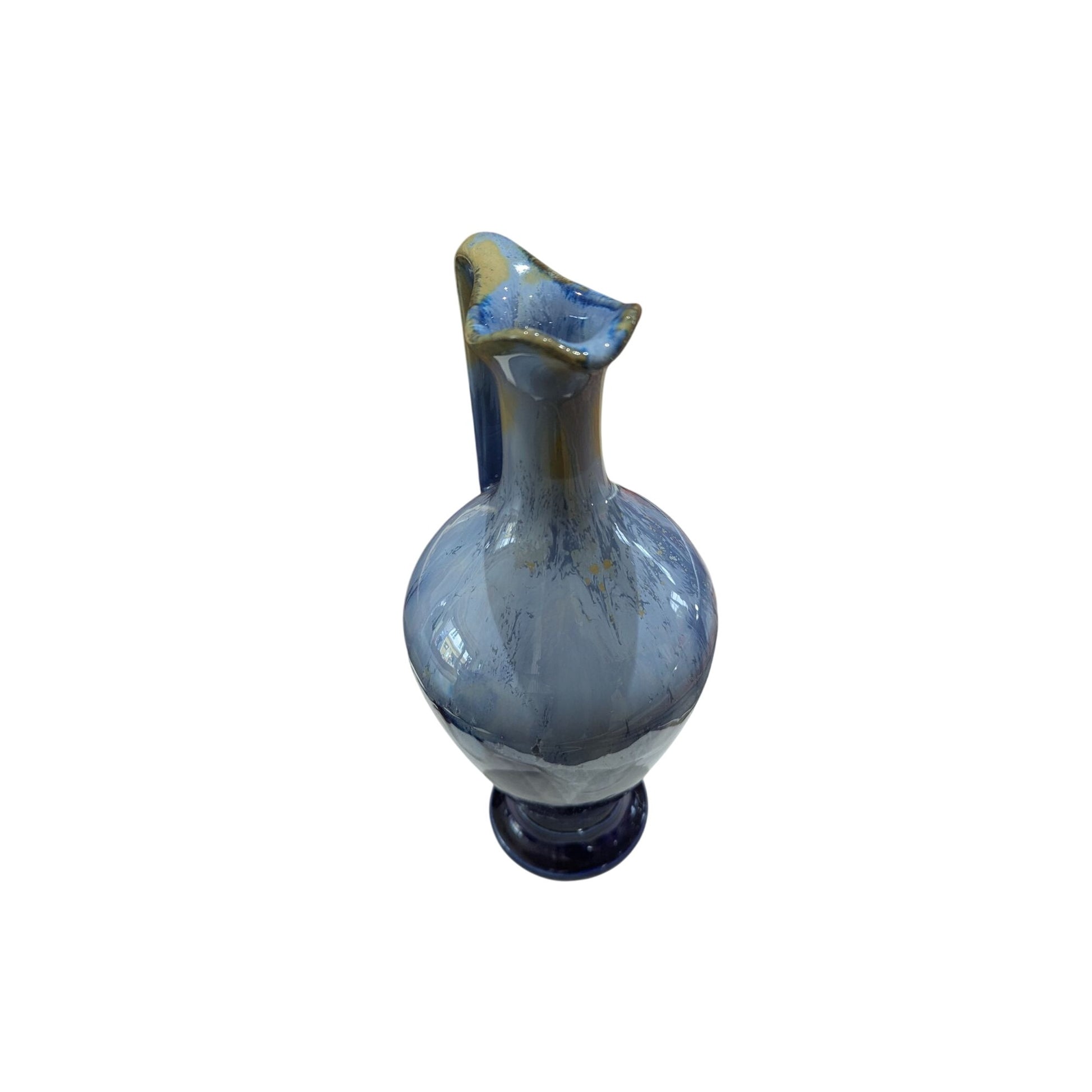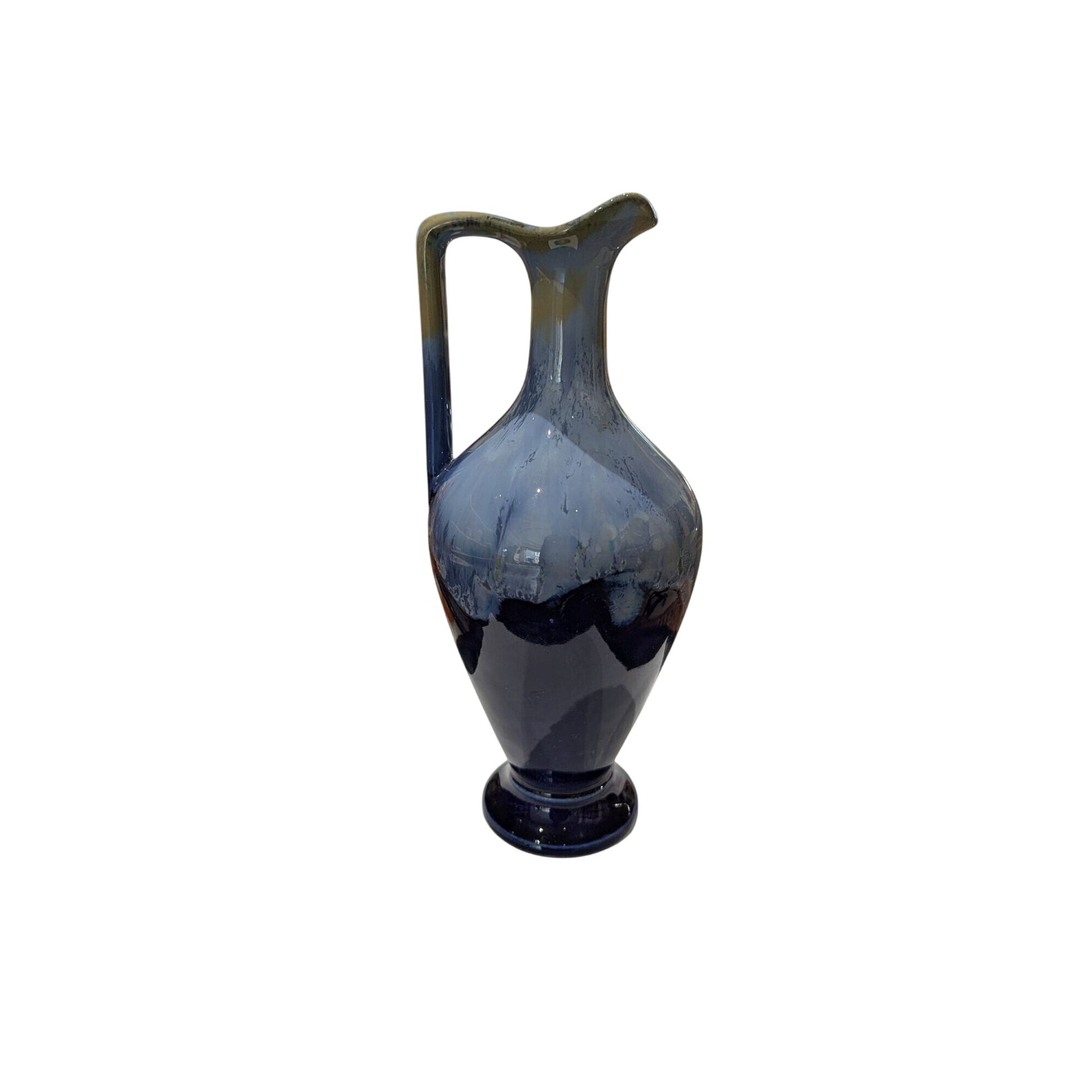 Vintage Bleu Soufflé Vase En Verre Avec Anse Et Base Arrondie