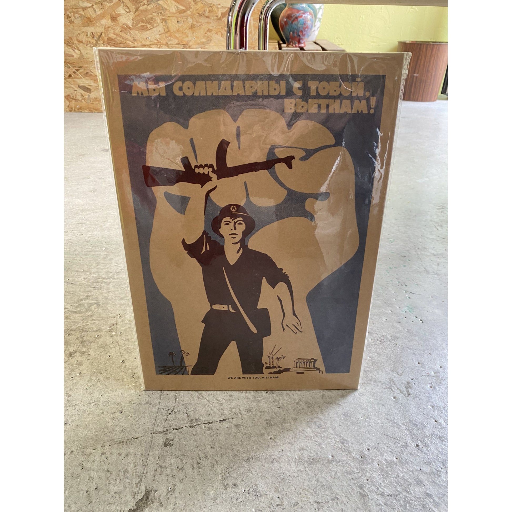 Affiche Vintage Soviétique "Nous Sommes Solidaires Avec Toi Vietnam!" Tam Kim 39x28 Cm Papier Kraft