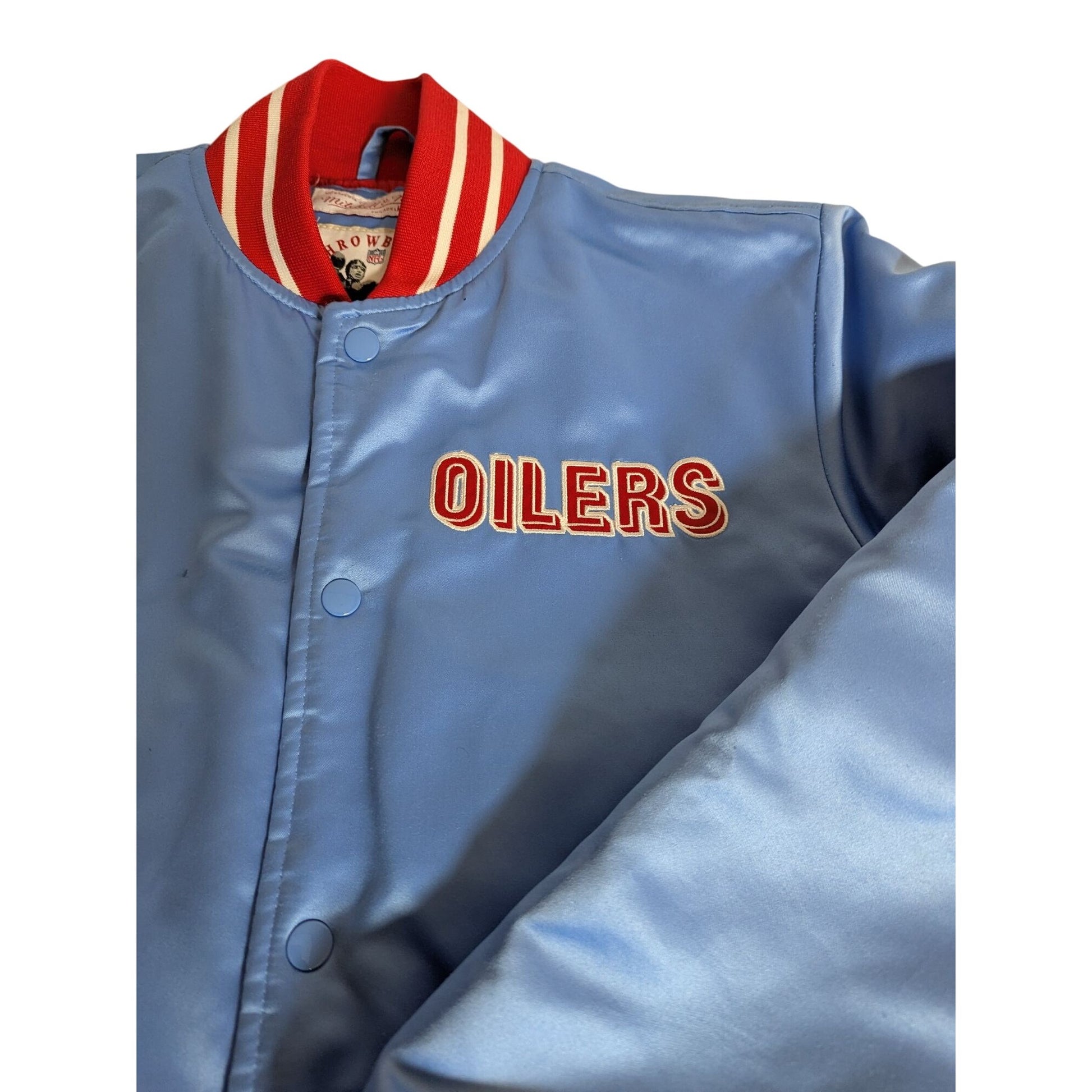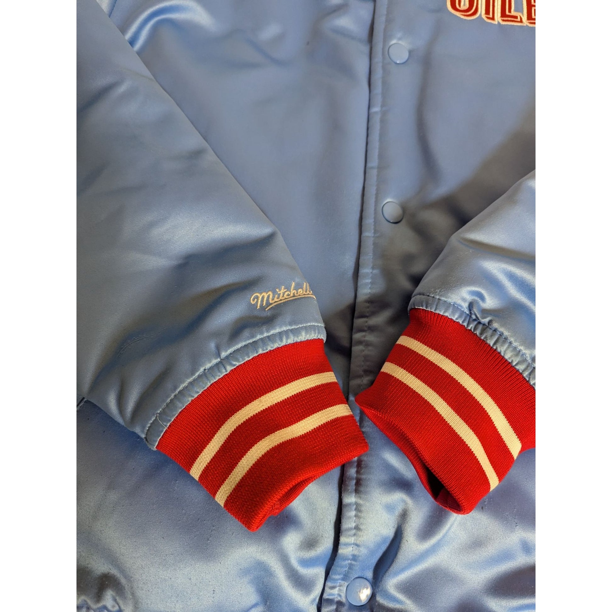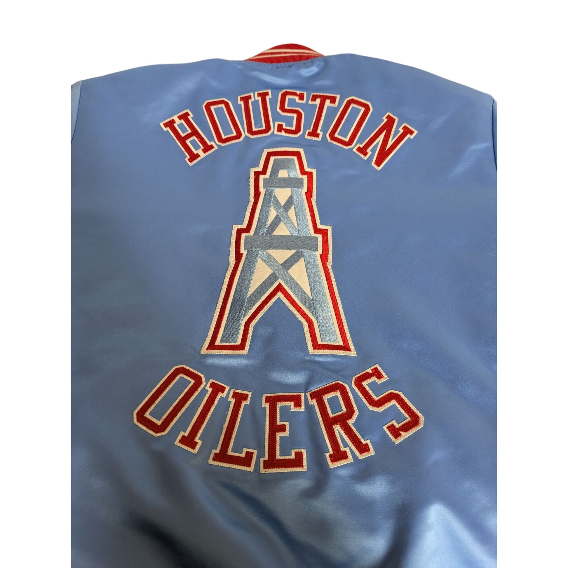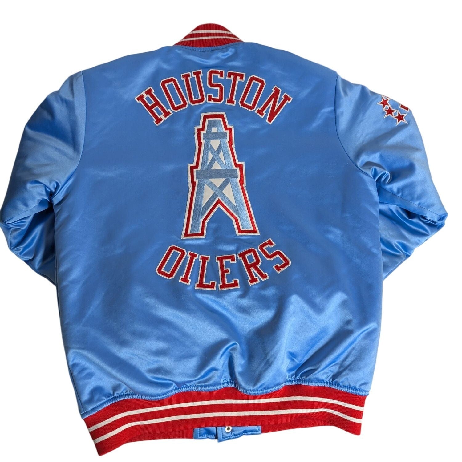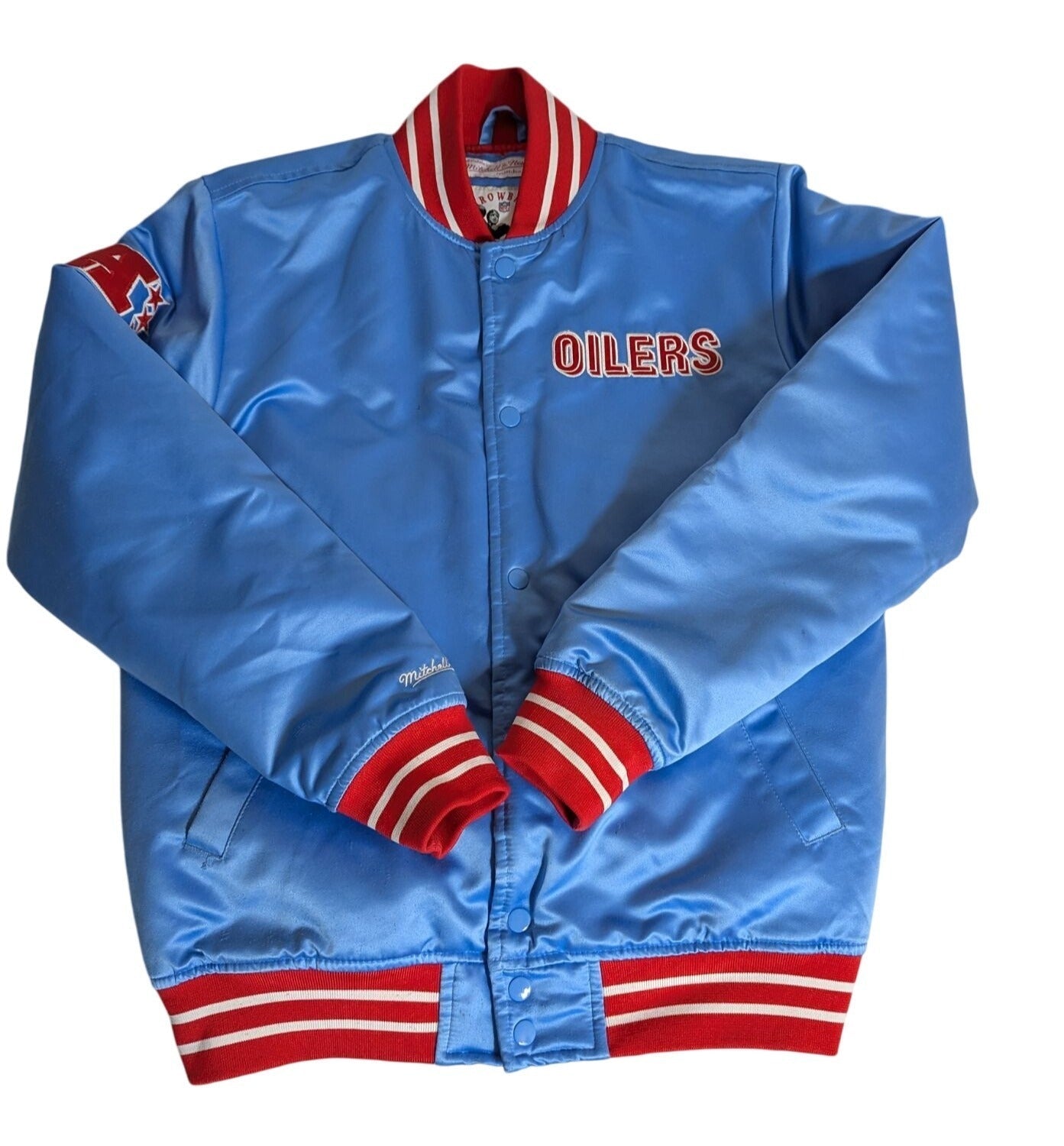 Plongez dans la nostalgie des jours glorieux du football américain avec cette rare veste en satin des Houston Oilers. Véritable bijou de collection, elle arbore des tons bleu clair, rouge et blanc éclatants, rendant hommage à une équipe légendaire. Sa petite taille assure une coupe ajustée, ce qui en fait à la fois une pièce d'exception et un hommage facile à porter.