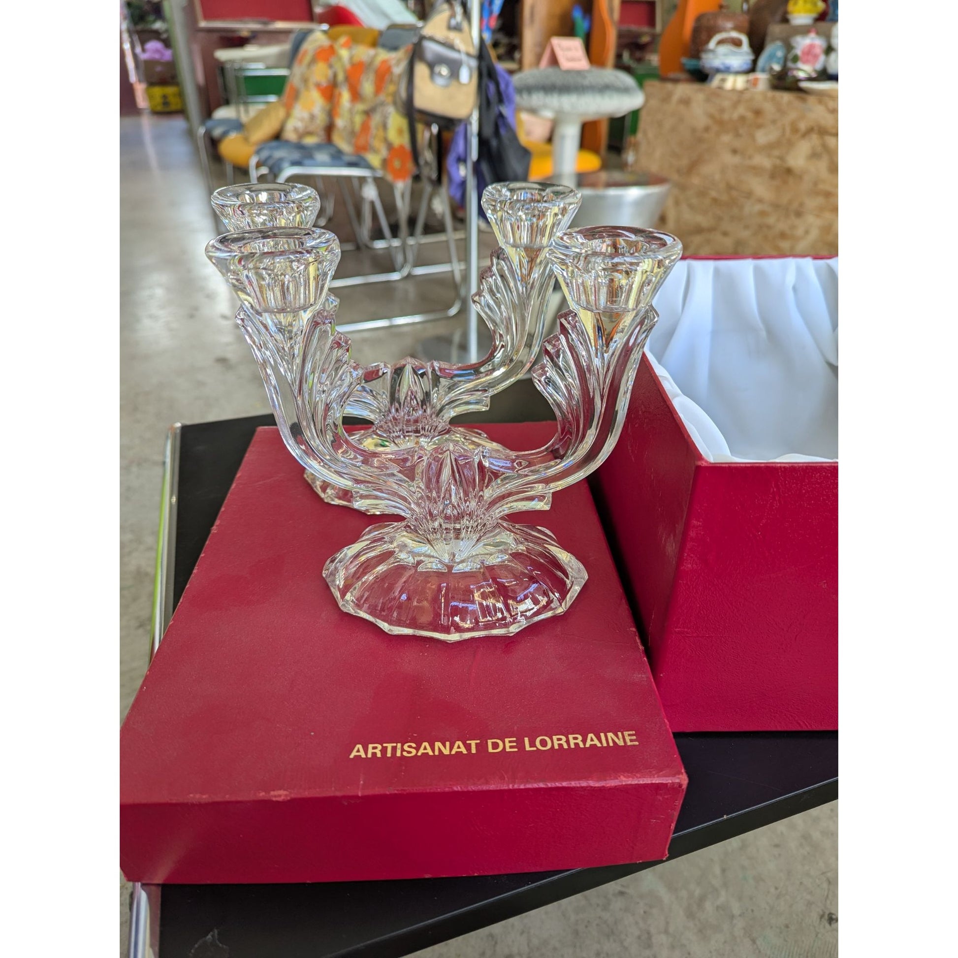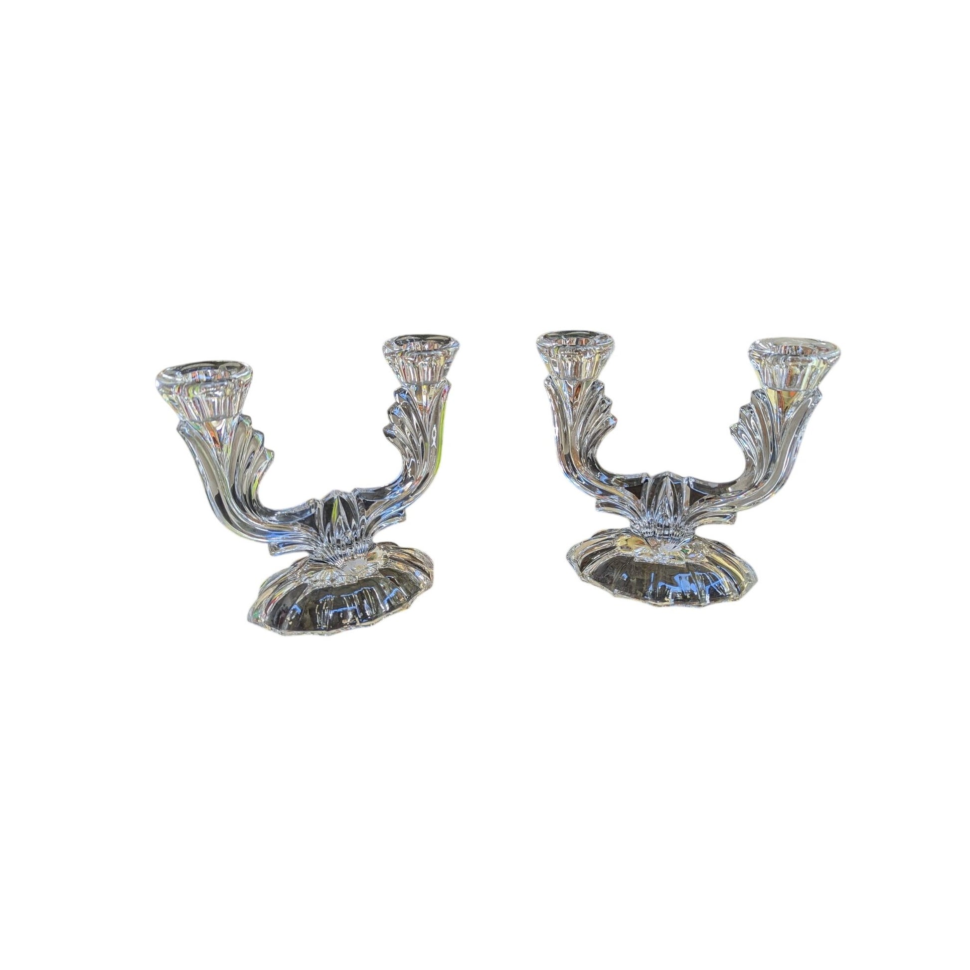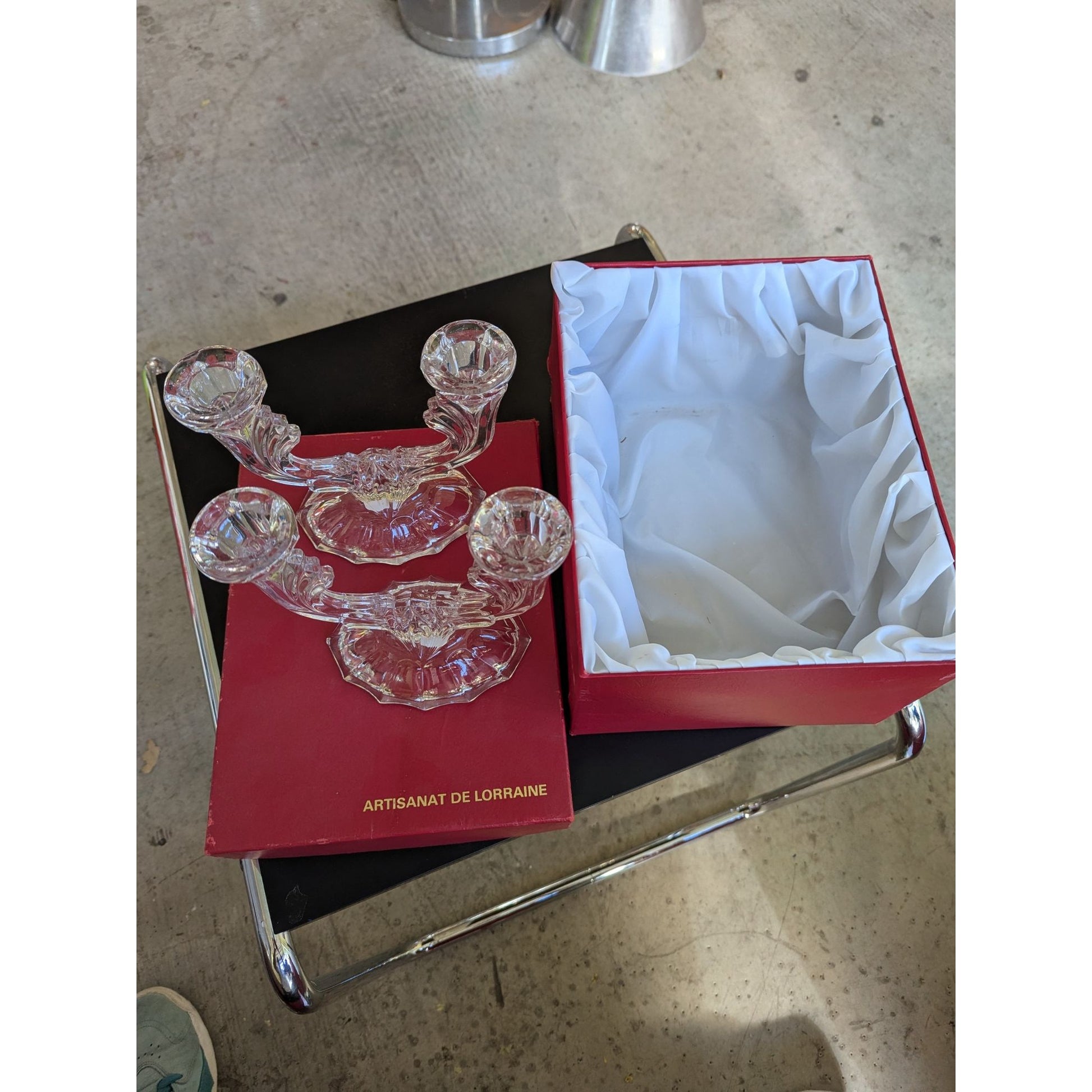 Bougeoirs en cristal par Artisanat De Lorraine avec deux bras Design élégant pour la décoration de table Comprend une boîte d'origine