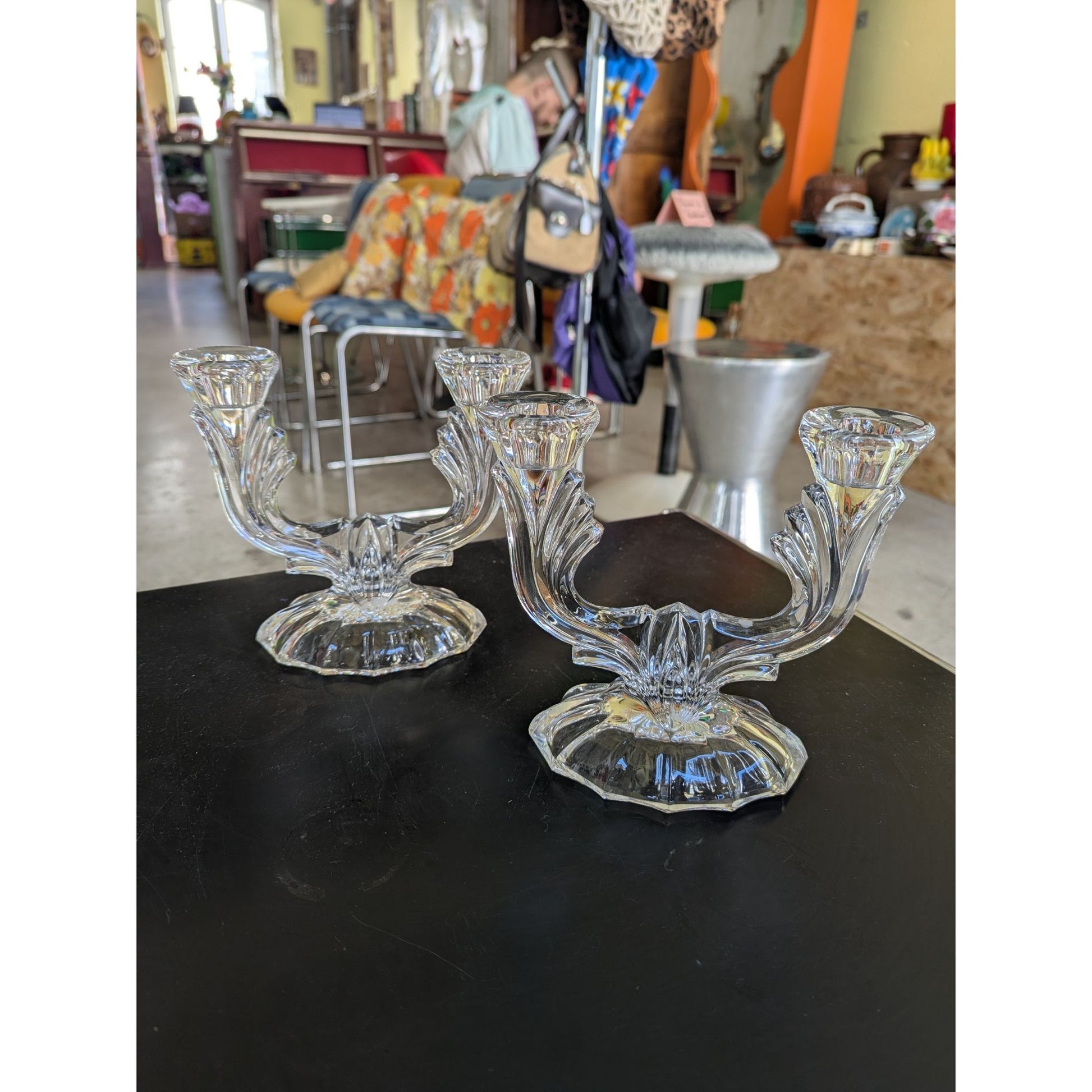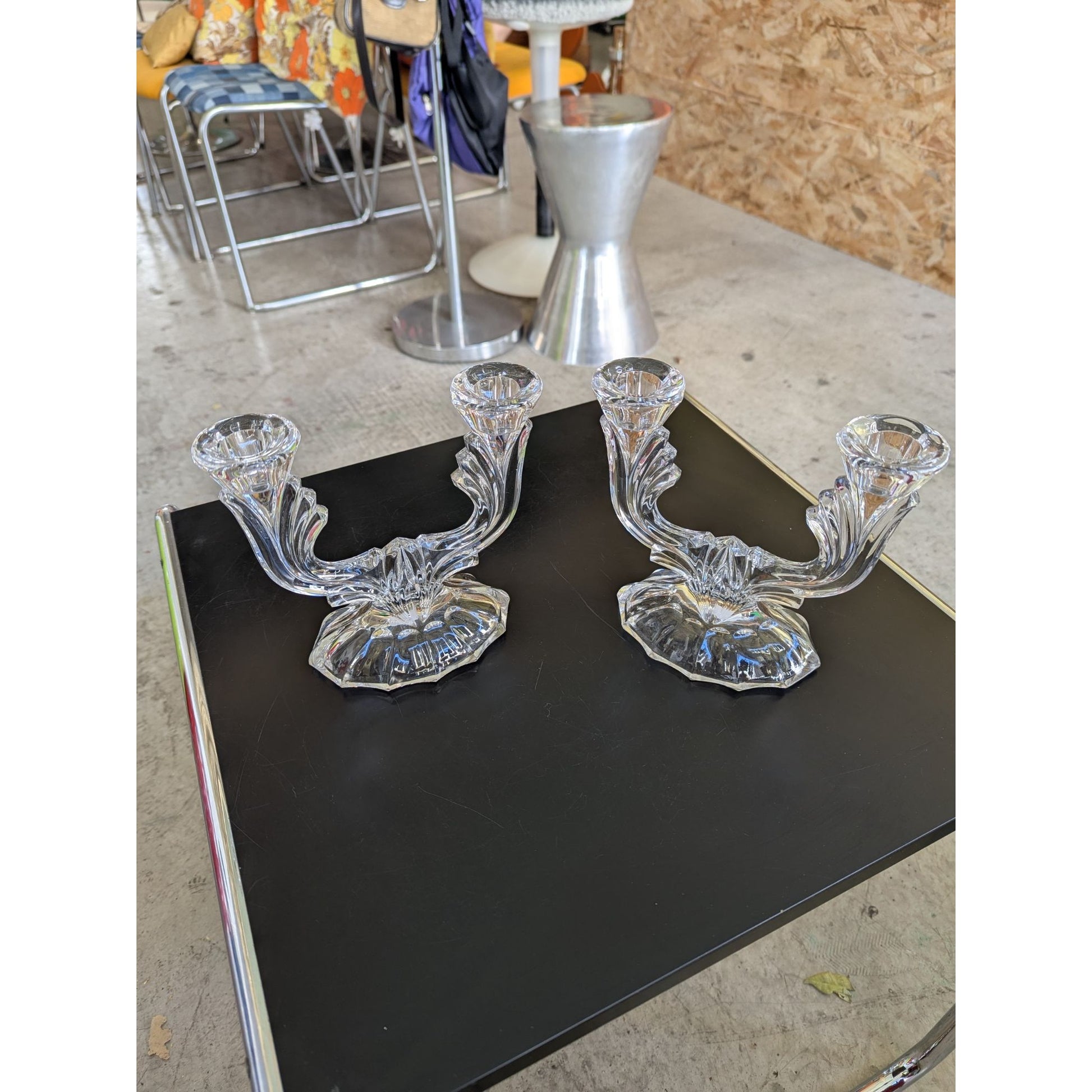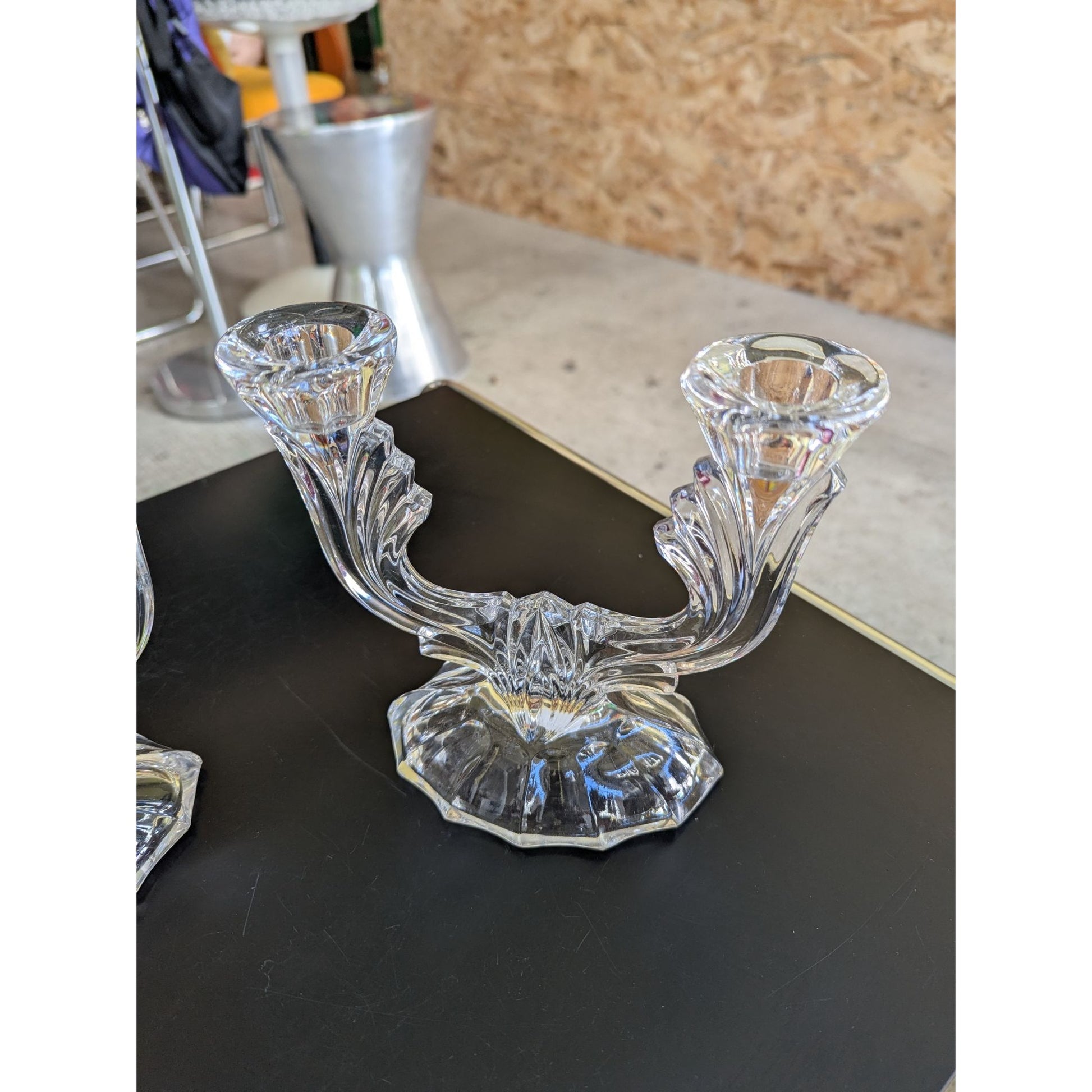 Bougeoirs en cristal par Artisanat De Lorraine avec deux bras Design élégant pour la décoration de table Comprend une boîte d'origine