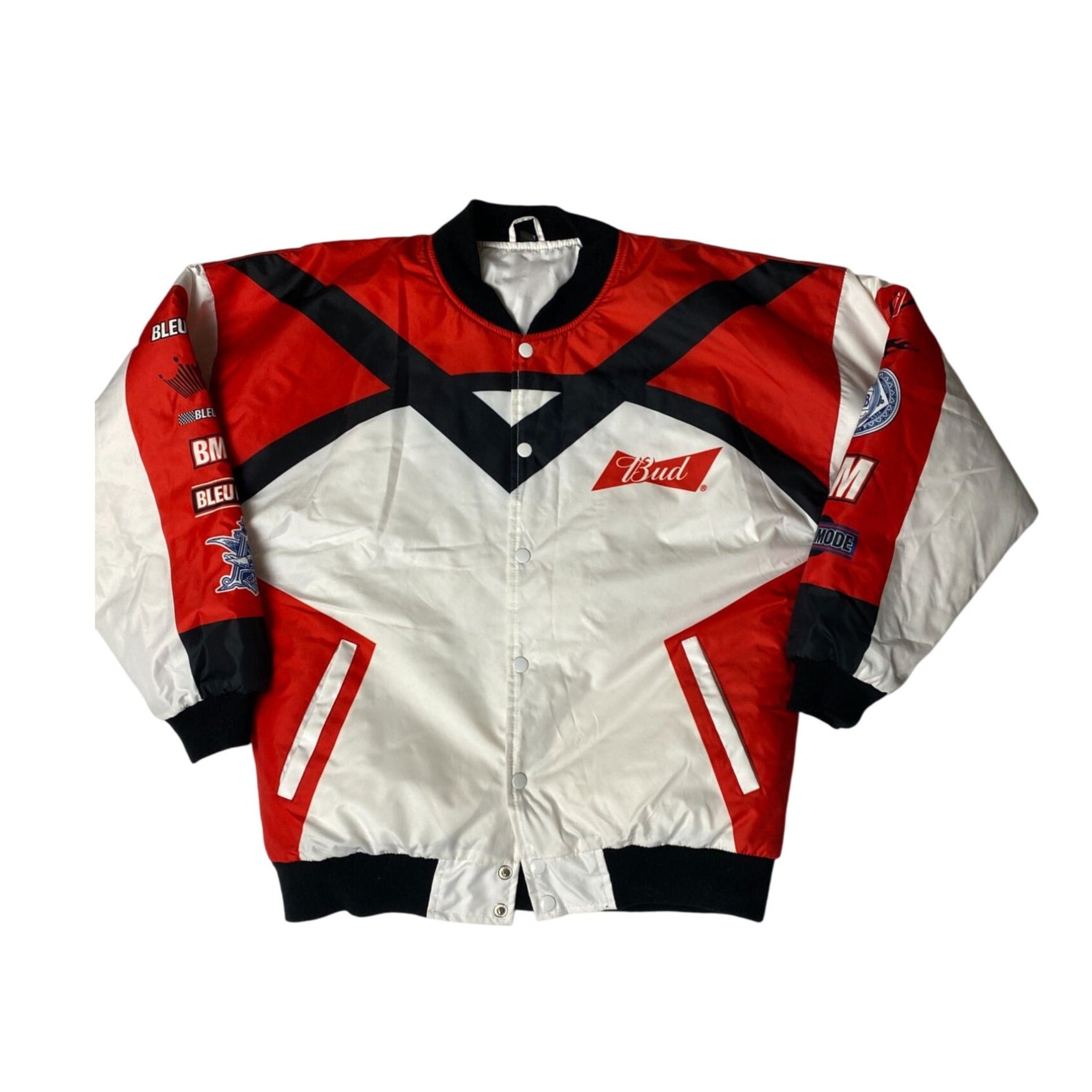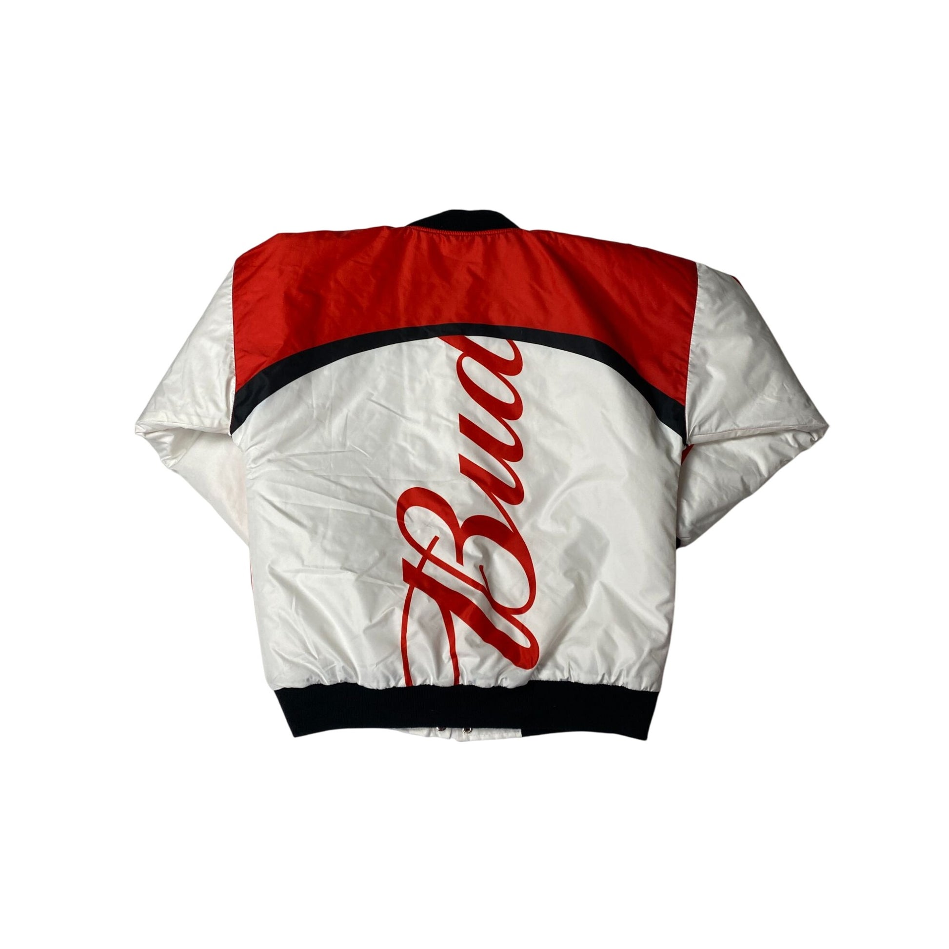 Blouson aviateur Bud Racing rouge et blanc à boutons-pression sur le devant pour homme, taille M