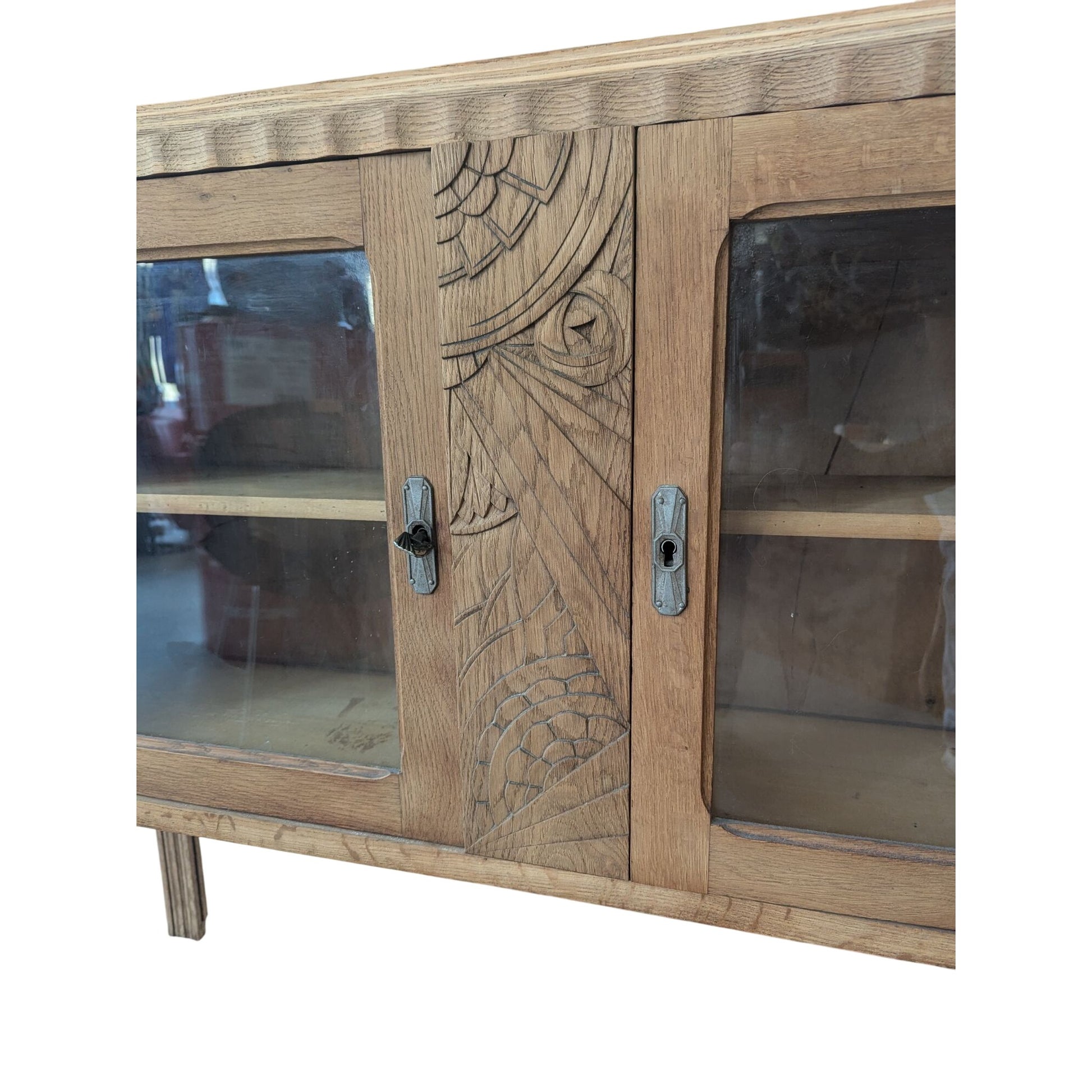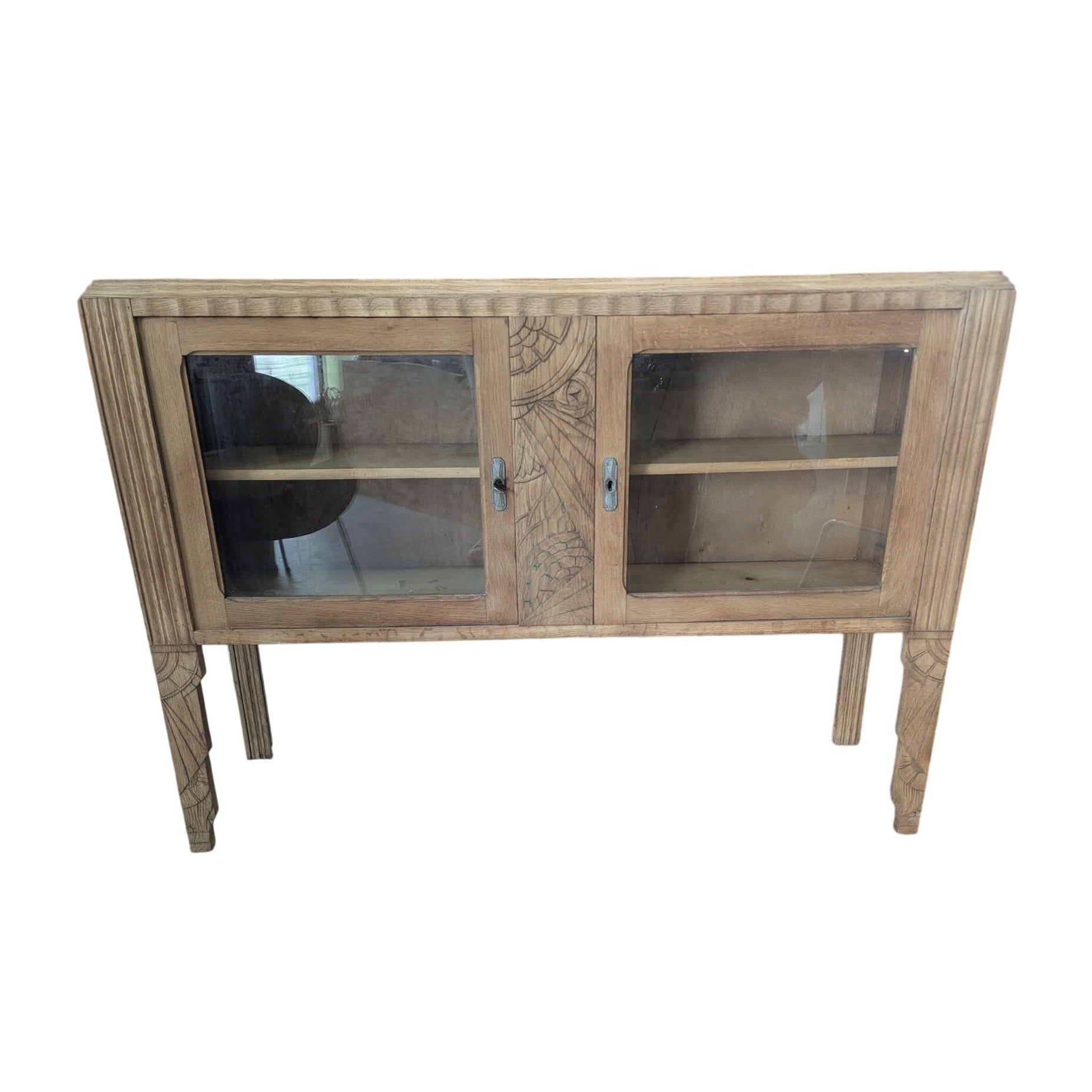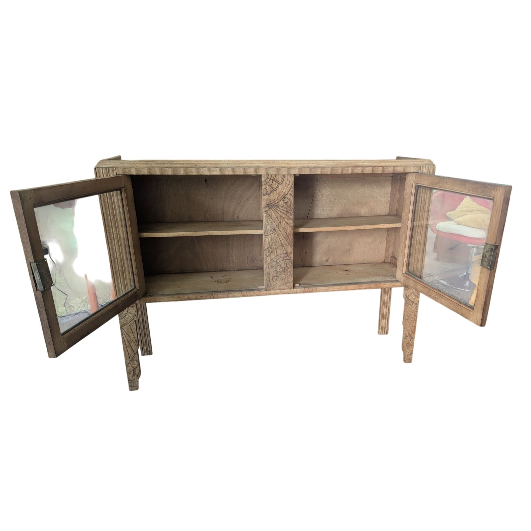 Buffet Vintage art deco En Bois Avec Portes Vitrées Sculptées À La Main 91cm H X 123cm L X 31cm P