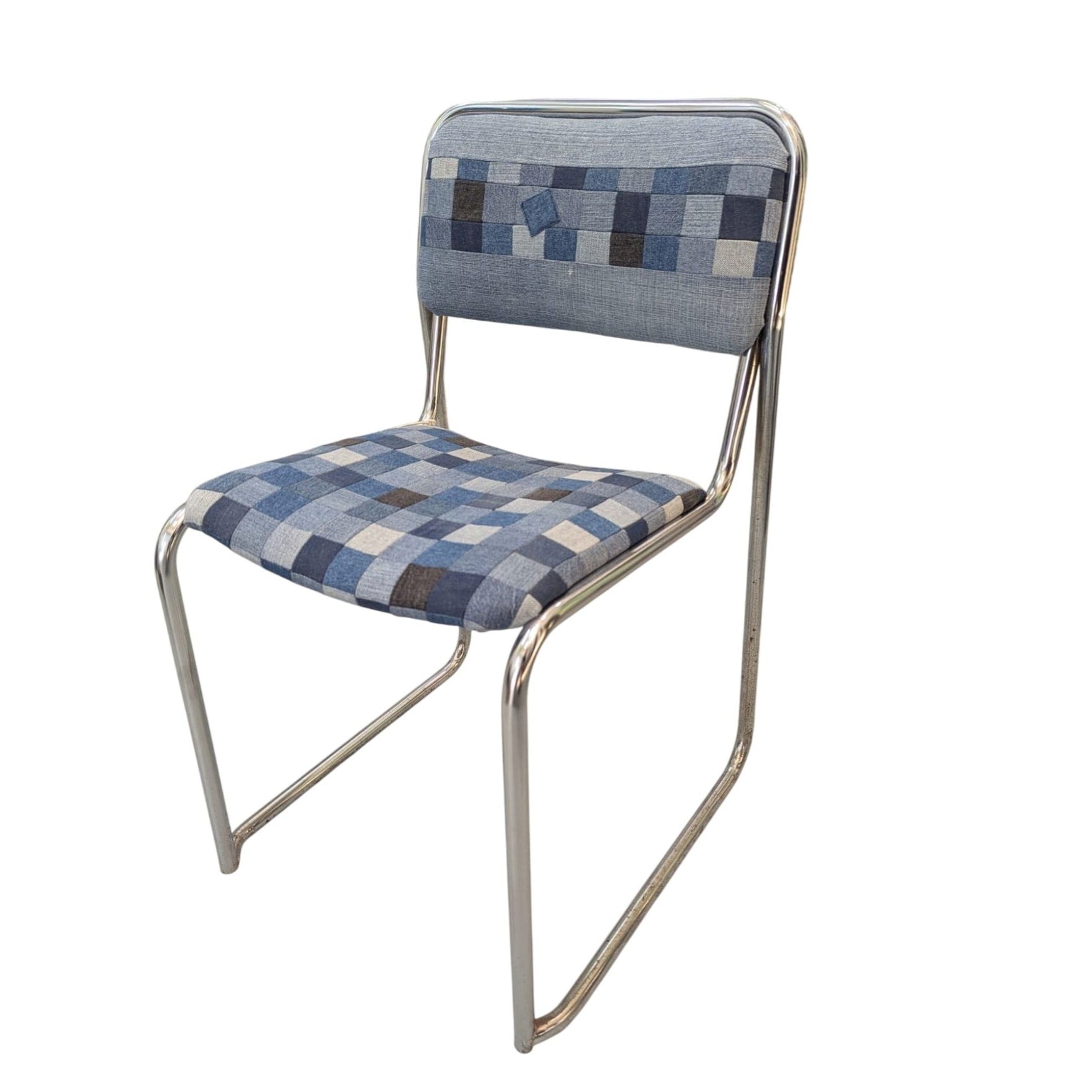 Chaise Style Bauhaus Chromée Avec Assise Patchwork En Jean Création Unique John Doe