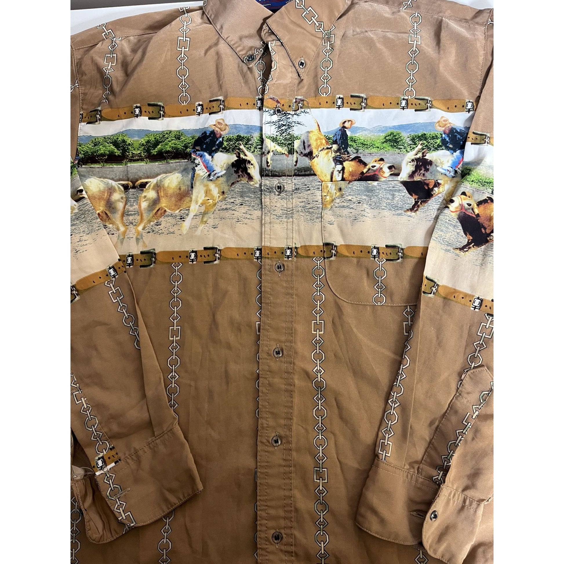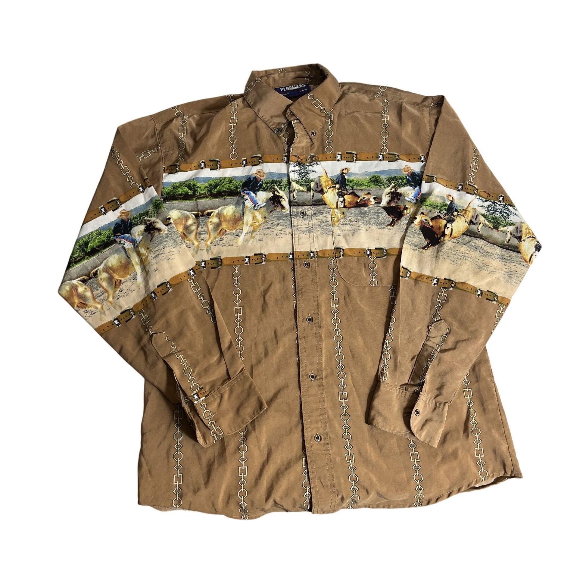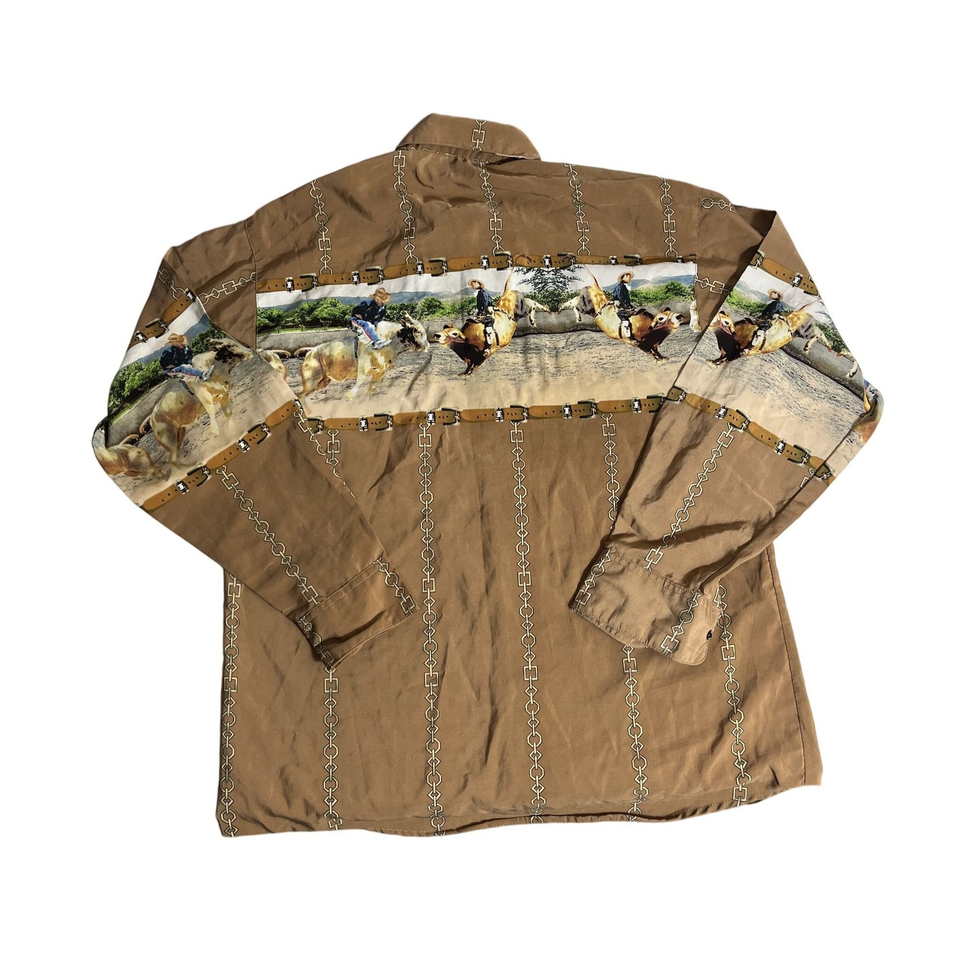 Chemise à manches longues à imprimé cheval et cowboy western, taille 40