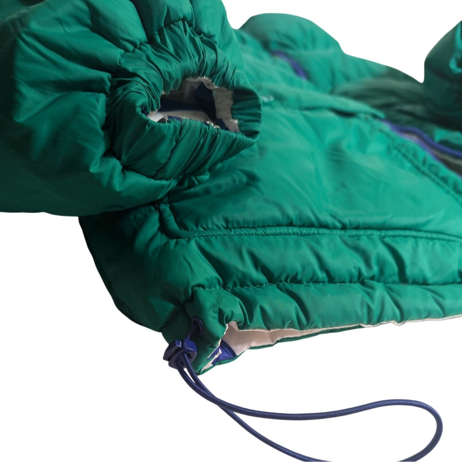 Restez au chaud avec cette doudoune réversible. Vert uni d'un côté et logo coloré de l'autre.