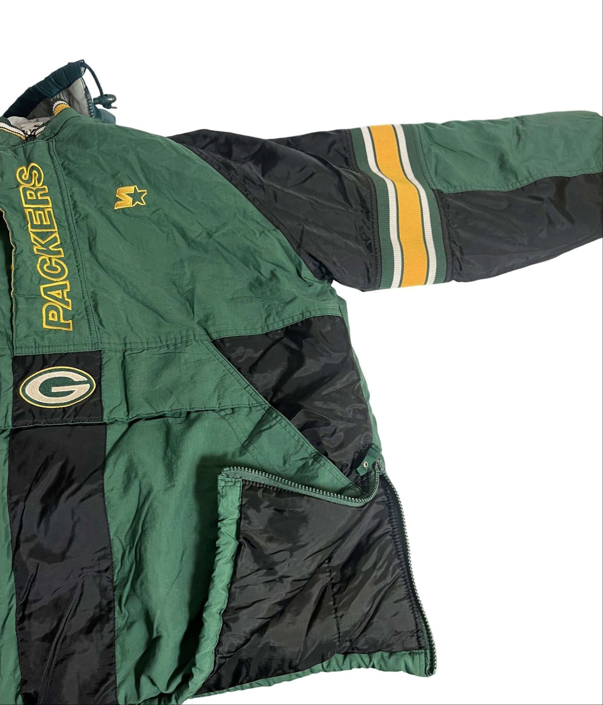 Show your team spirit with this Green Bay Packers Starter Jacket, a classic piece of NFL fan gear that combines iconic style with practical comfort.
