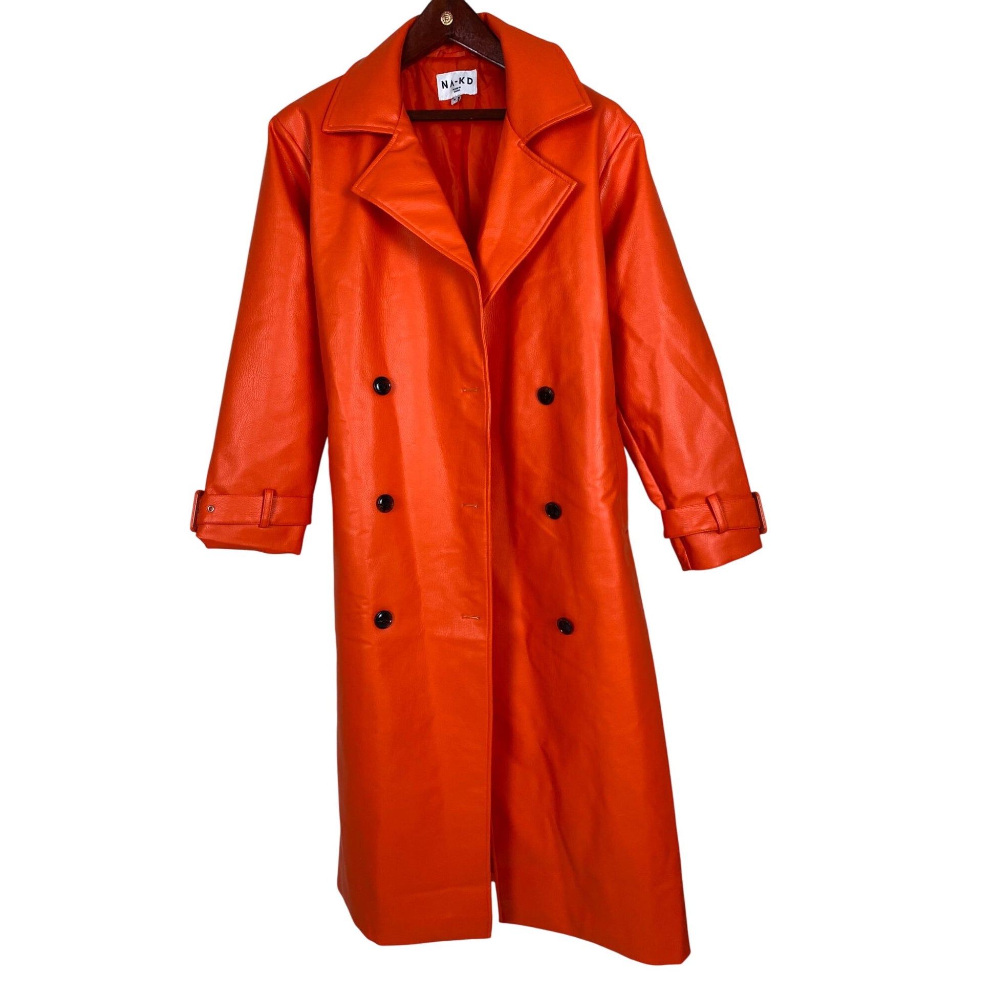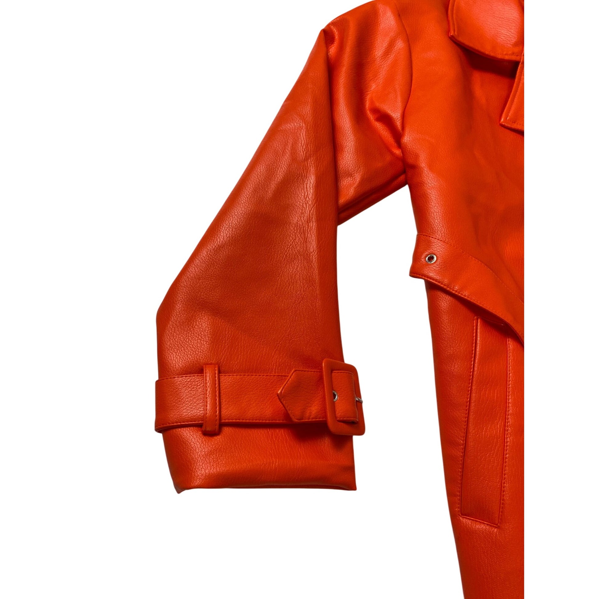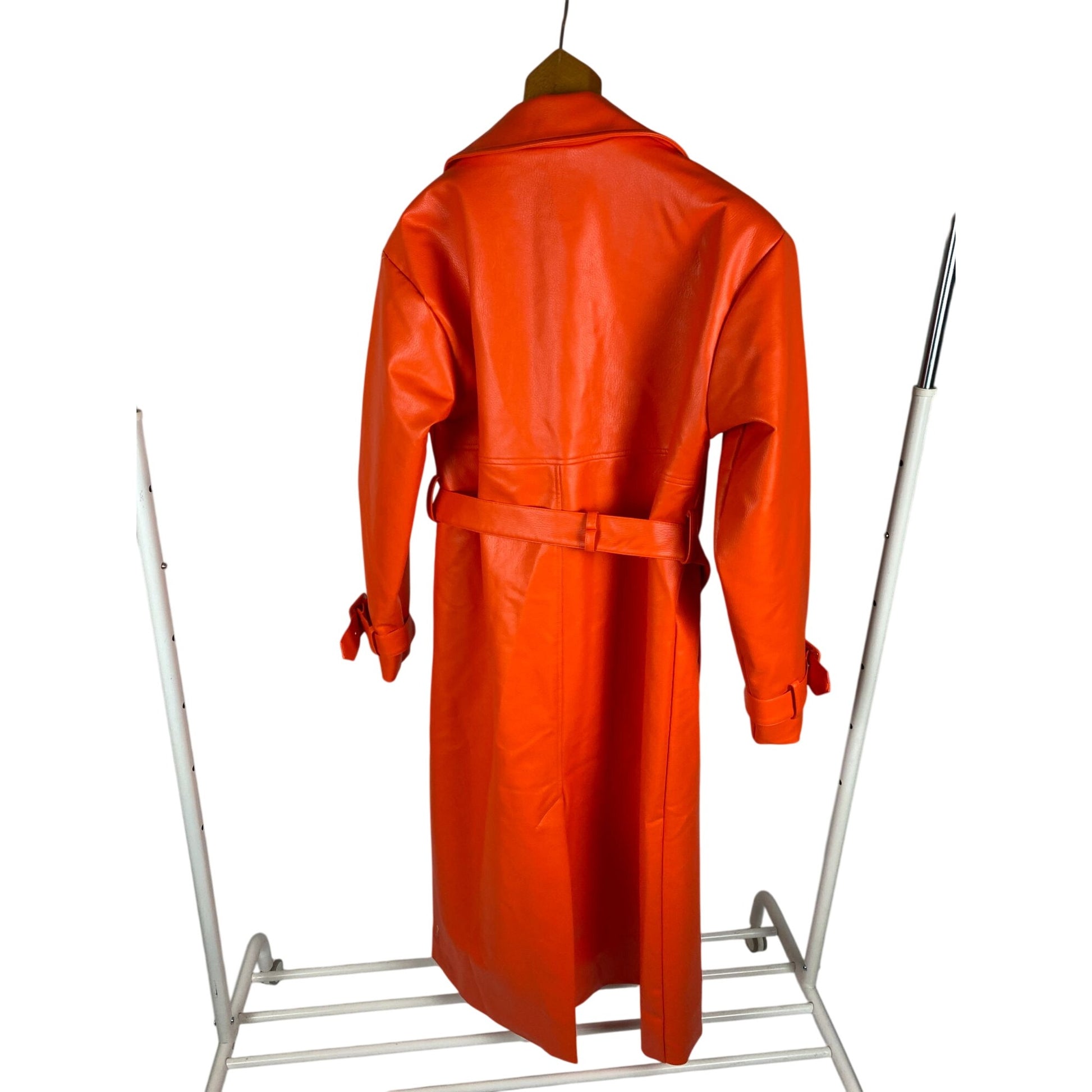 Rehaussez votre style avec ce trench-coat en similicuir orange vif. Doté d'une coupe croisée avec ceinture et boucle, ce manteau apporte une touche d'audace à toutes vos tenues. Idéal par temps frais, il allie style et fonctionnalité sans effort.