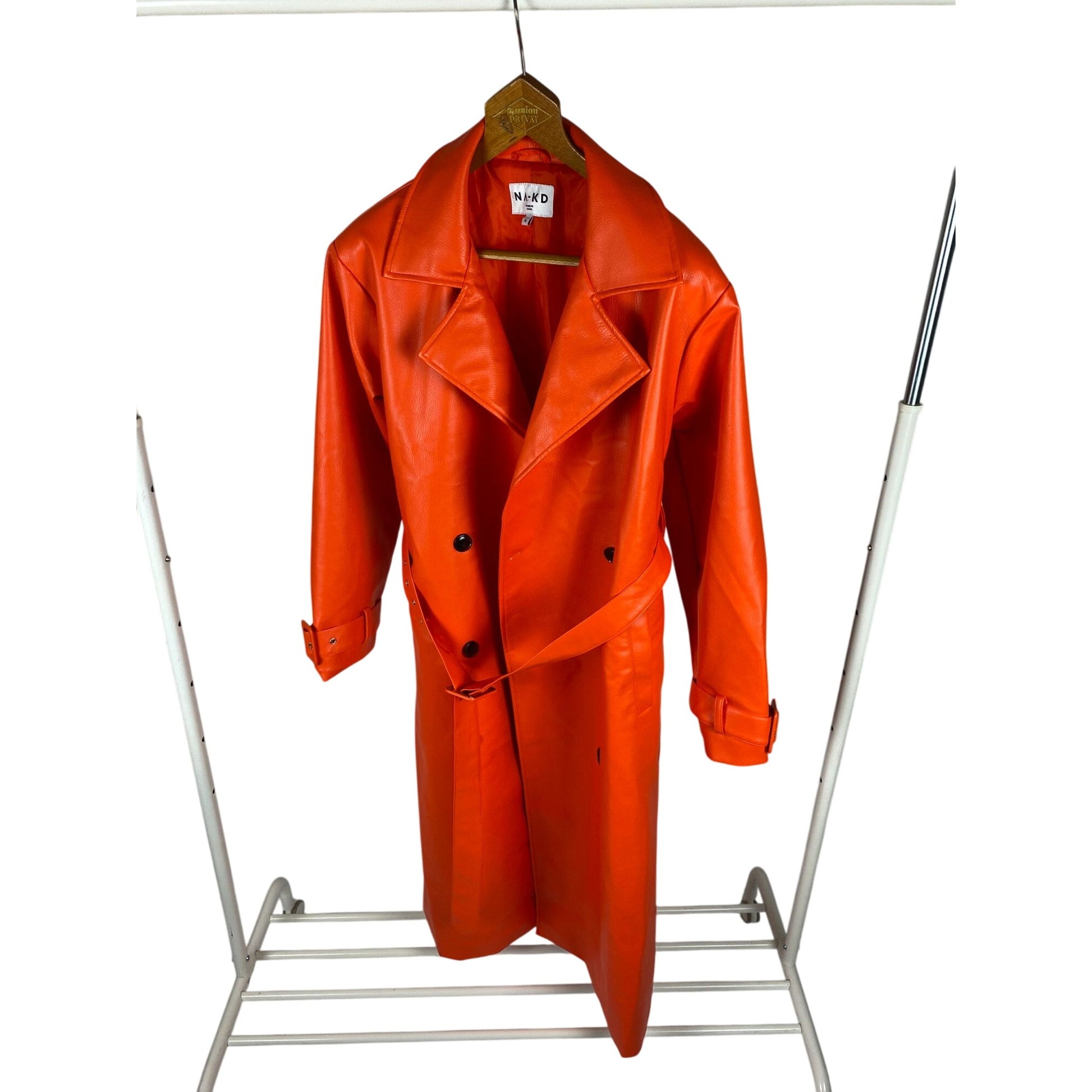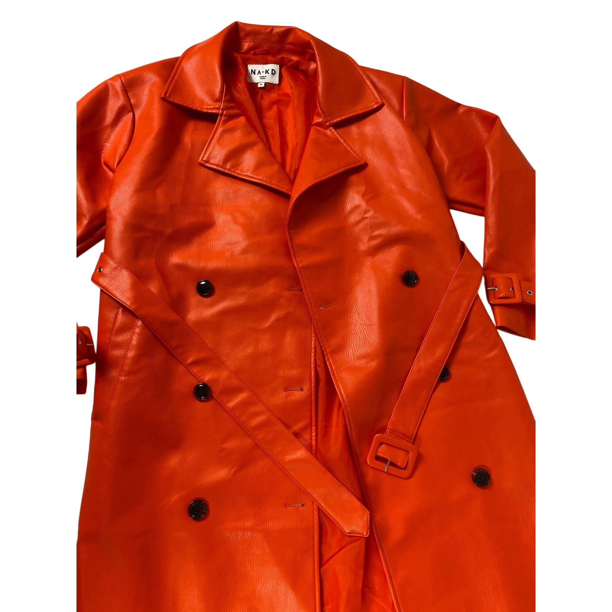 NA-KD Trench-coat long orange en similicuir à double boutonnage pour femme avec ceinture et boucle