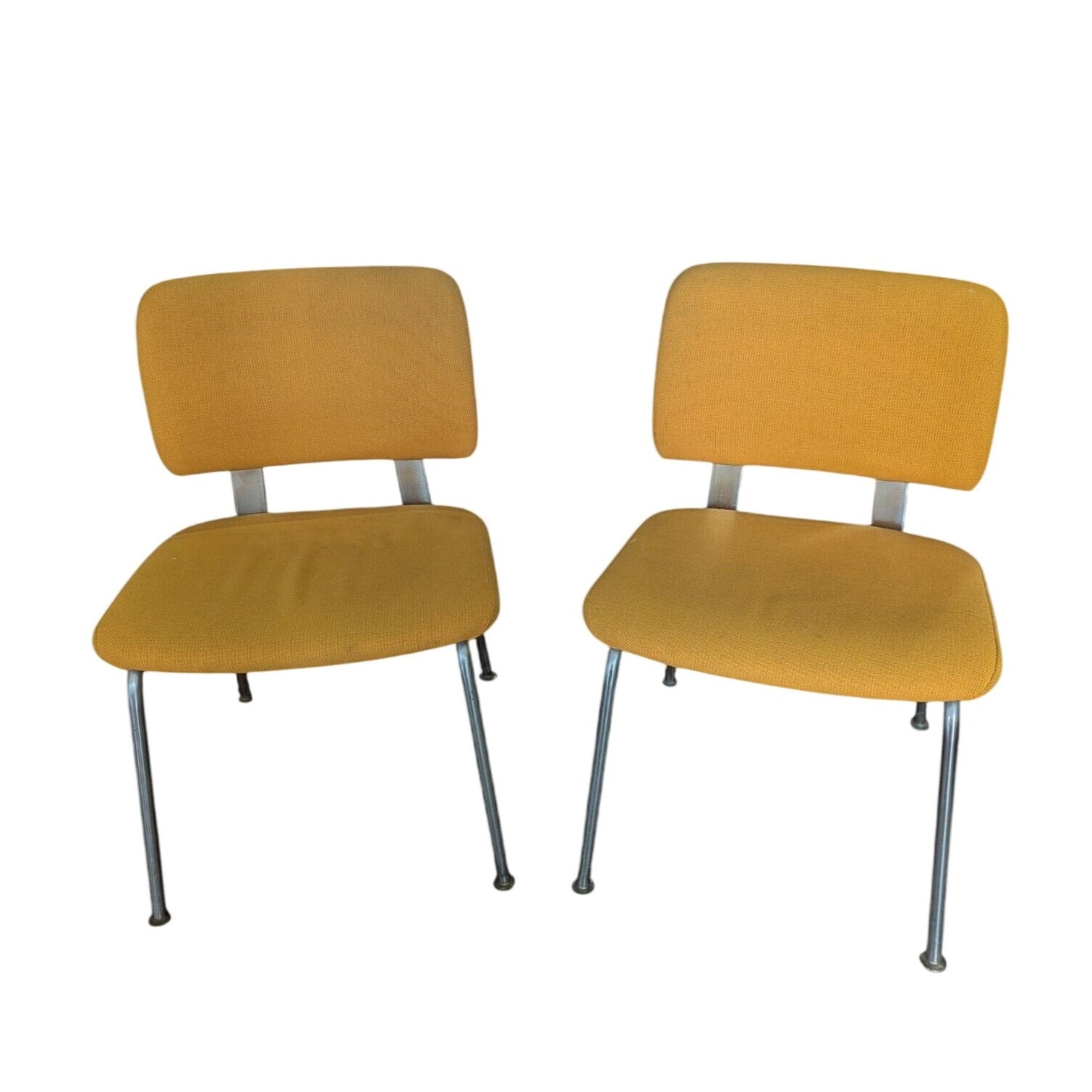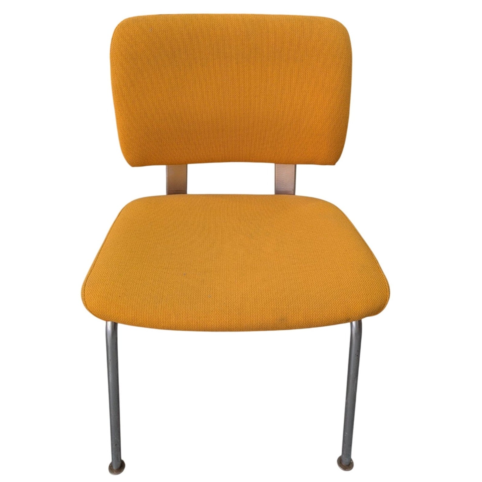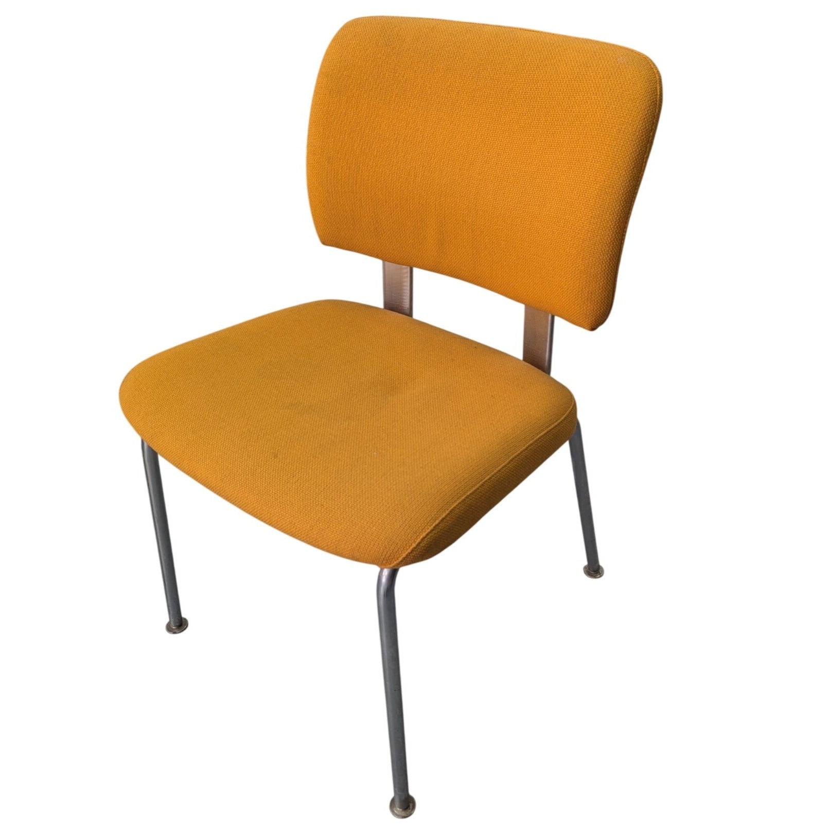 Légères taches sur le tissu et légère usure sur les pieds chromés. Hauteur d'assise : 45,7 cm, hauteur du dossier : 79,9 cm à partir du sol.