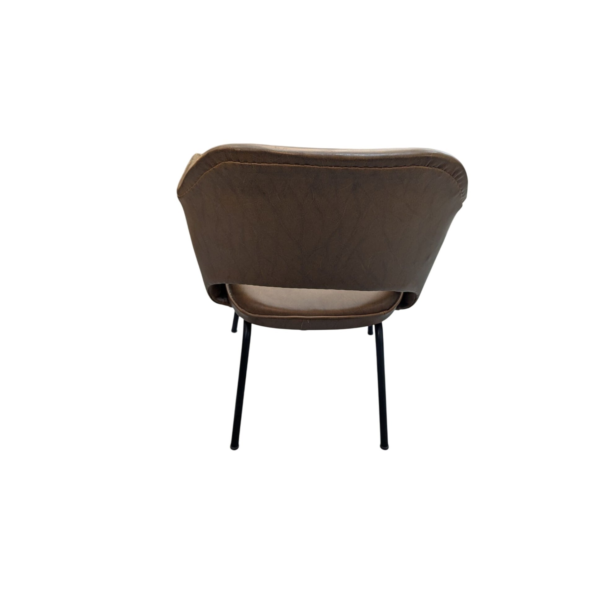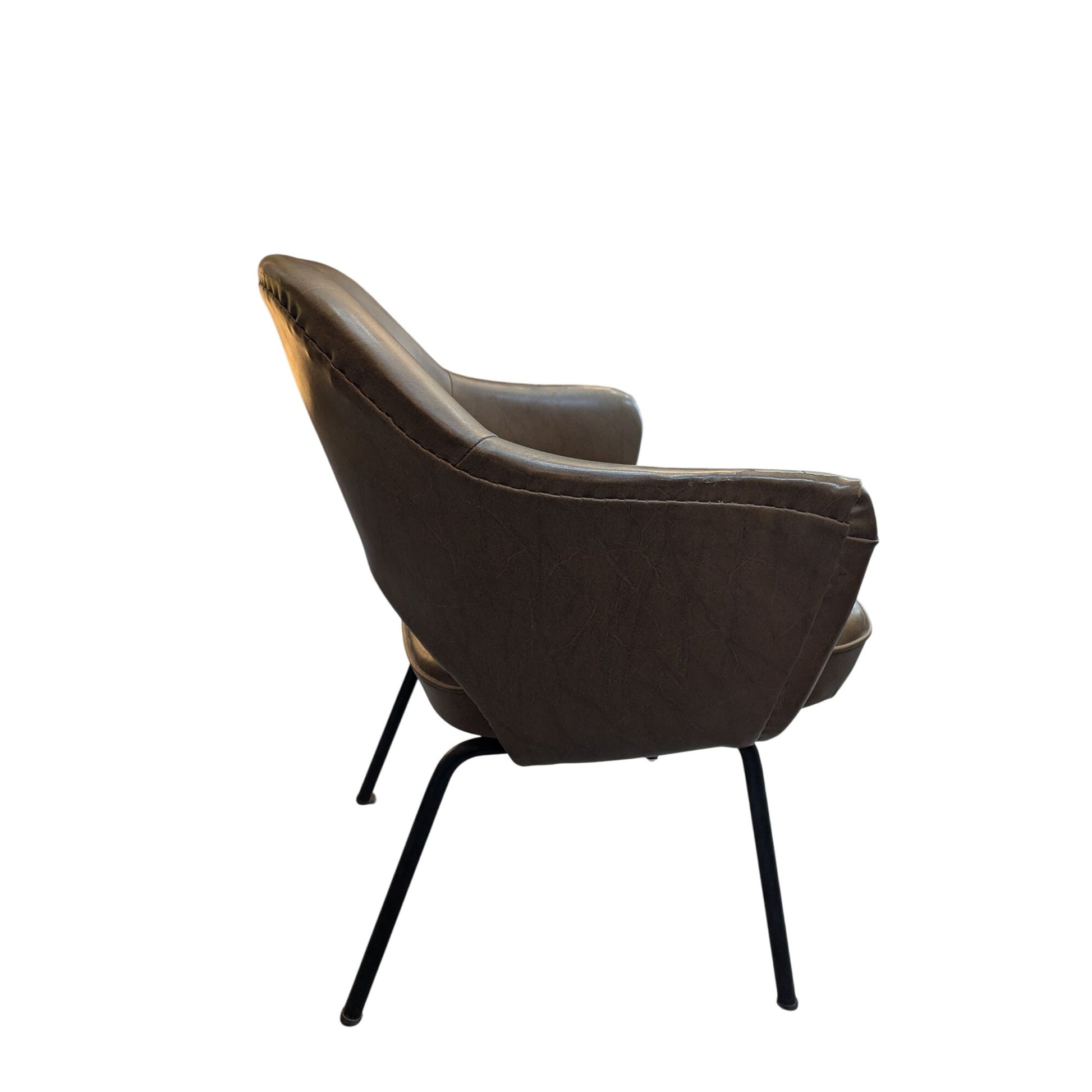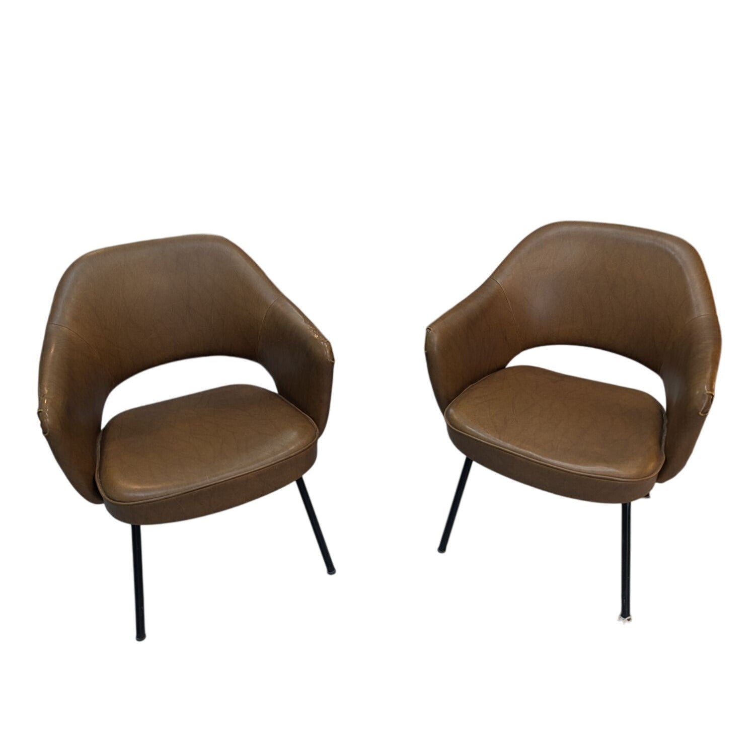 Paire De Fauteuils Conférence Style Saarinen En Cuir Marron Sur Pieds Métal Noir