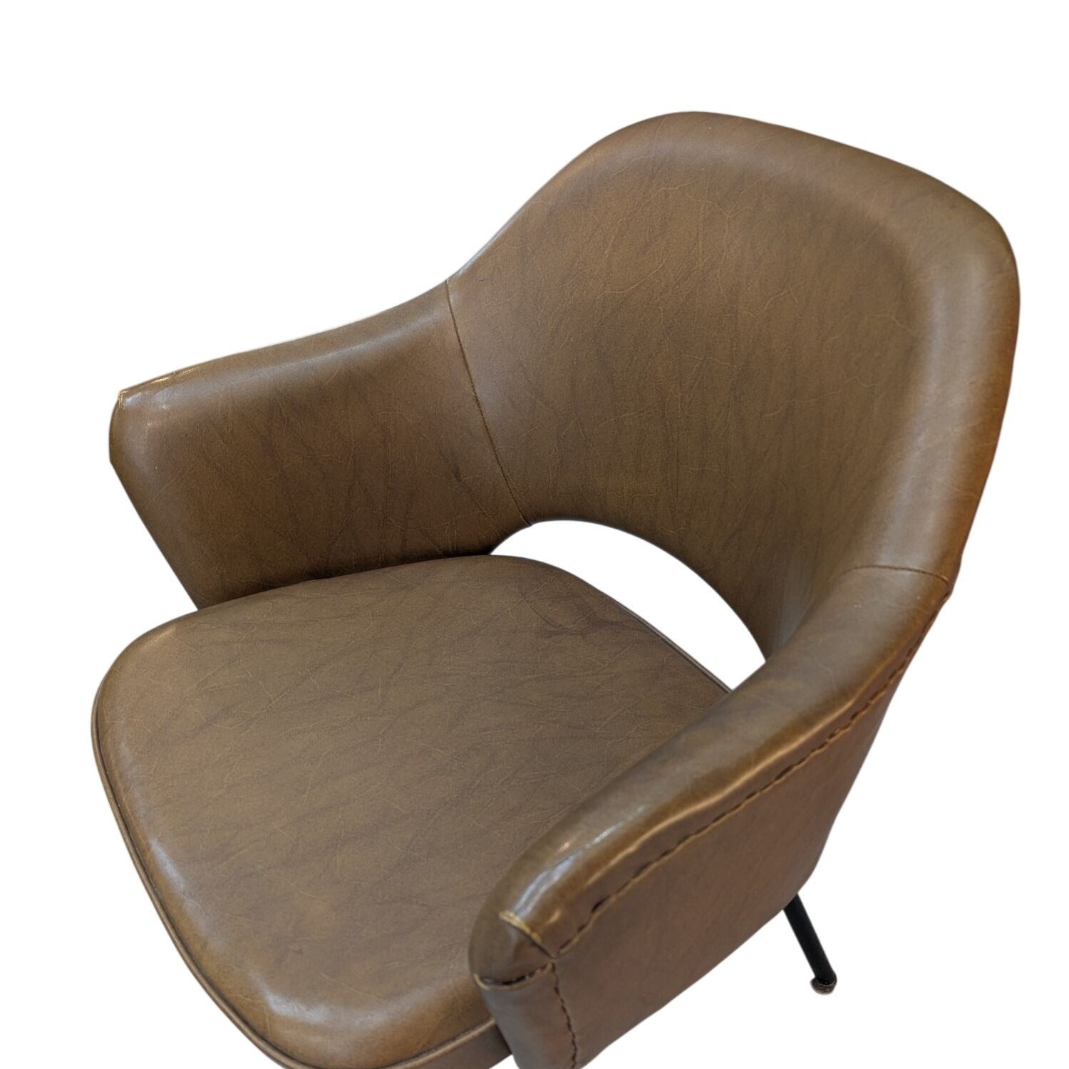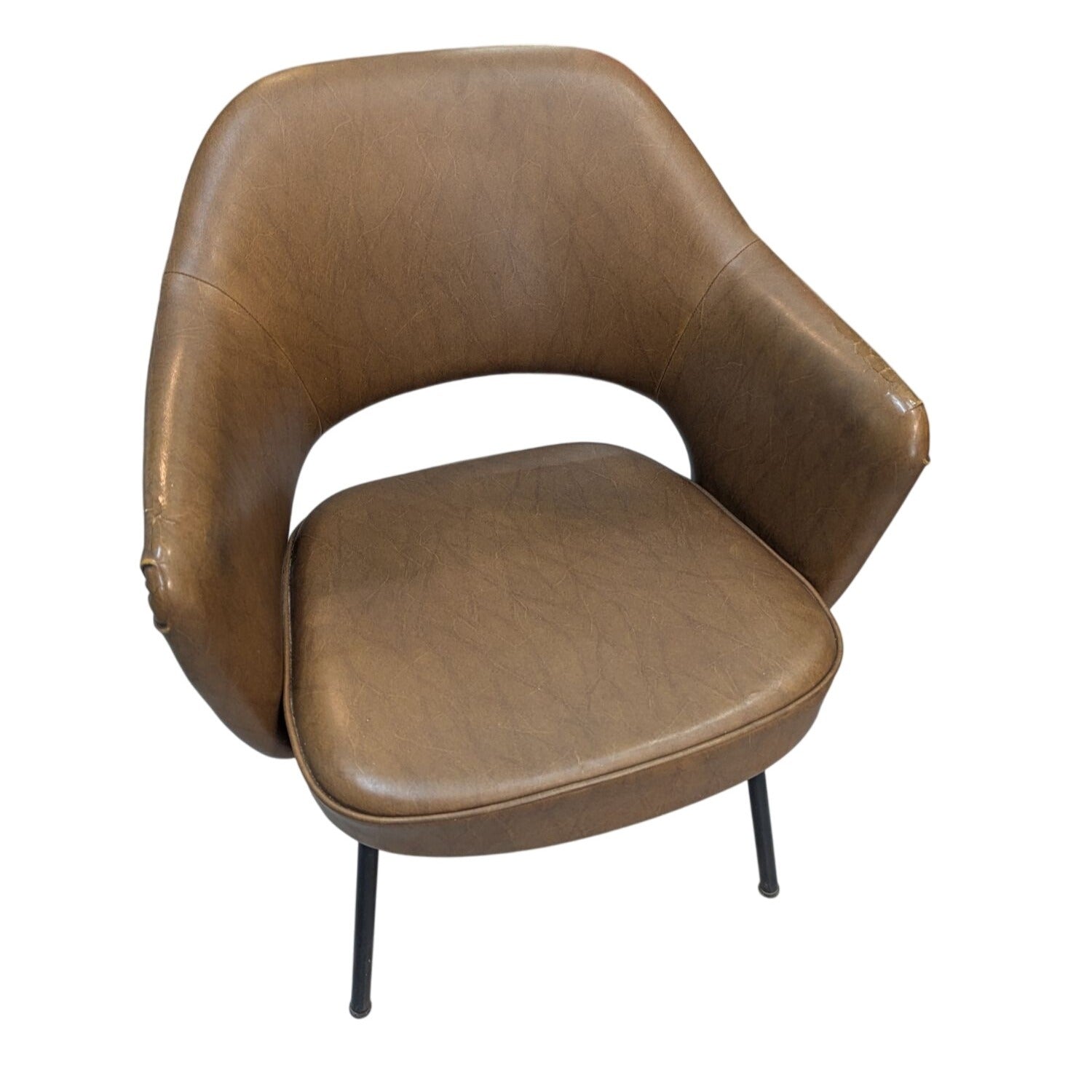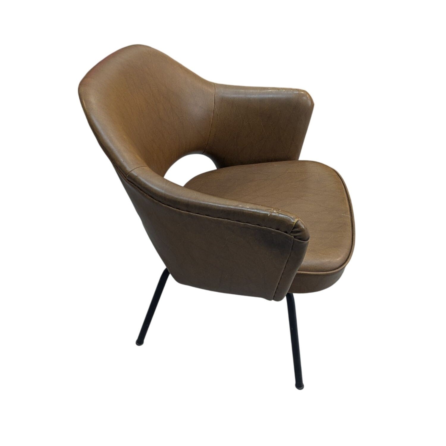 Paire De Fauteuils Conférence Style Saarinen En Cuir Marron Sur Pieds Métal Noir