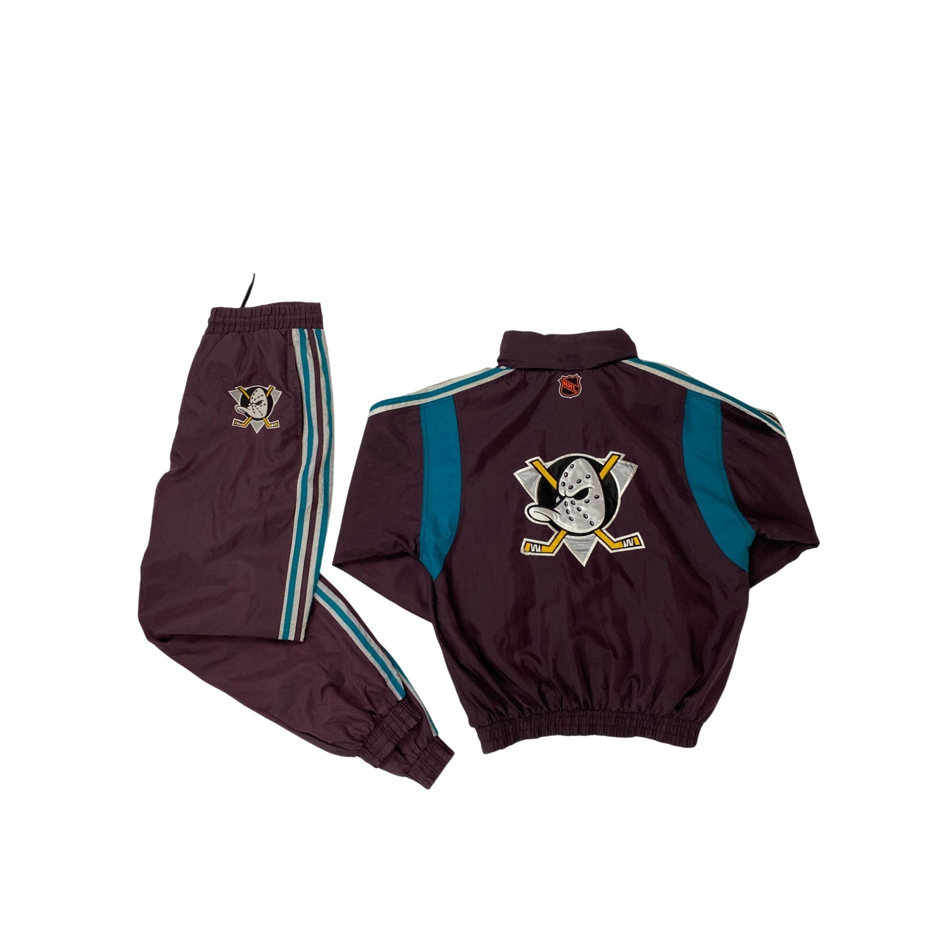 Vintage Anaheim Ducks Starter tracksuit in size M. Perfect for fans and collectors, this stylish piece combines comfort with retro sports flair. Ideal for casual wear or game nights, it showcases team pride effortlessly.
