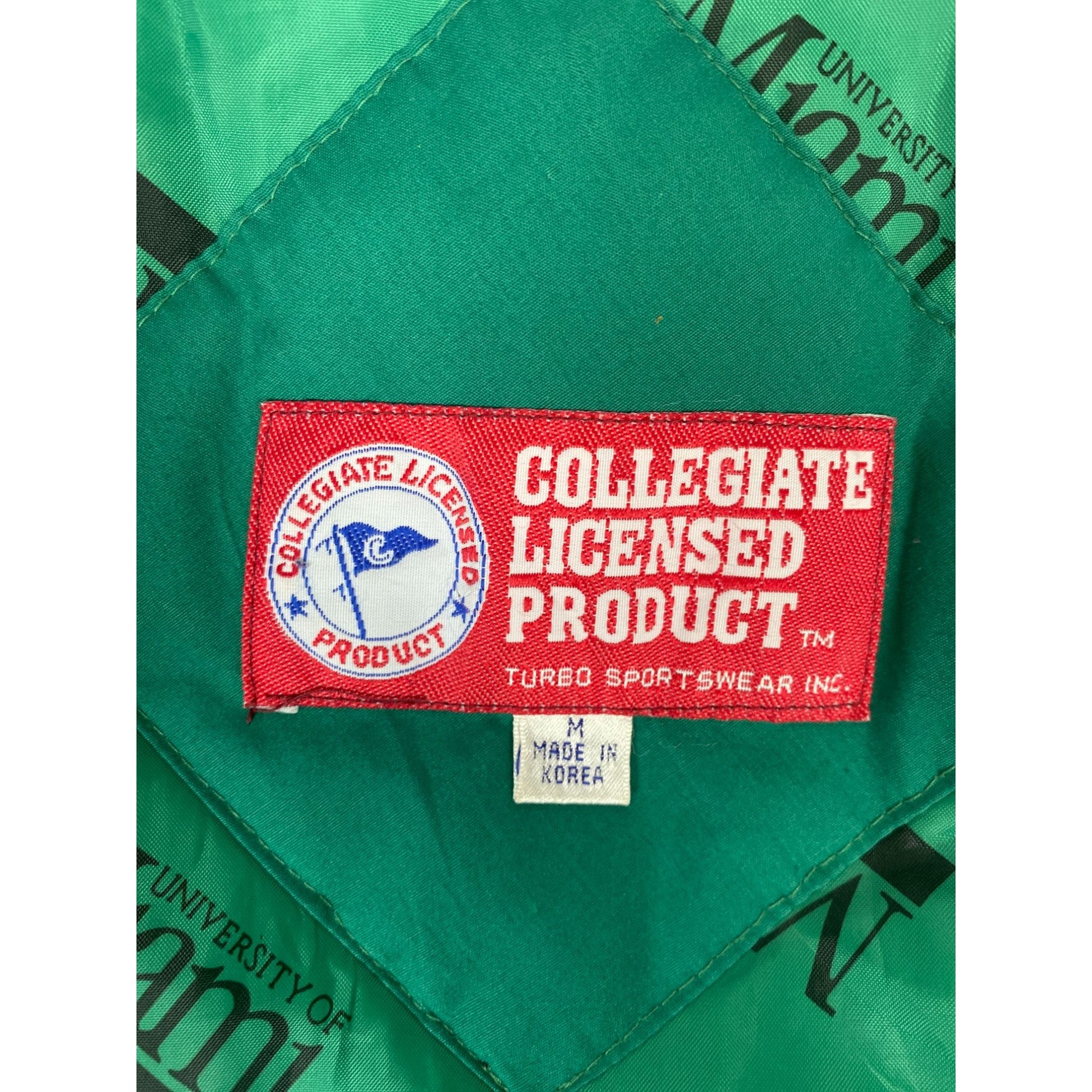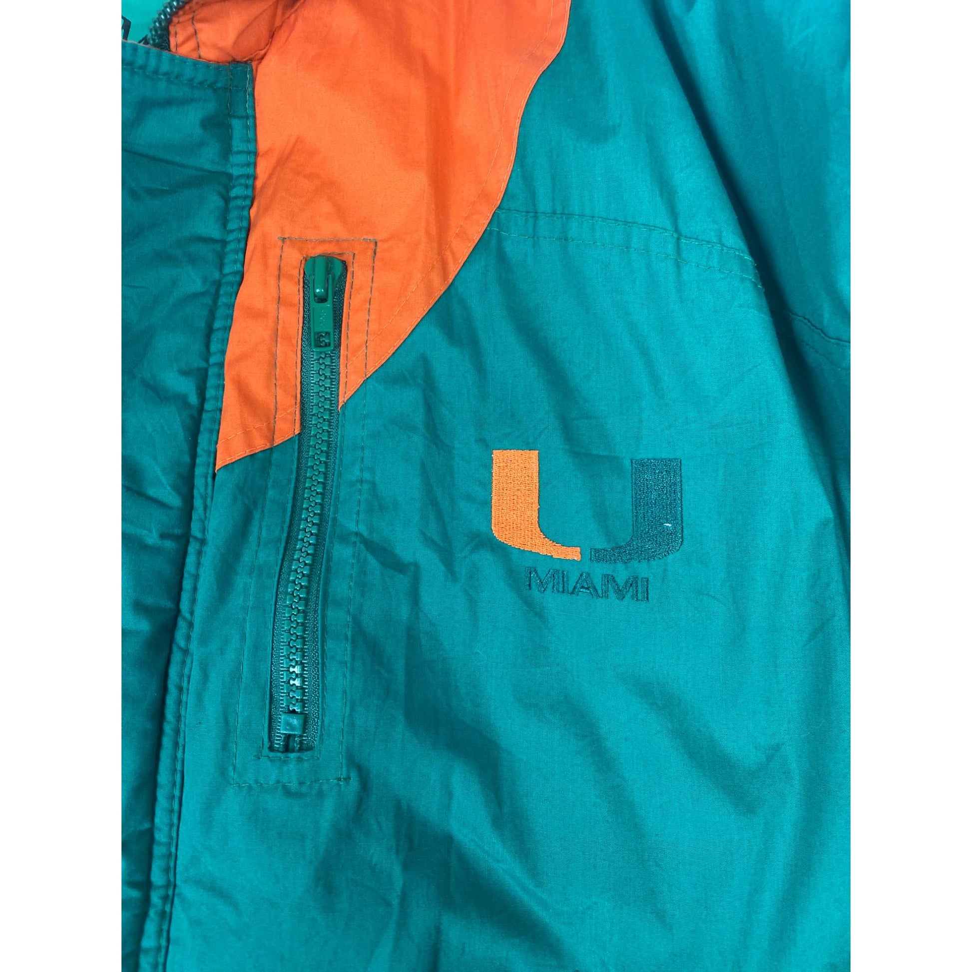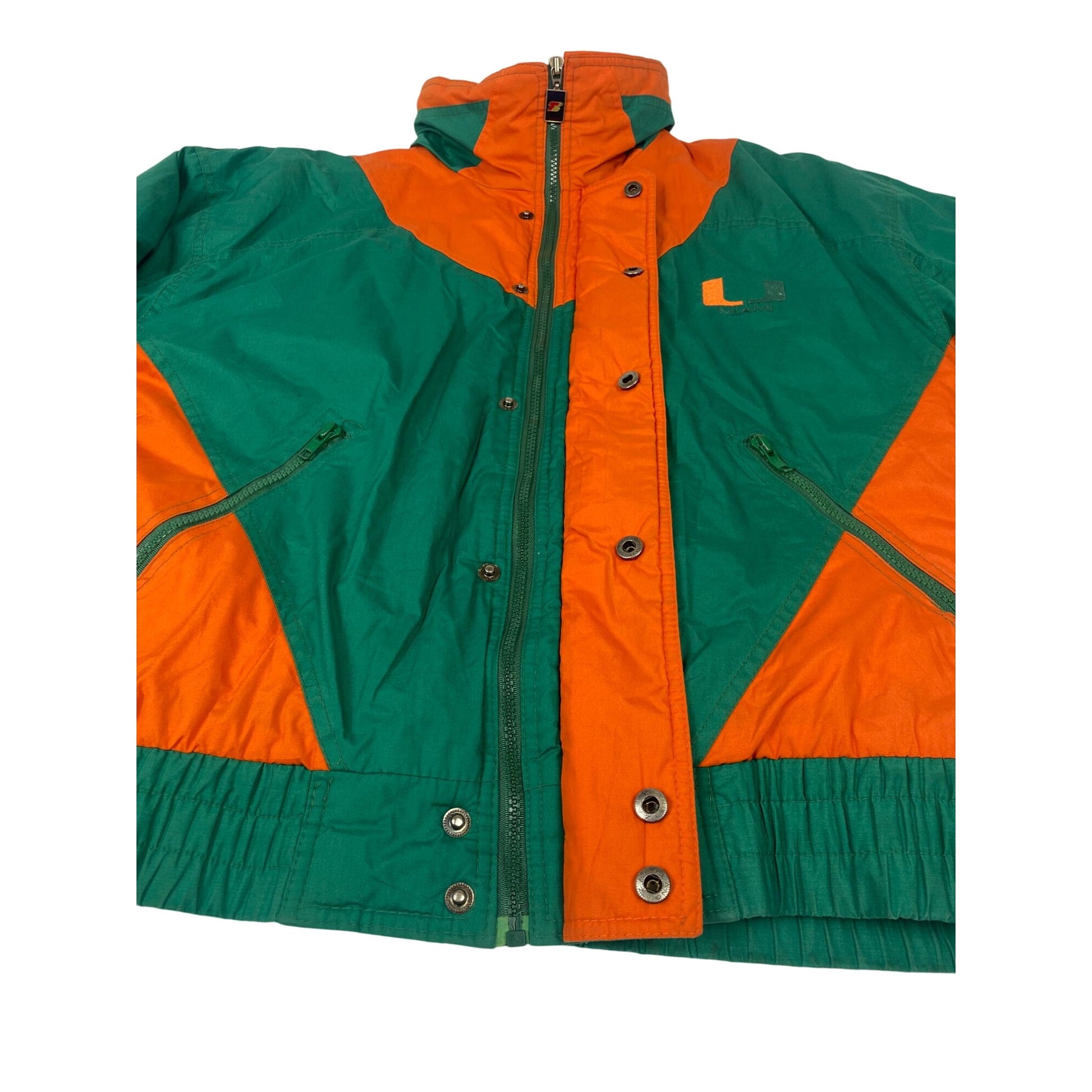 Veste sous licence universitaire de l'Université de Miami verte et orange avec fermeture à pression, taille M