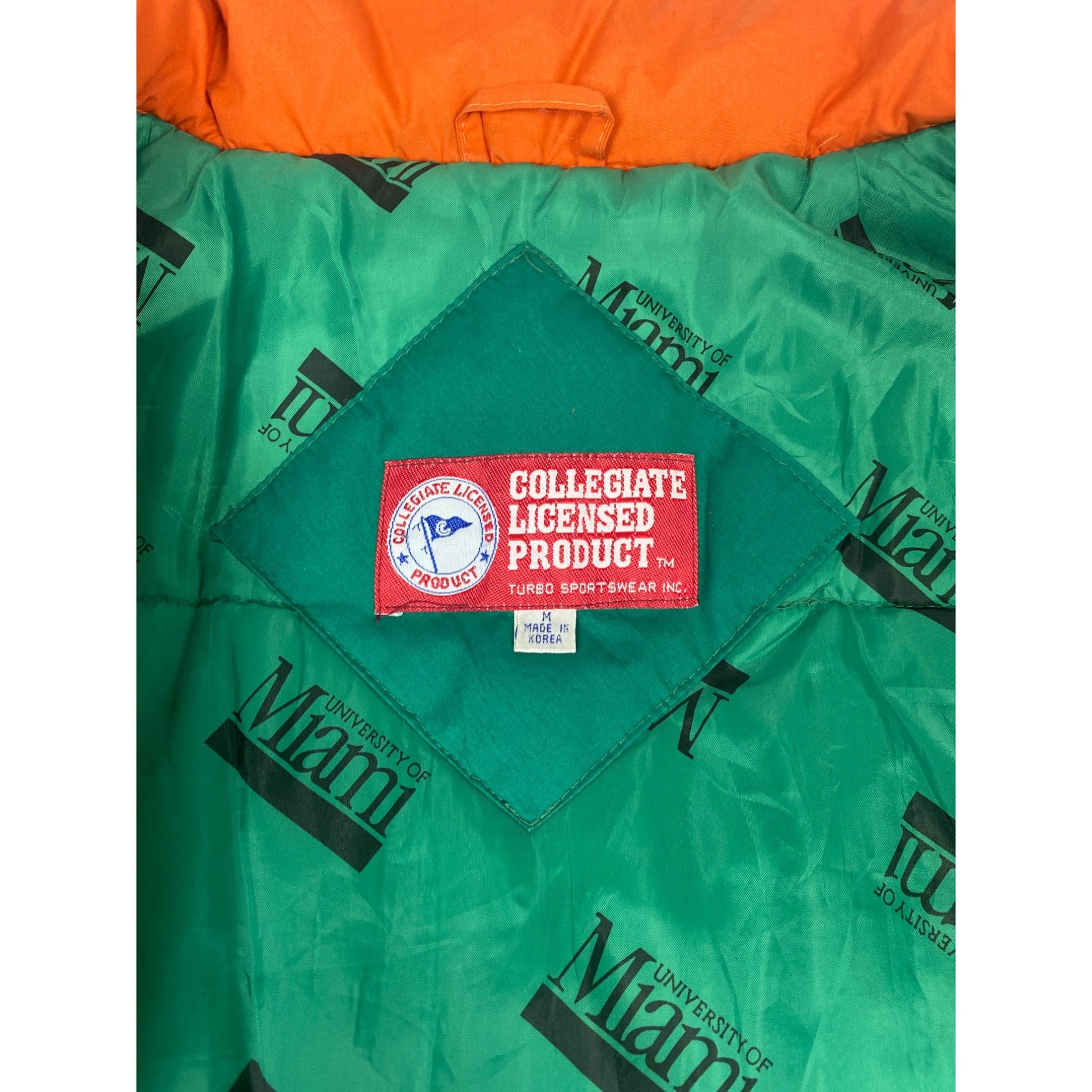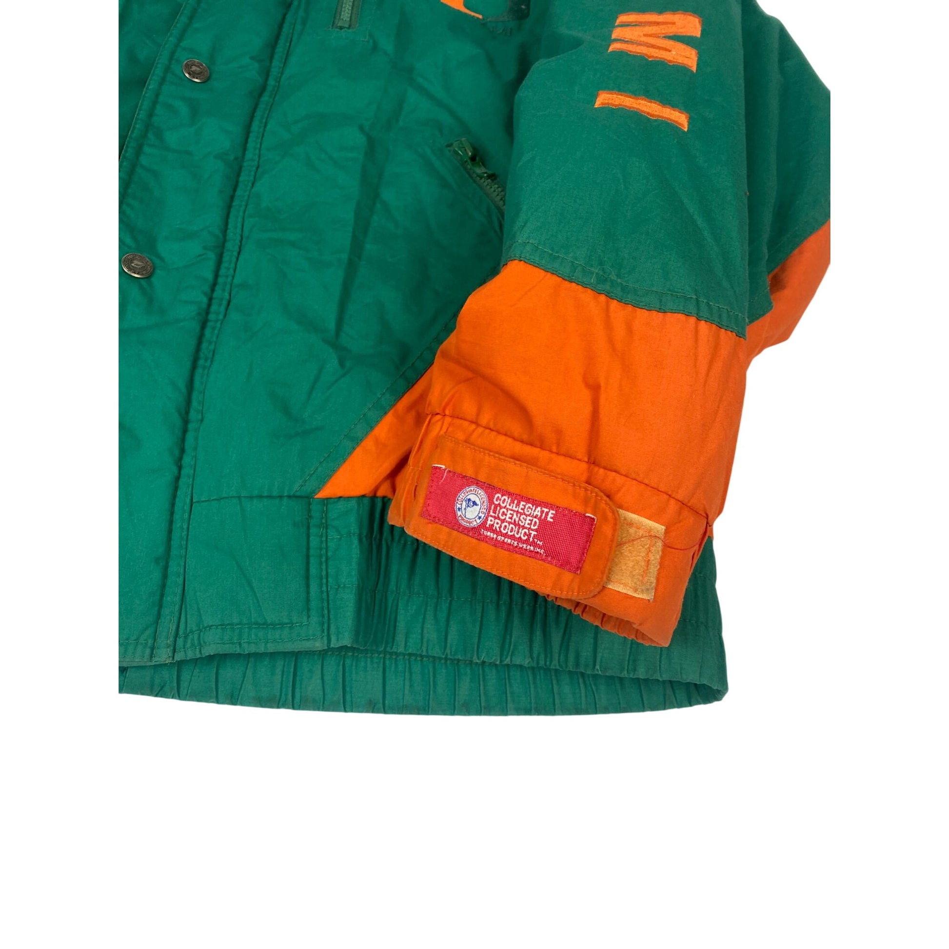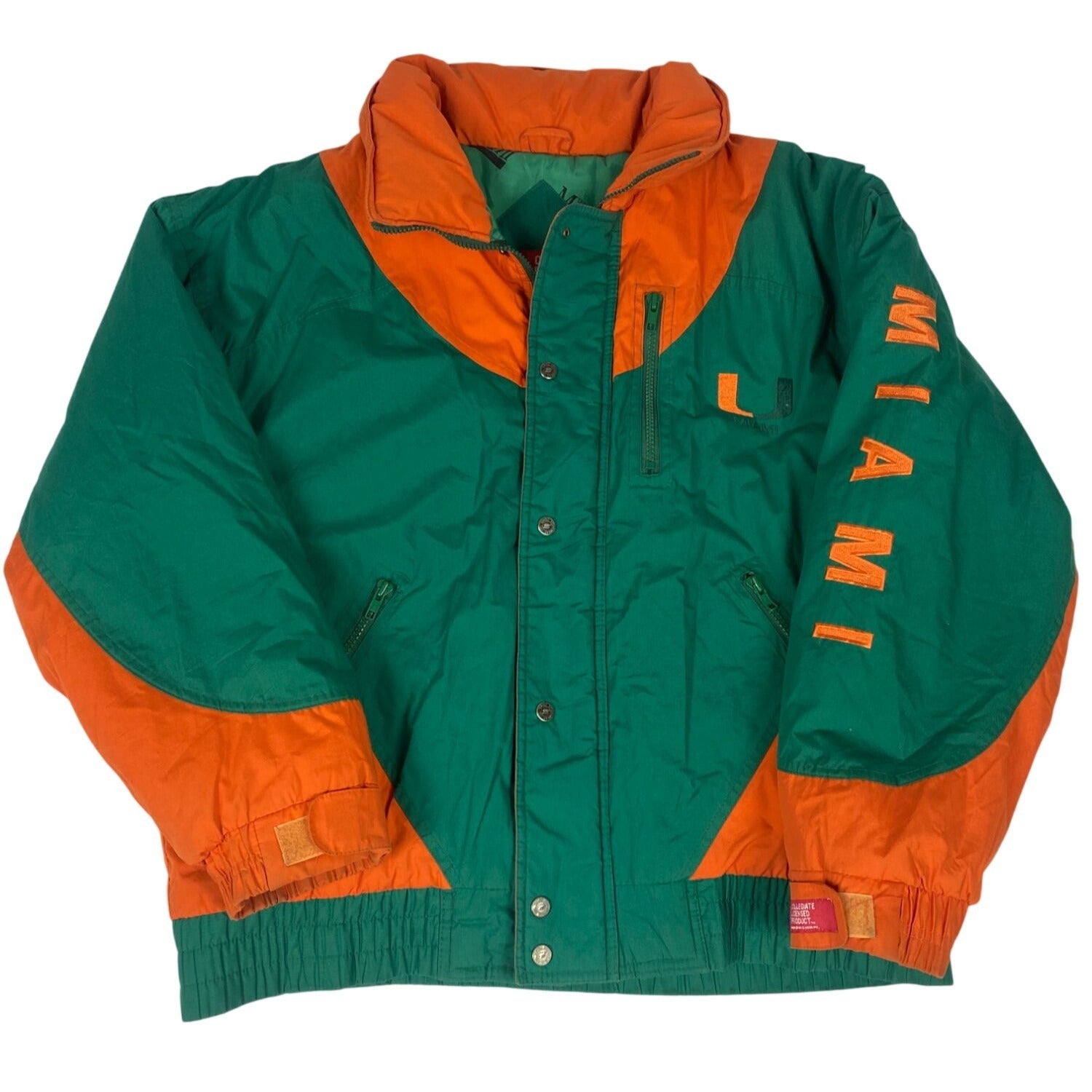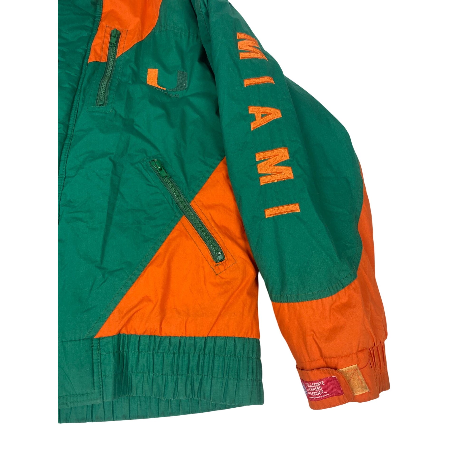 Veste sous licence universitaire de l'Université de Miami verte et orange avec fermeture à pression, taille M