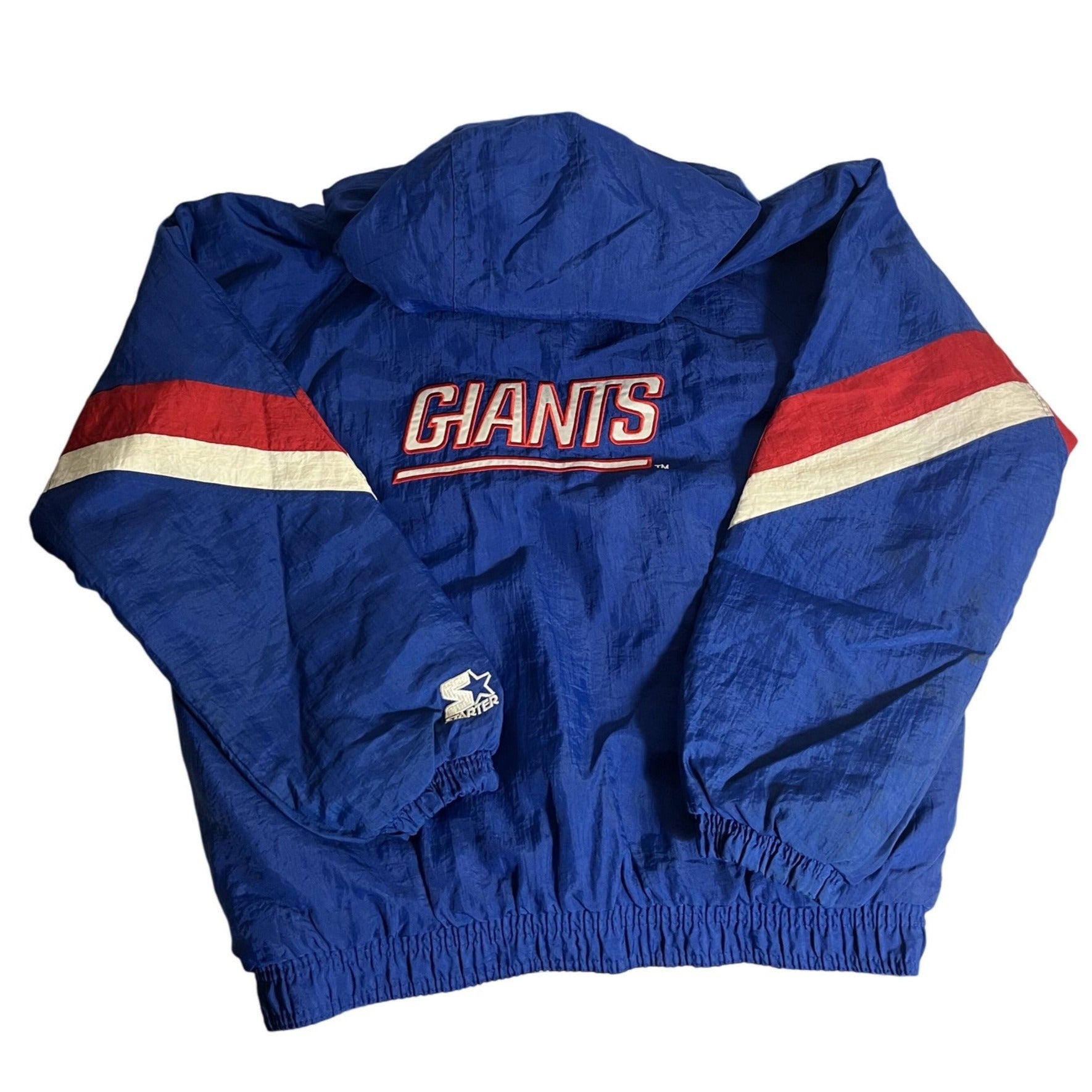 Veste coupe-vent bleu vintage Giants Starter avec capuche et poignets élastiques