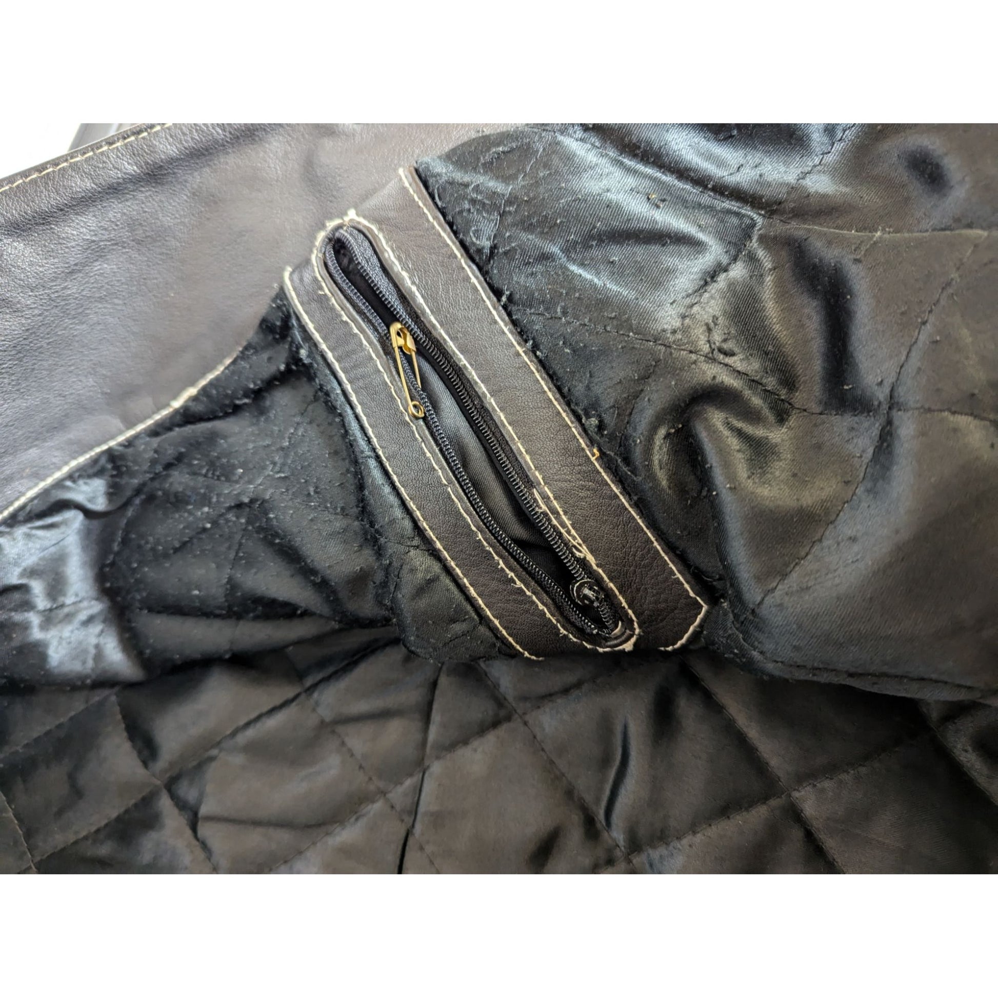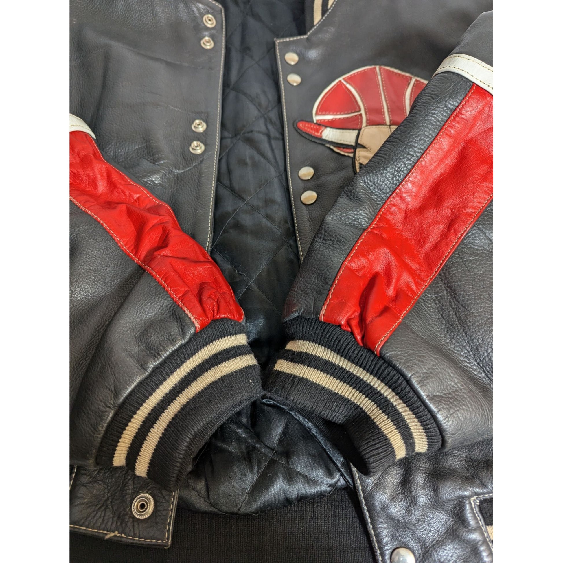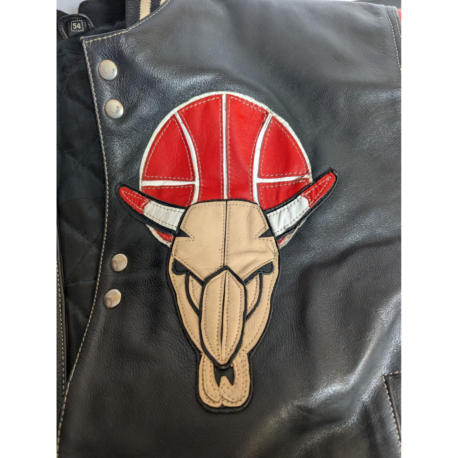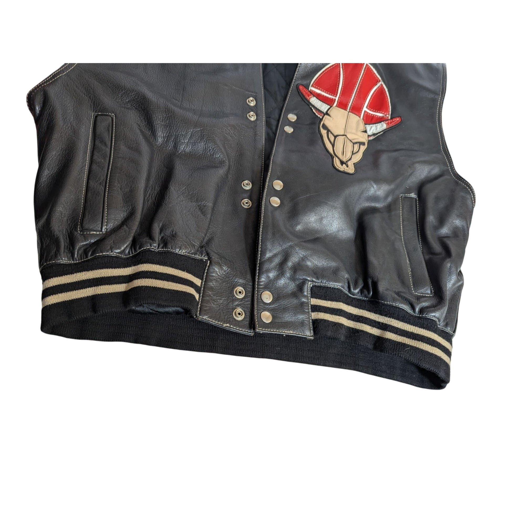 Veste de basket-ball universitaire vintage Howie & Sons XXL en cuir noir avec patch Red Bull