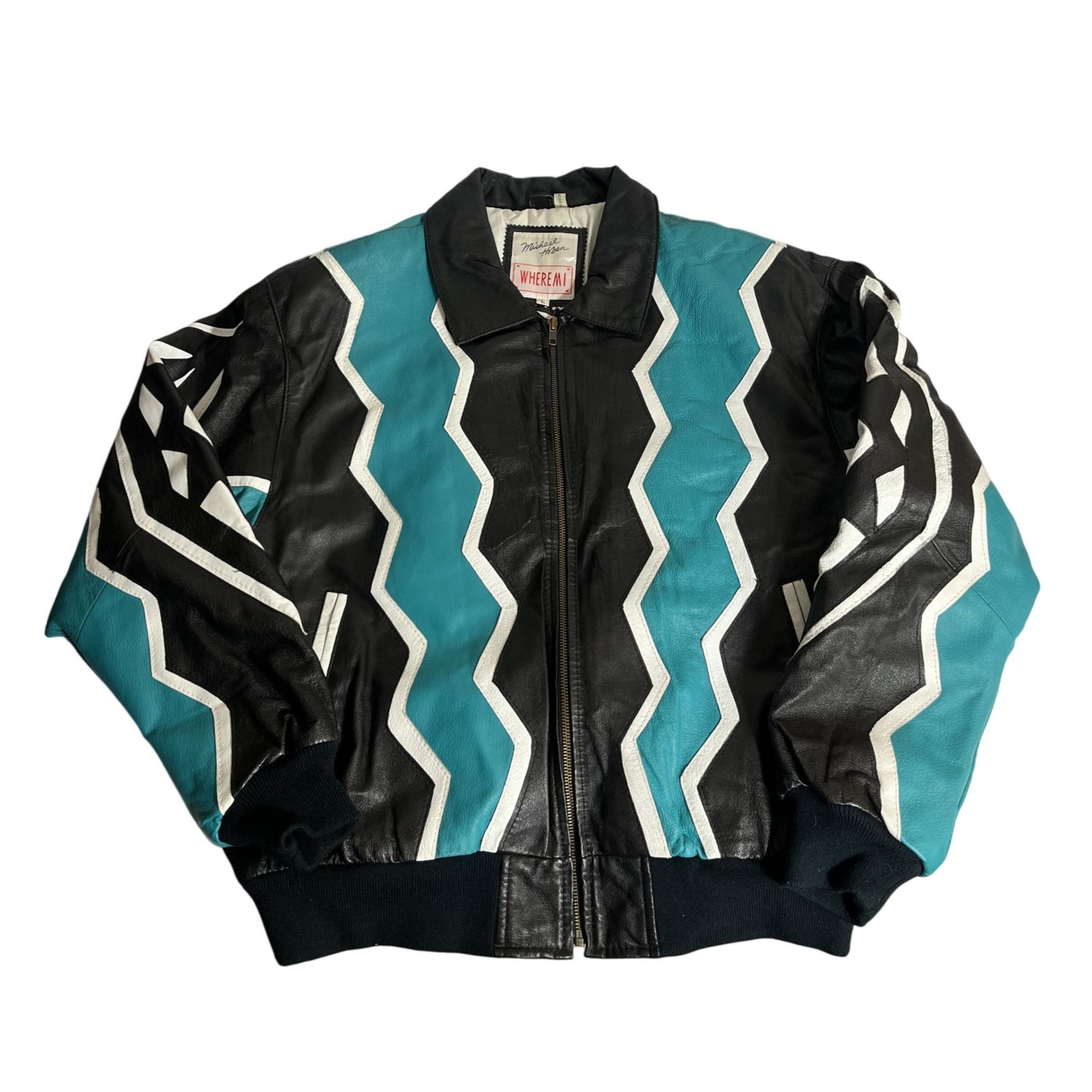 Affirmez votre style avec cette veste en cuir Michael Hoban WHEREMI. Son motif zigzag noir et bleu sarcelle accrocheur incarne un style vintage et une touche de modernité. Cette veste en cuir Michael Hoban WHEREMI est le choix idéal pour les amateurs de mode vintage avec une touche contemporaine, idéale pour faire forte impression.