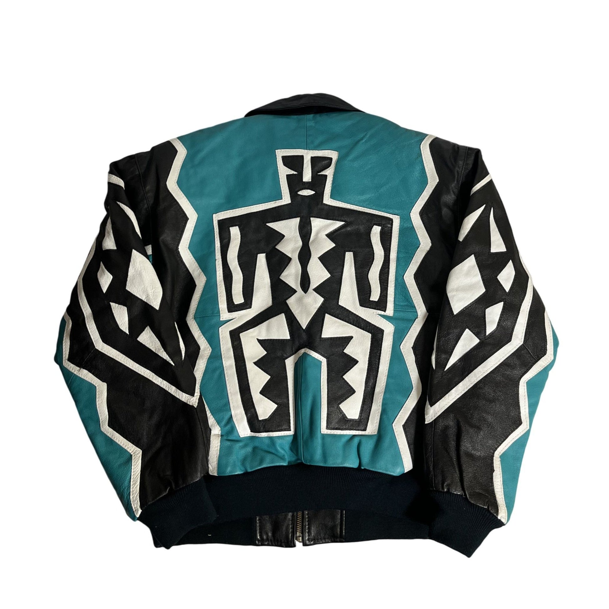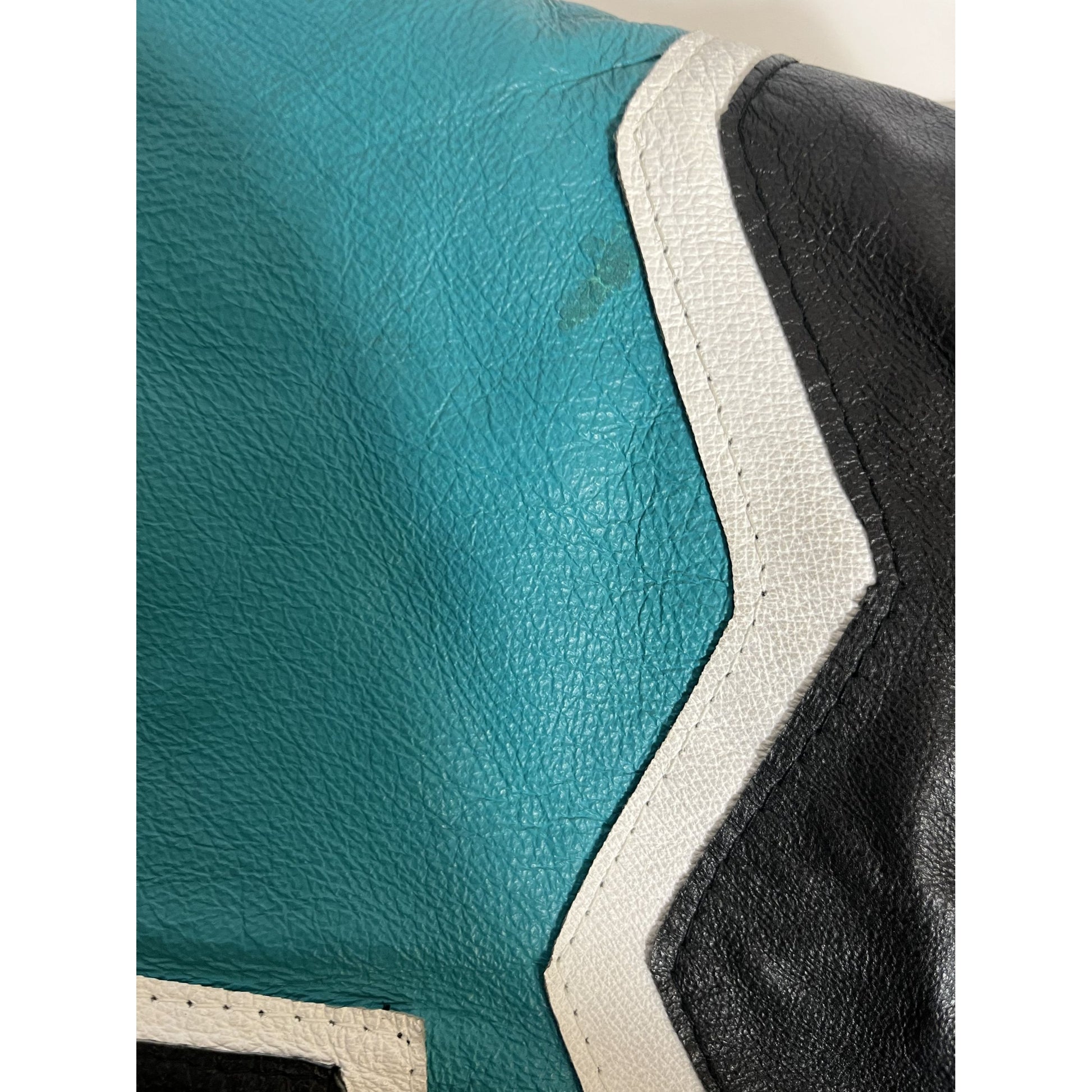Veste en cuir Michael Hoban Wheremi, grande taille, noire et bleu sarcelle, motif zigzag