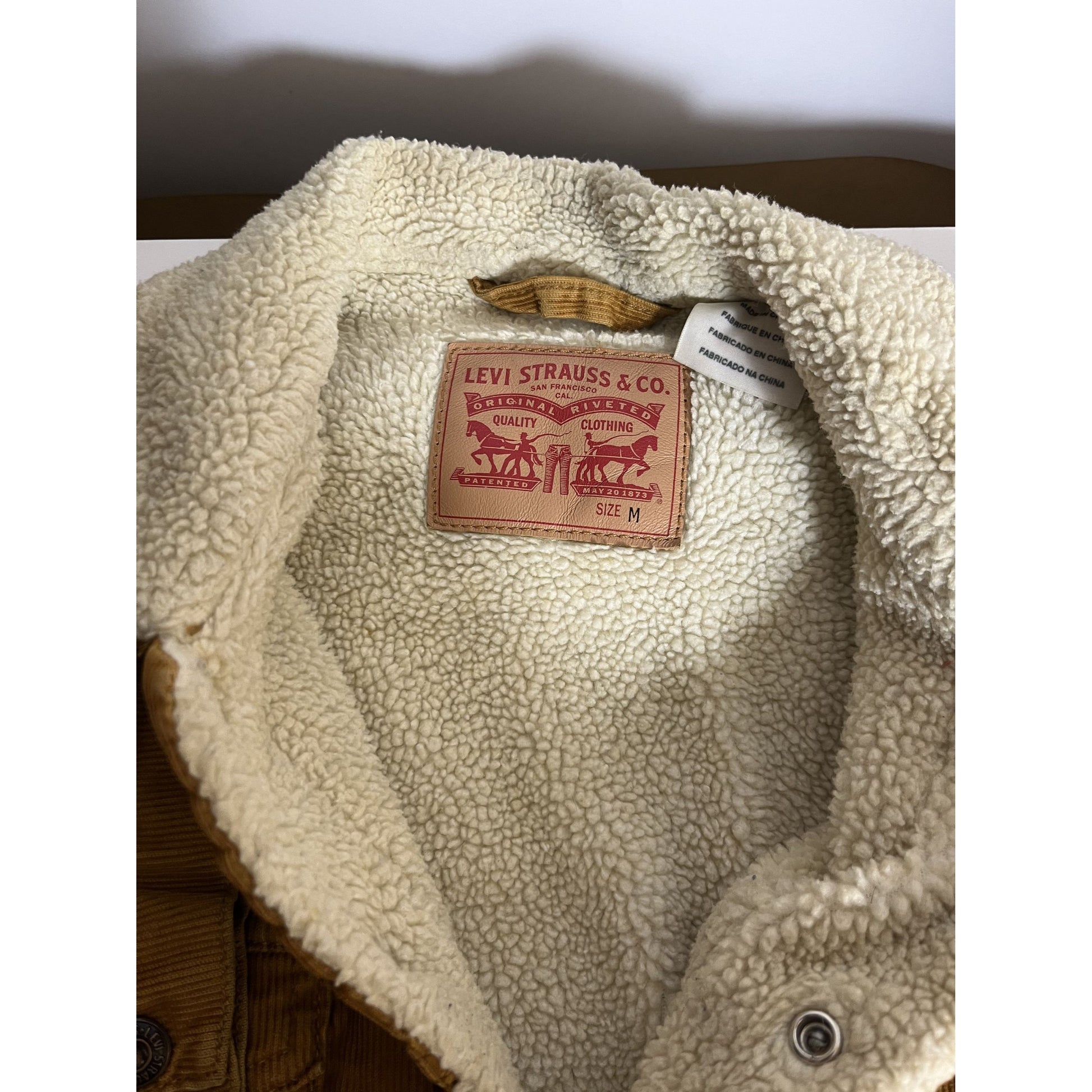 Veste Levi's en velours côtelé doublée sherpa pour homme, couleur fauve moyen