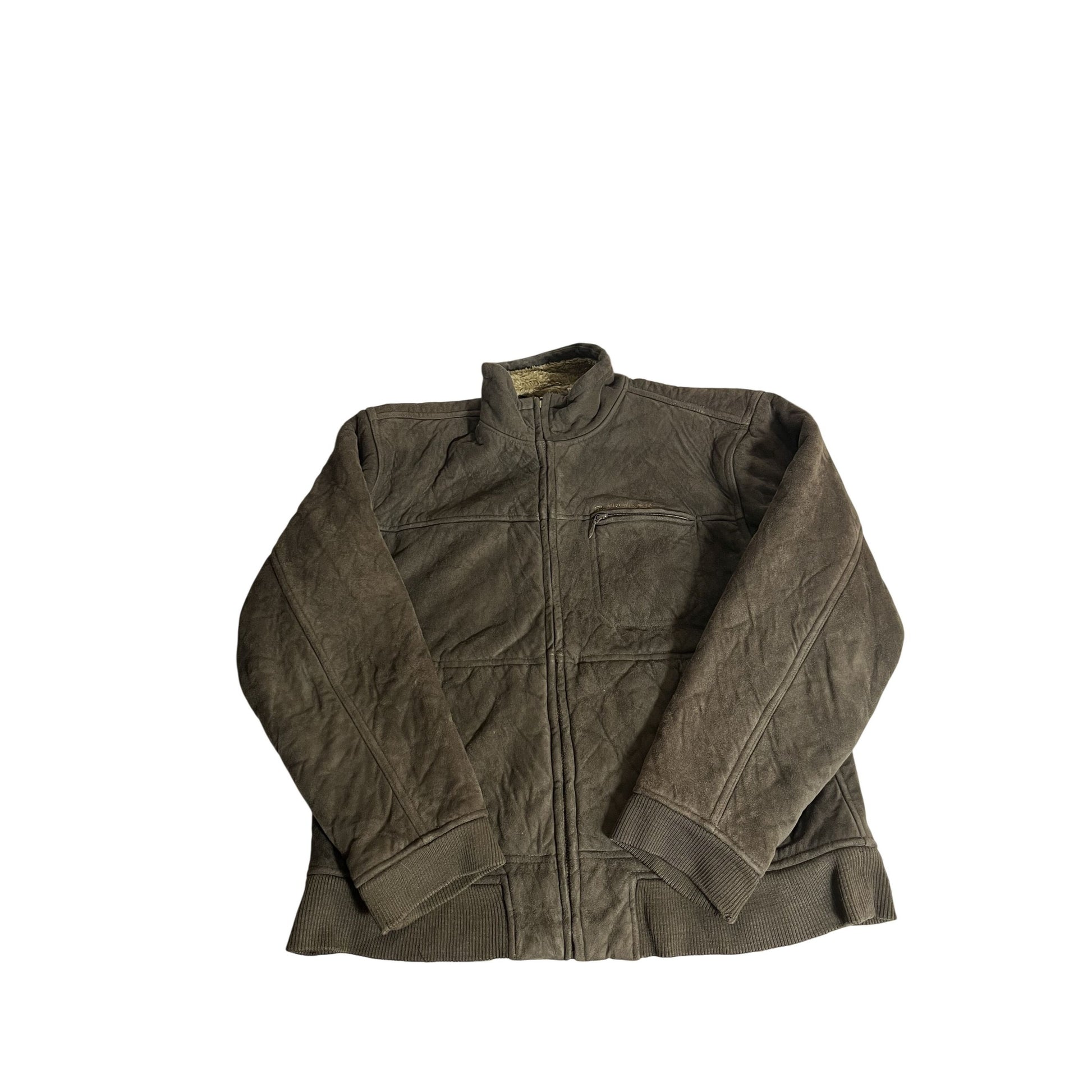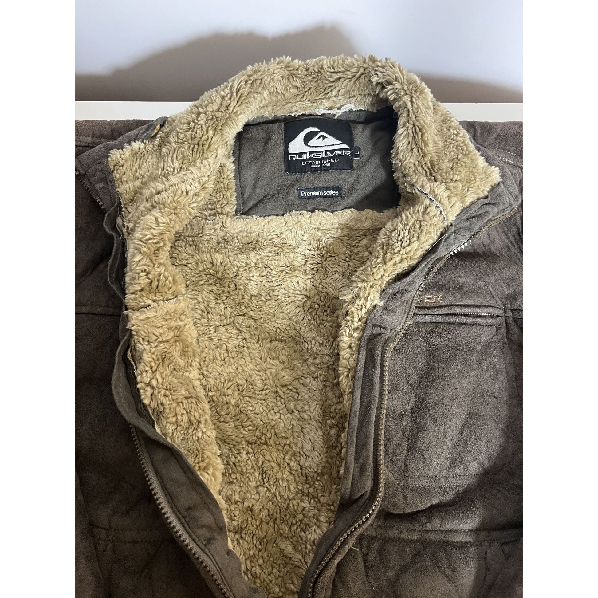 Veste matelassée Quiksilver marron doublée de sherpa pour homme, taille L, fermeture éclair sur le devant avec poche