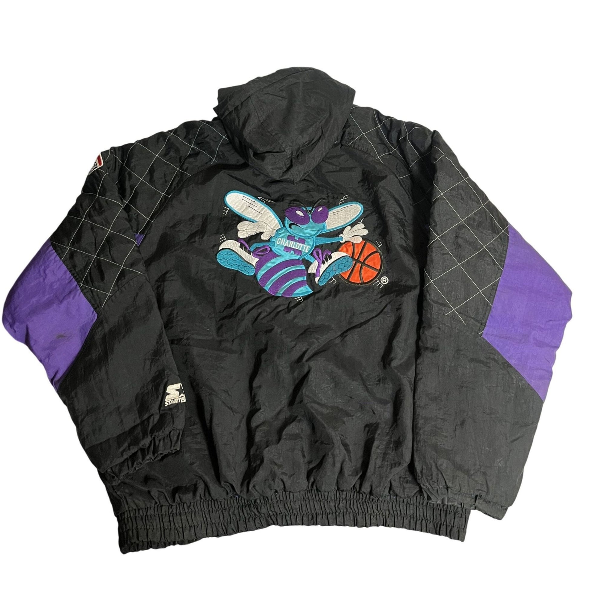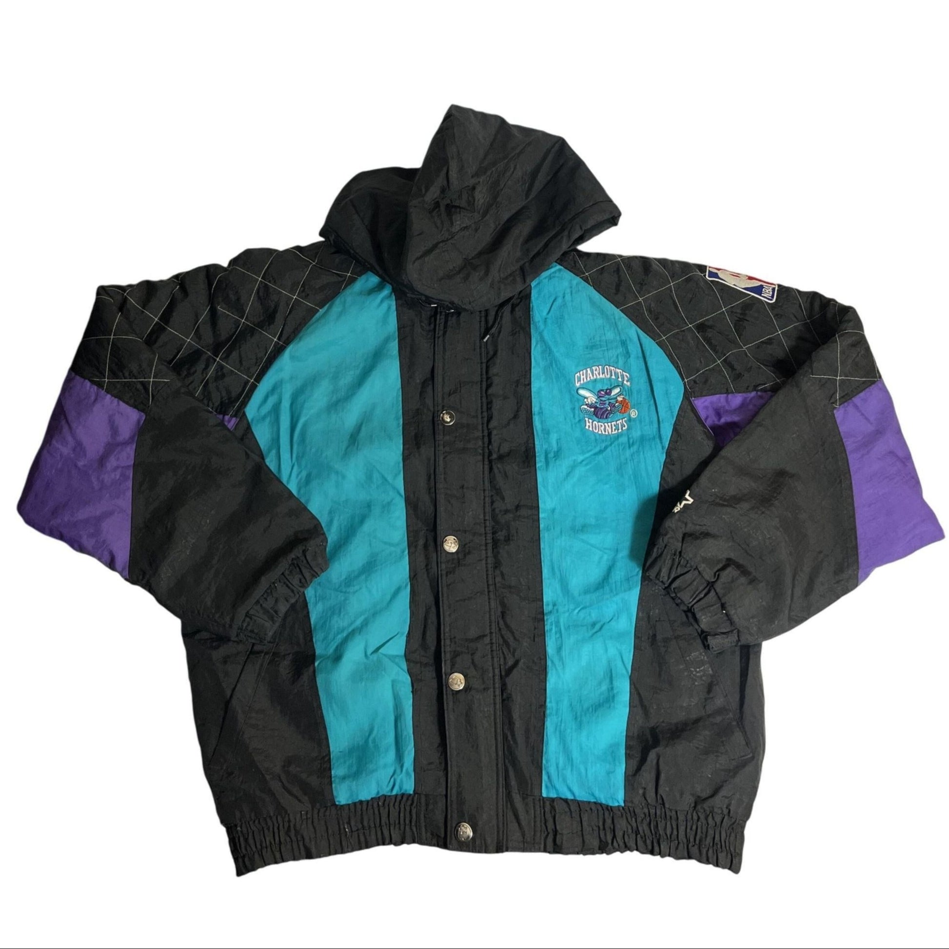 Revivez l'âge d'or de la NBA avec cette veste vintage Starter des Charlotte Hornets. Véritable pièce de collection, elle est parfaite pour les fans qui souhaitent afficher leur fierté des Hornets avec une touche rétro.