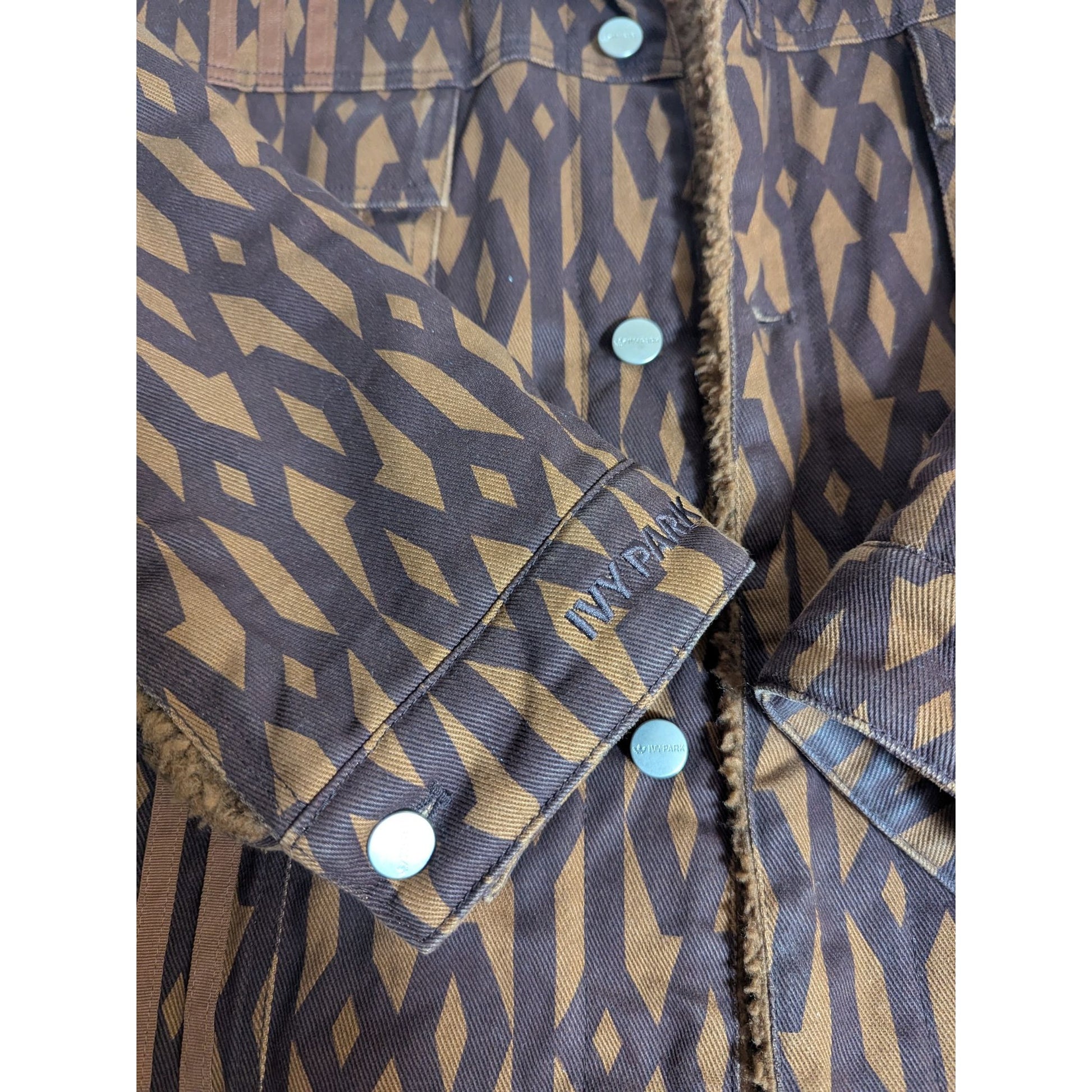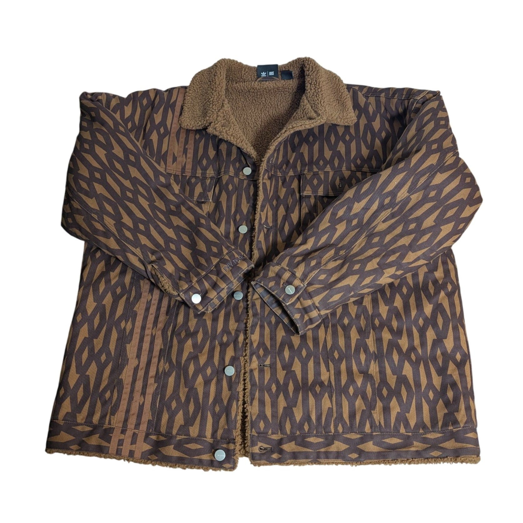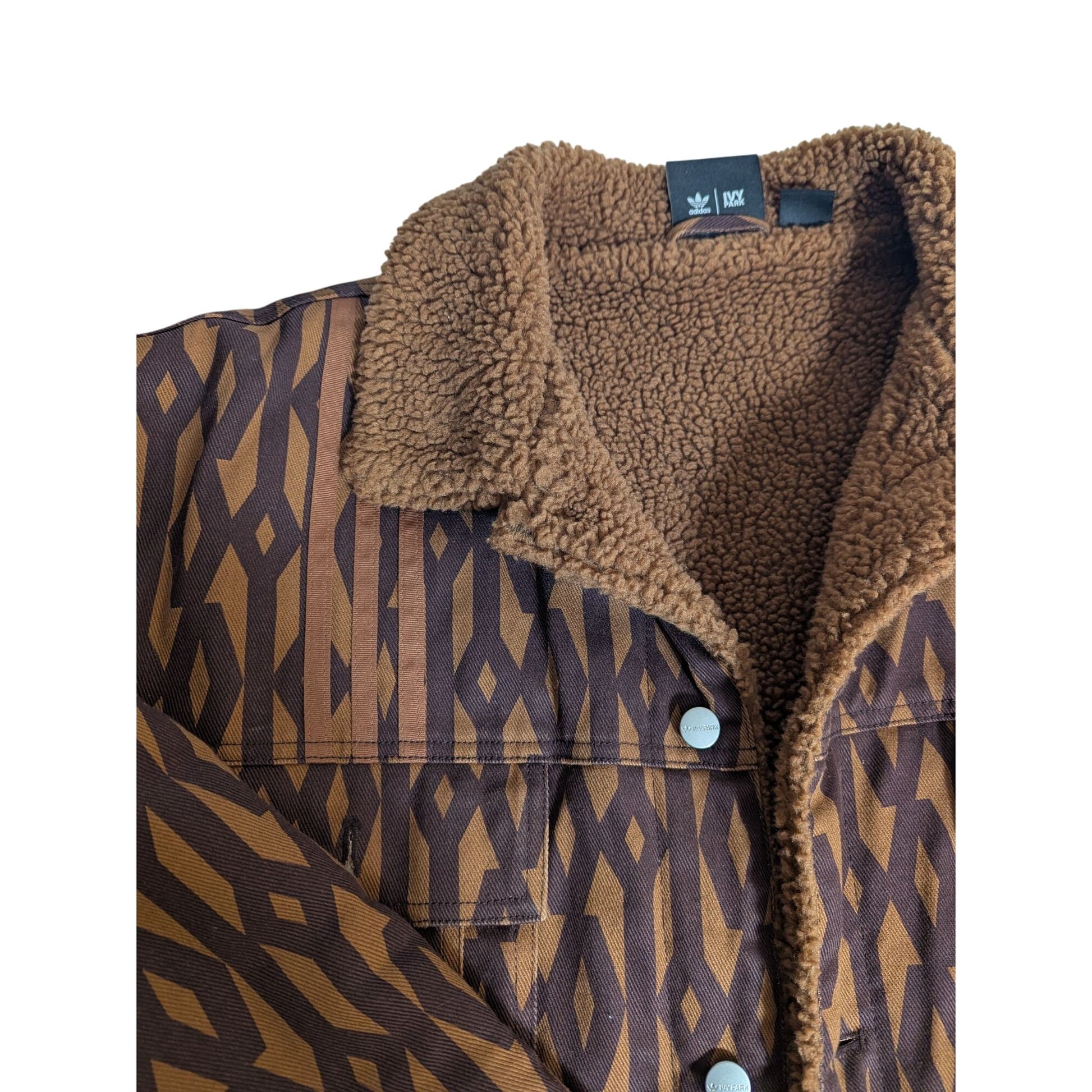 Veste oversize doublée sherpa Adidas X IVY PARK, motif marron intégral, boutons-pression, streetwear pour homme et femme