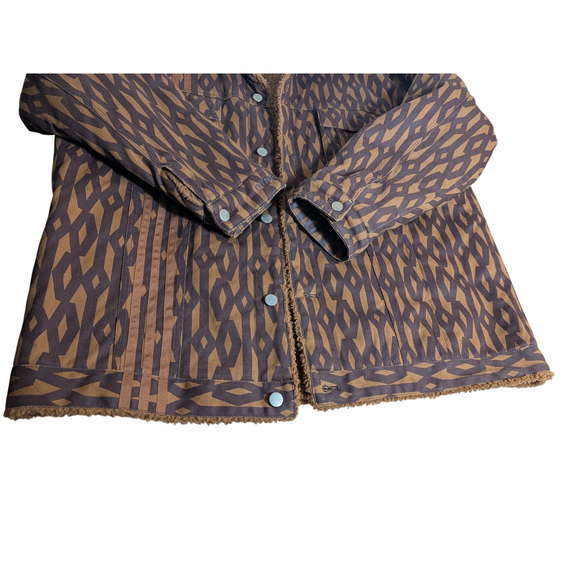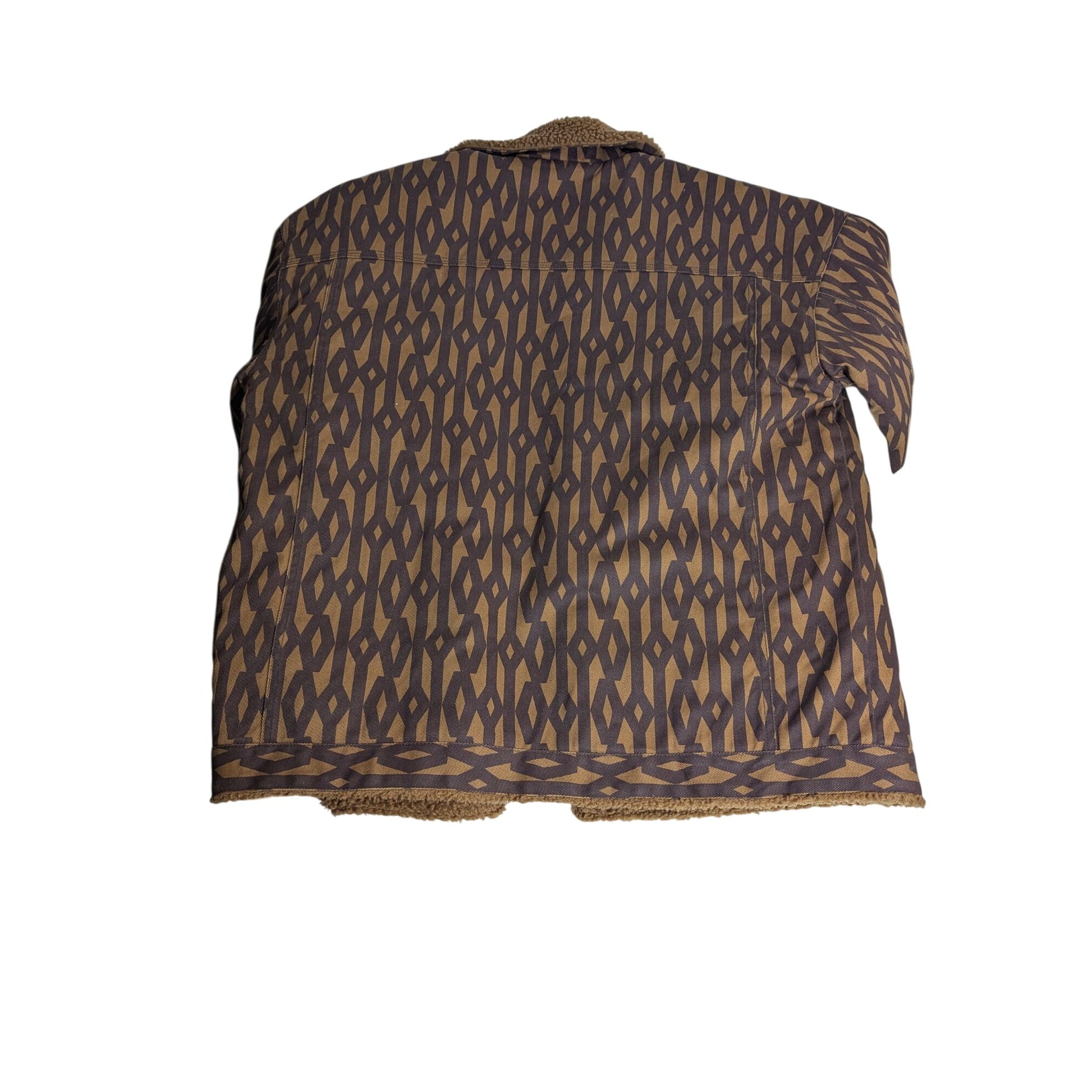 Douce et chaude, cette veste oversize, ornée d'imprimés géométriques audacieux, offre un look affirmé et une doublure sherpa douillette pour plus de confort.