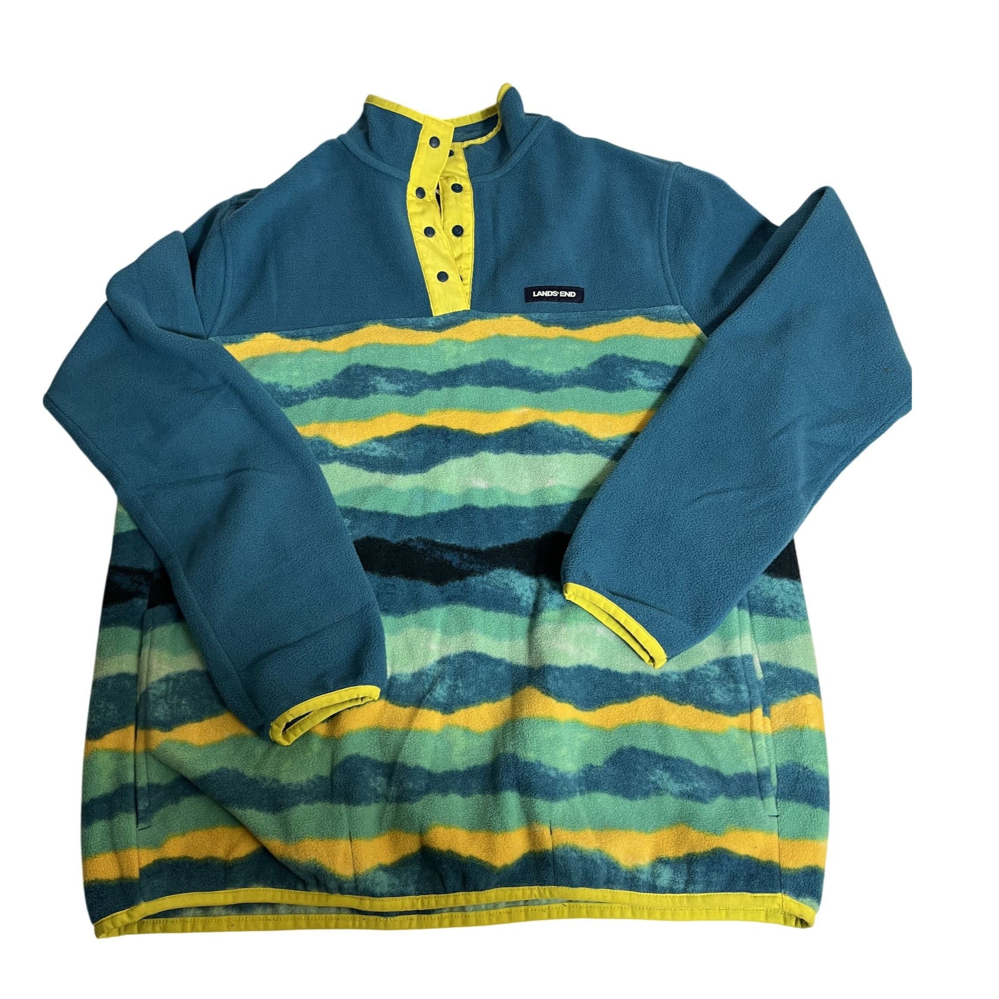 Cette veste polaire Lands' End allie chaleur et style avec son motif rayé unique, idéale pour une tenue décontractée ou pour les aventures en plein air.