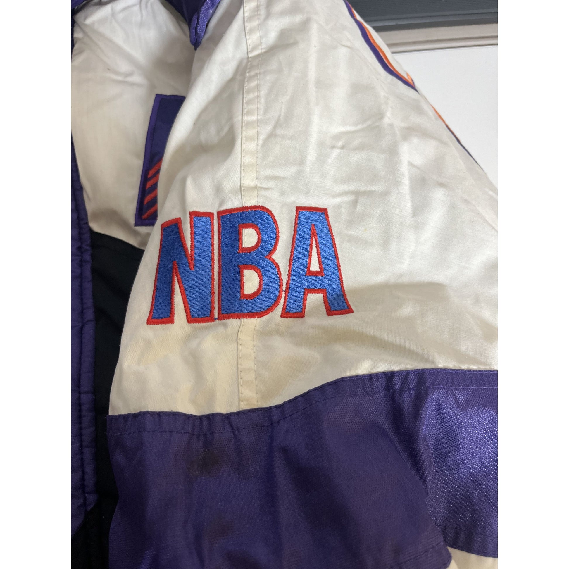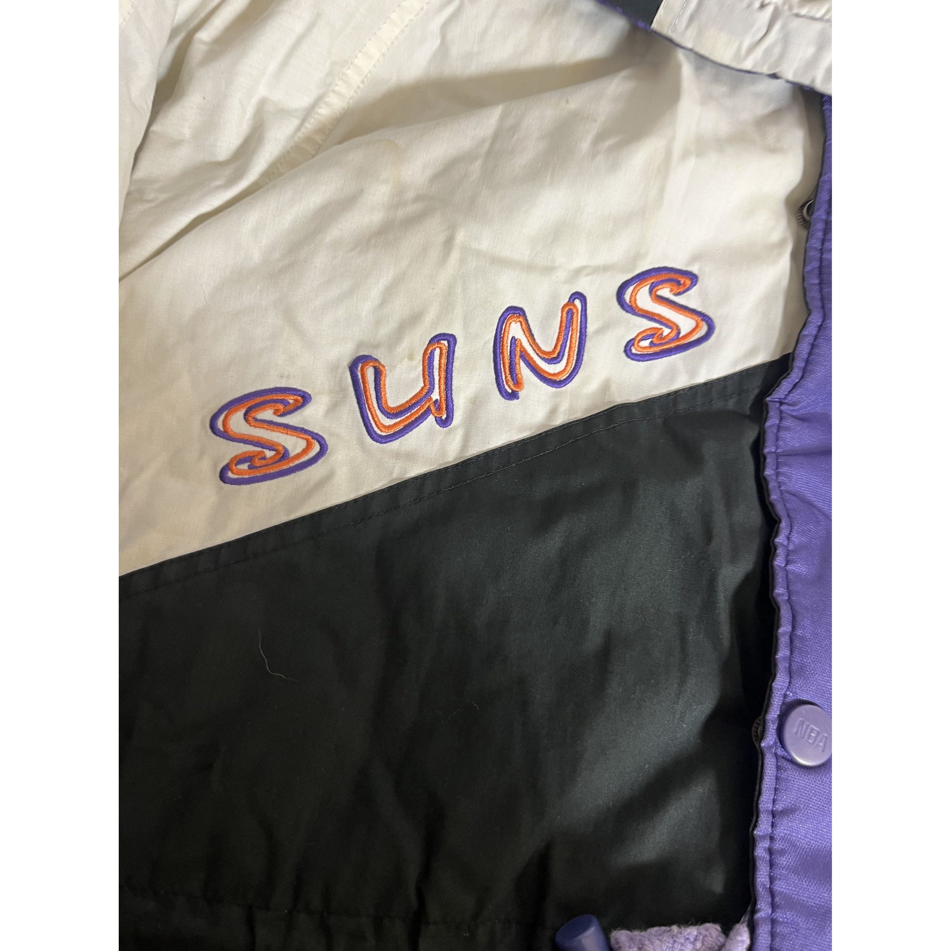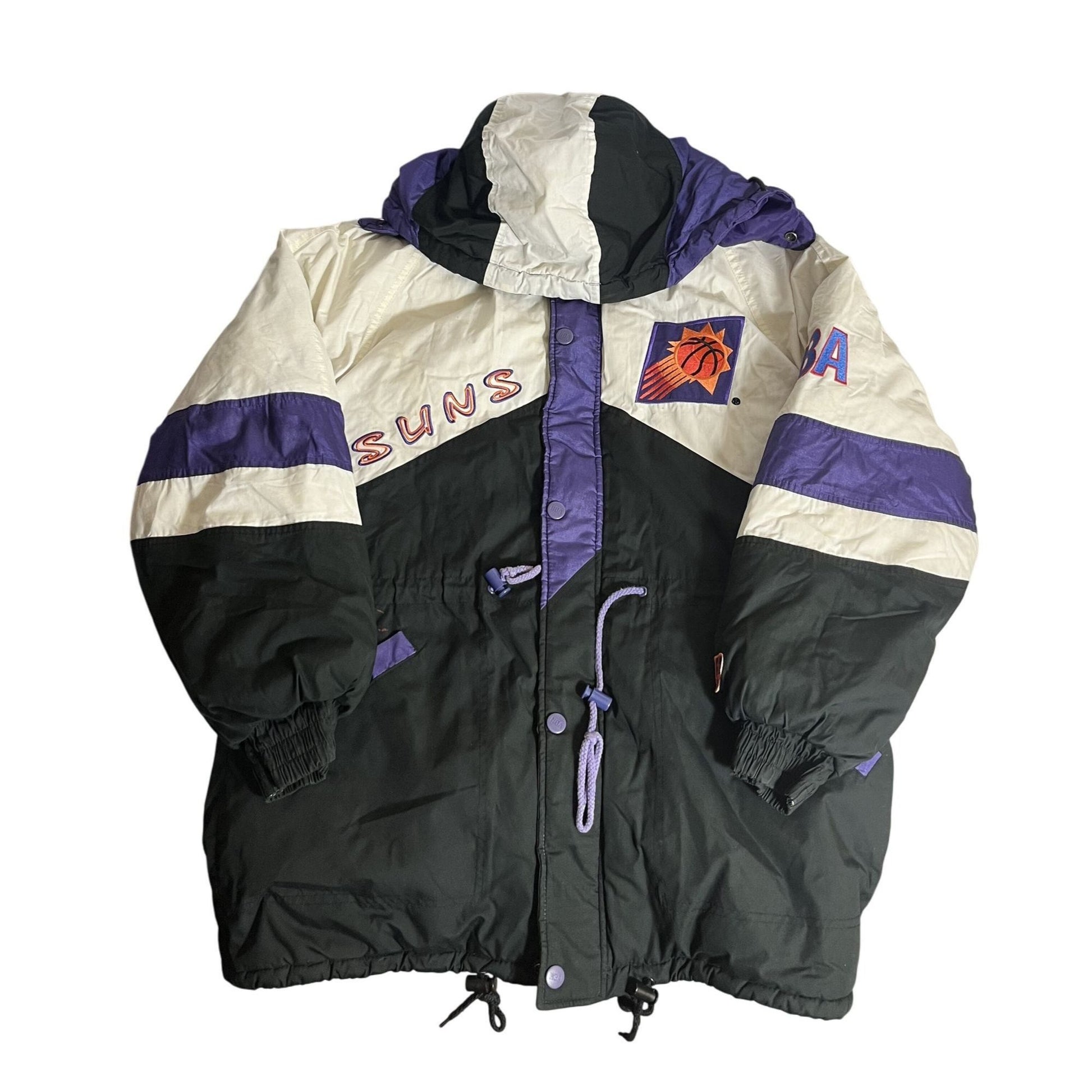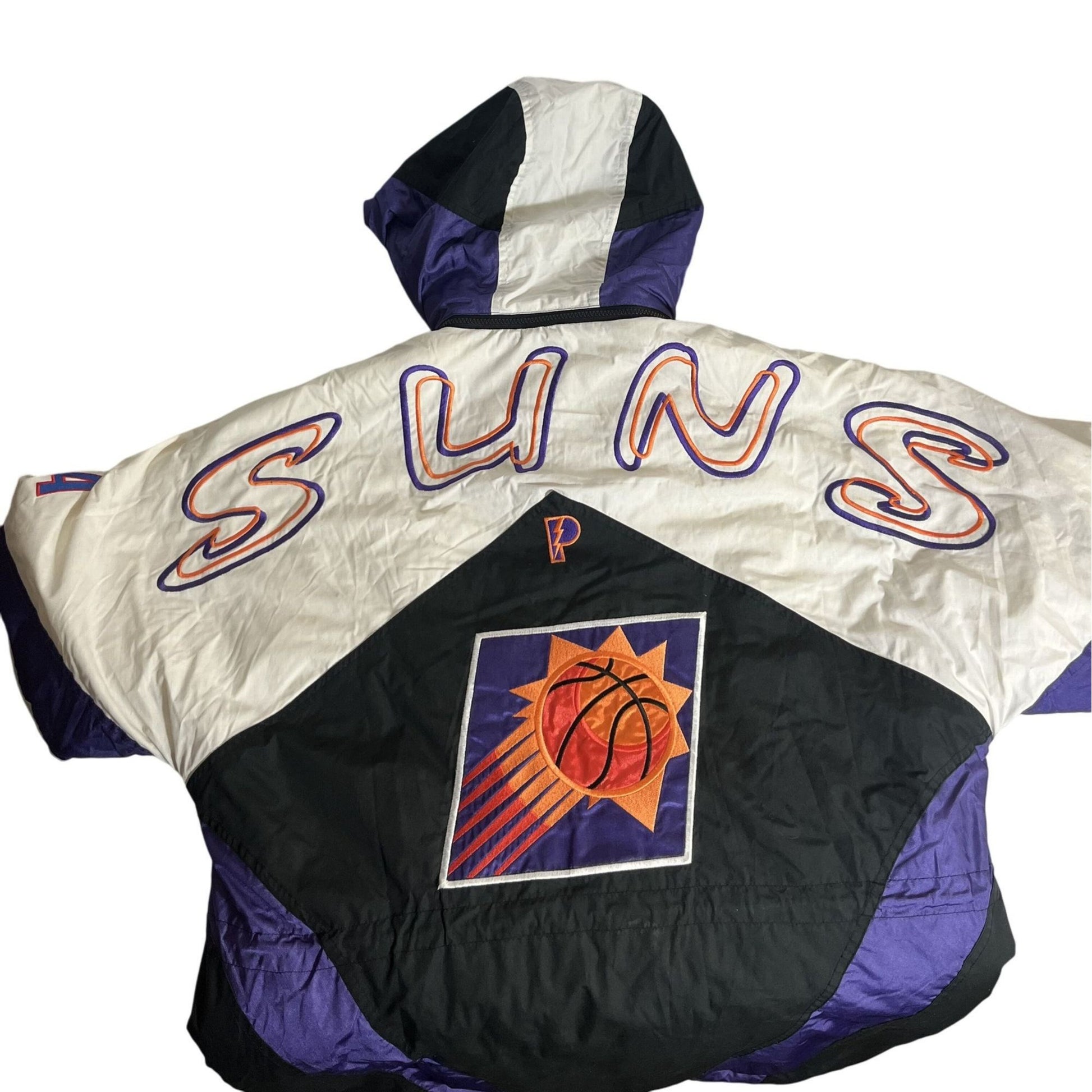 Veste rétro des Phoenix Suns M par Pro Layer, colorblock, avec patch logo et capuche, style NBA années 90