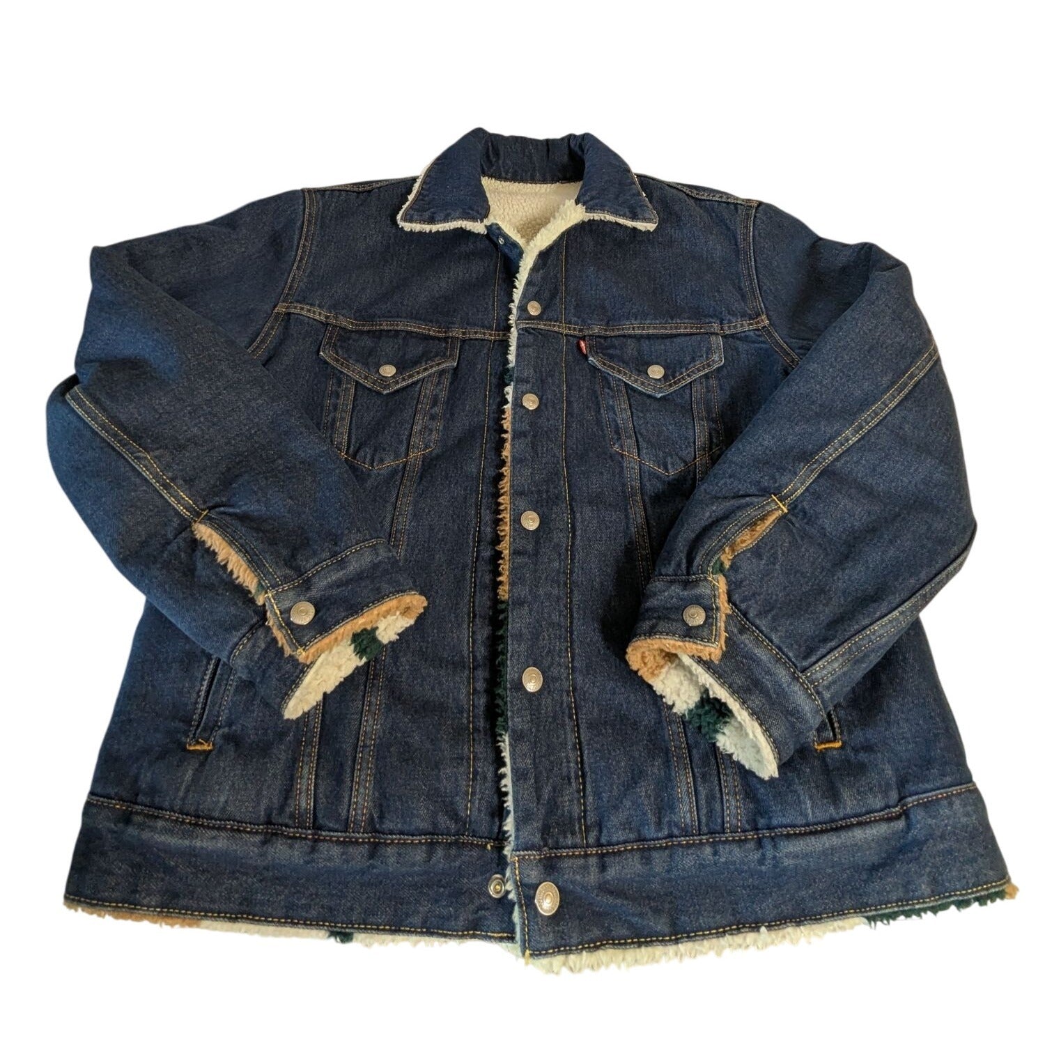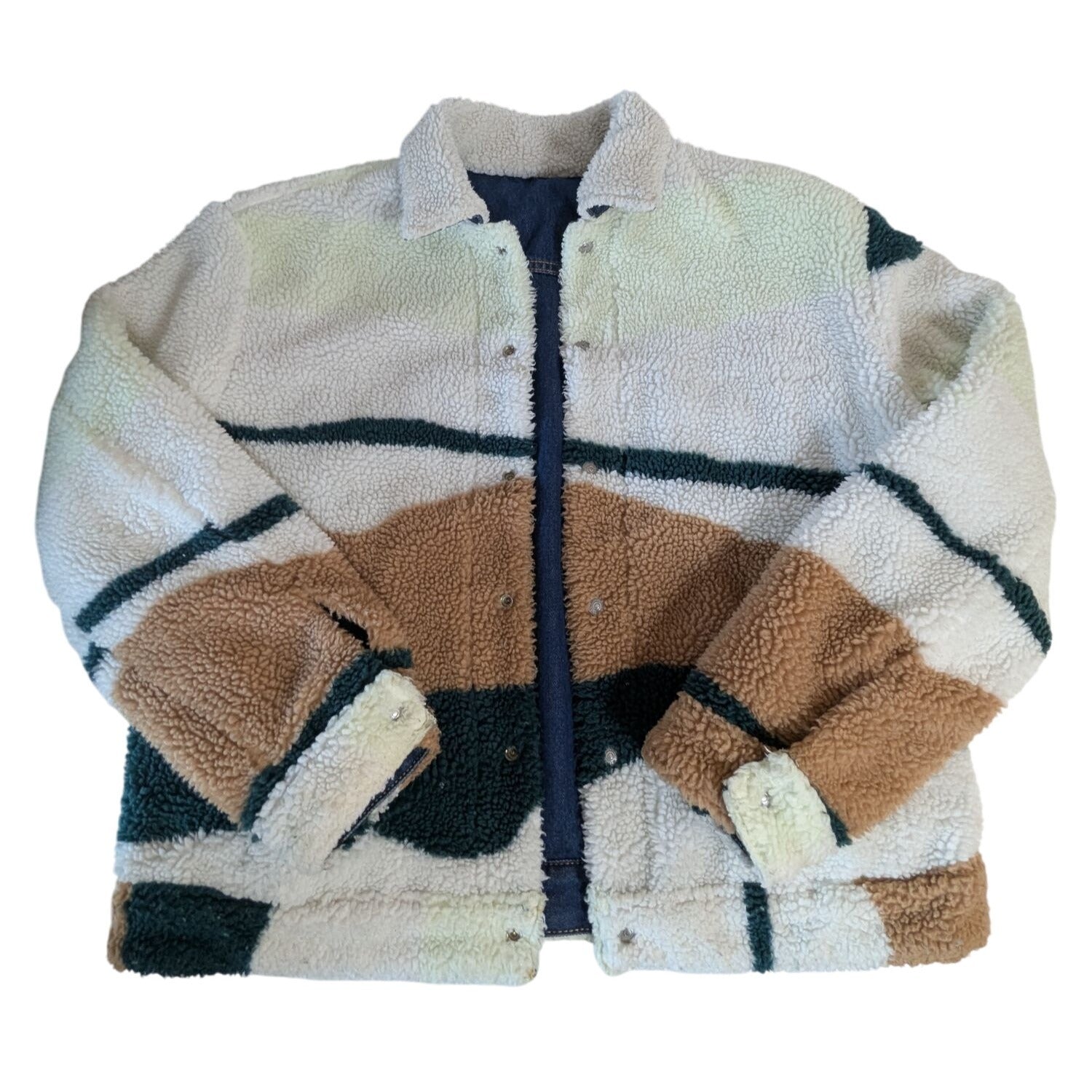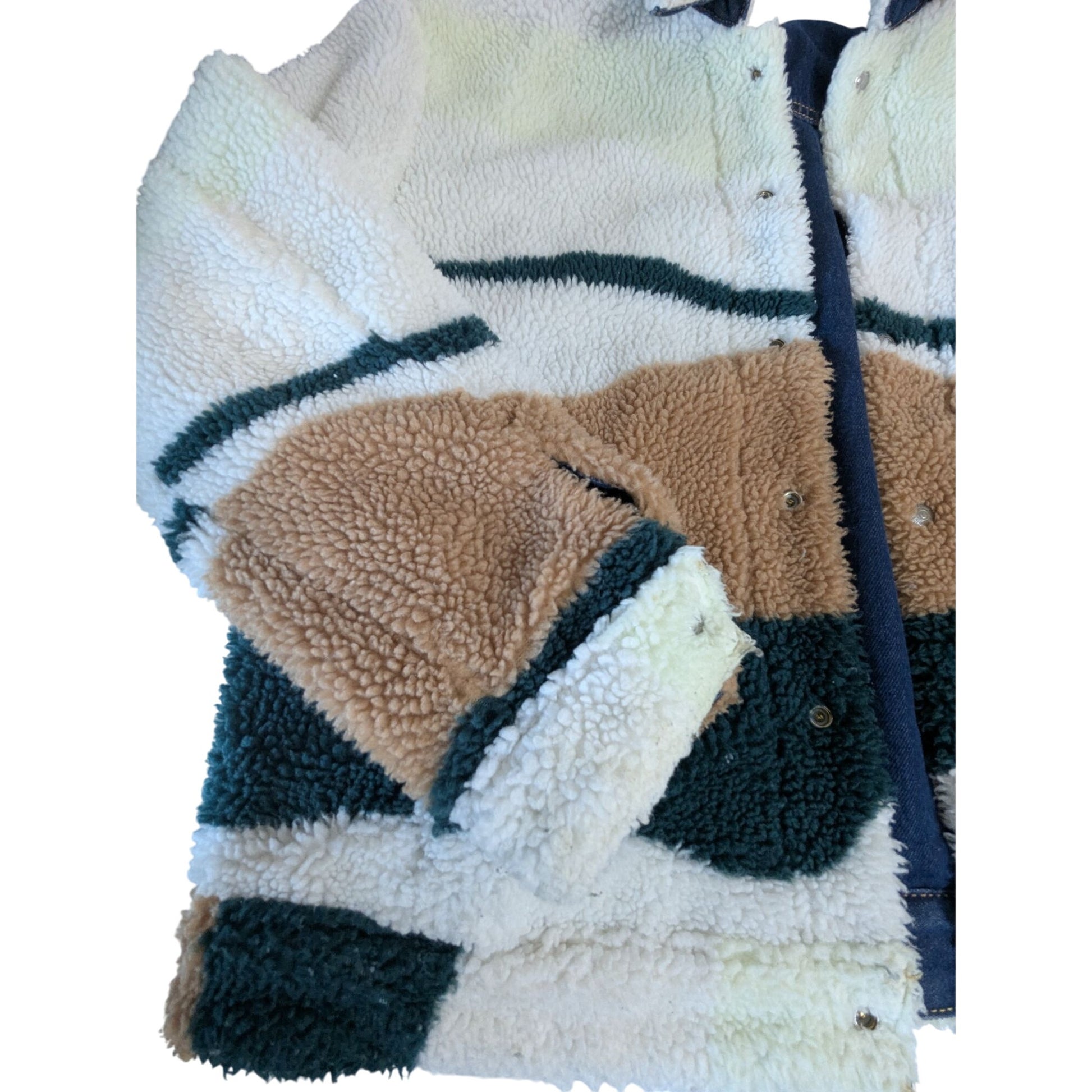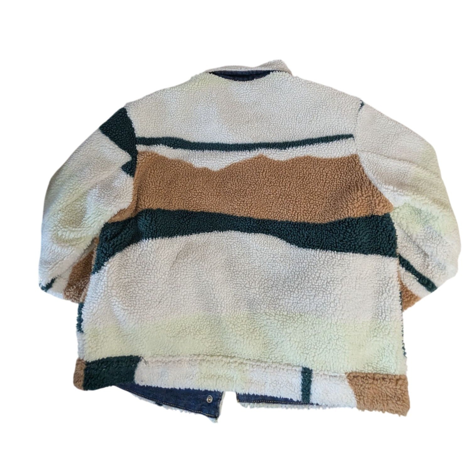 Une veste réversible polyvalente alliant denim robuste et sherpa douillet, avec un élégant motif colorblock. Idéale pour superposer chaleur et style décontracté.
