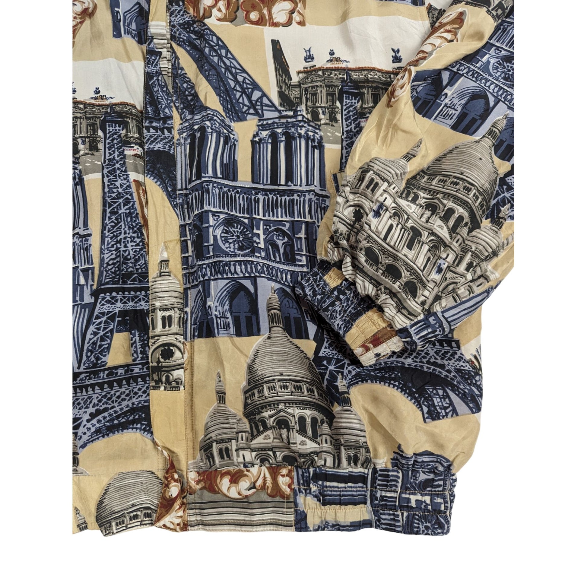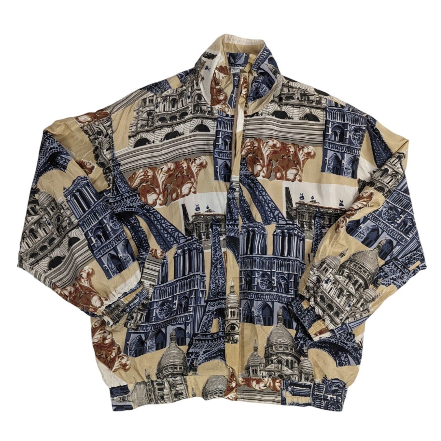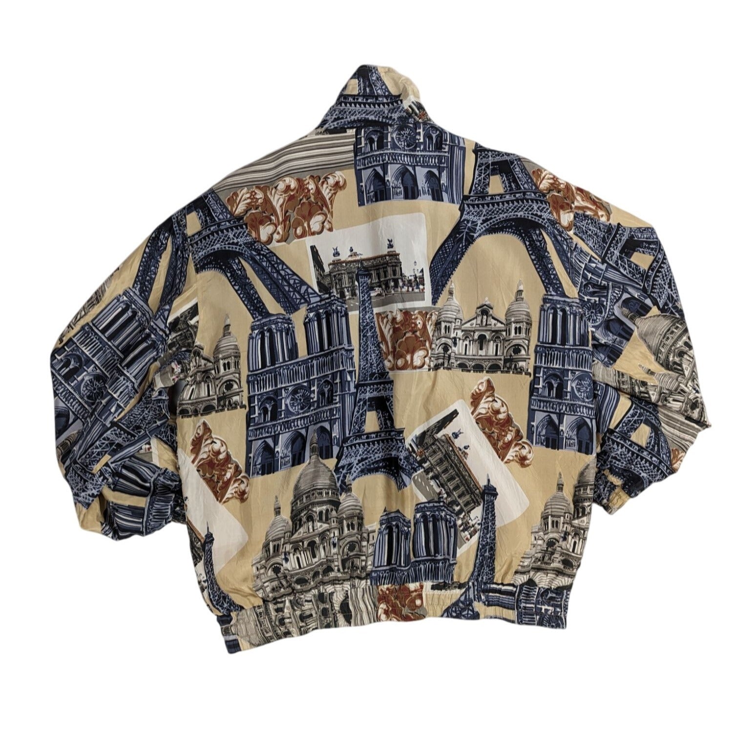 Veste vintage à imprimé monuments parisiens beige et bleu