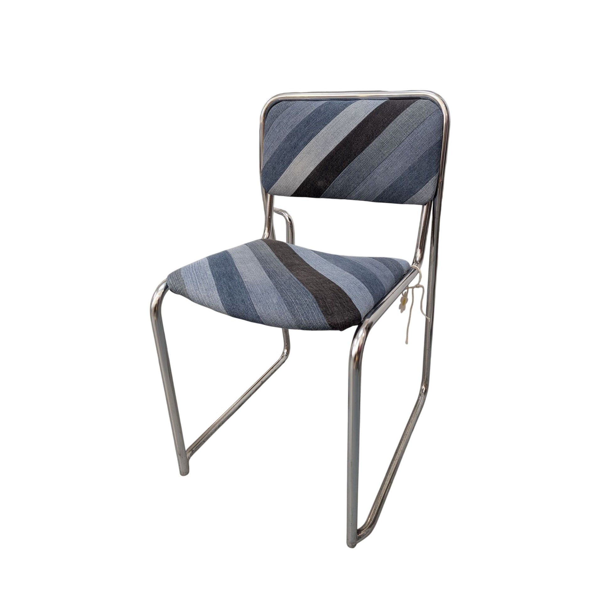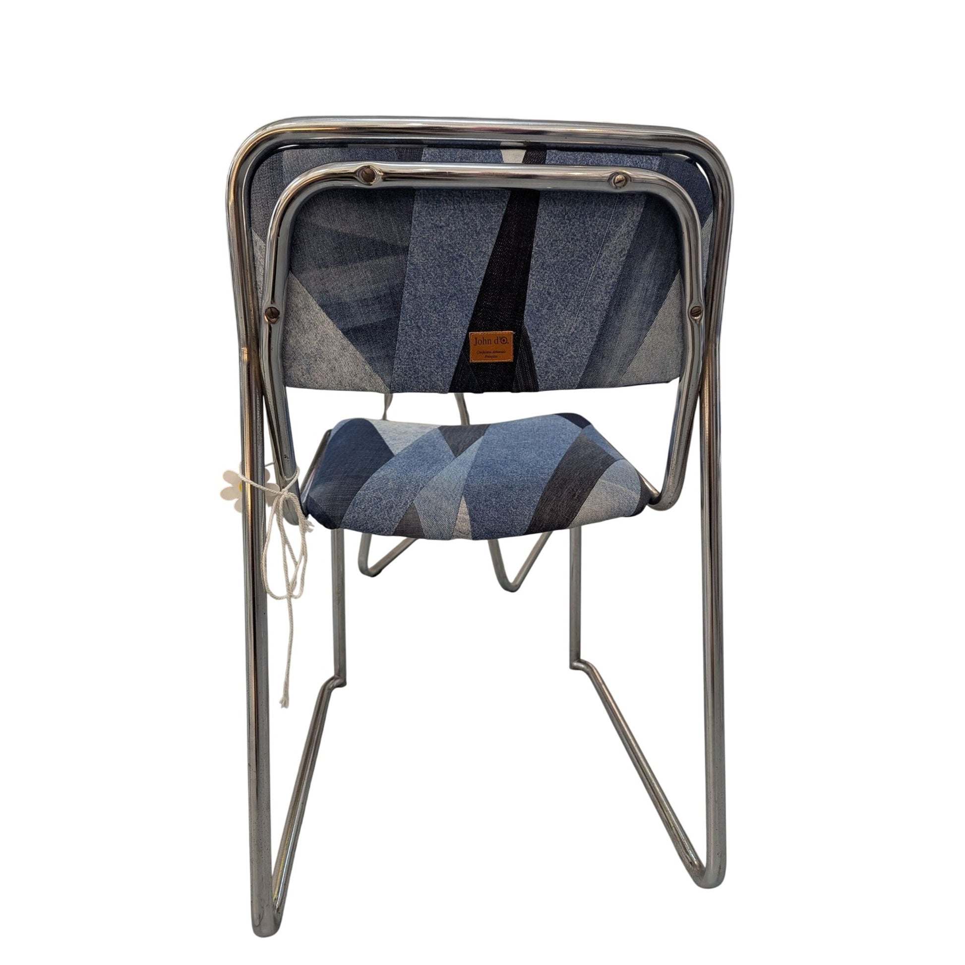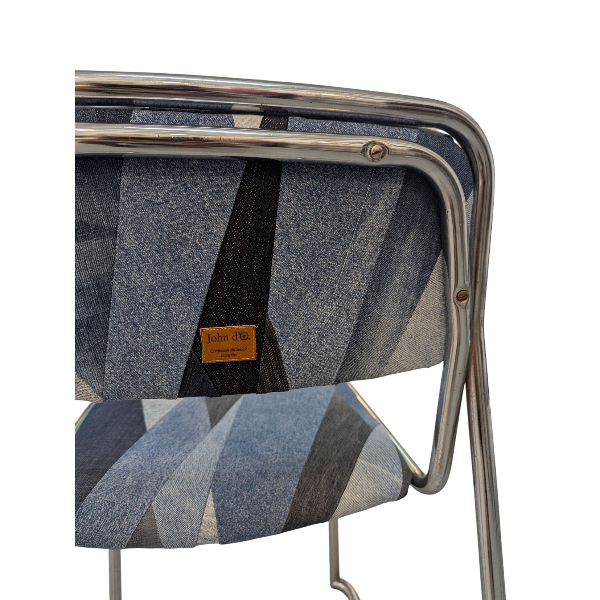 Vintage John Do Chaise Rétro En Métal Chromé & Tissu Patchwork Denim