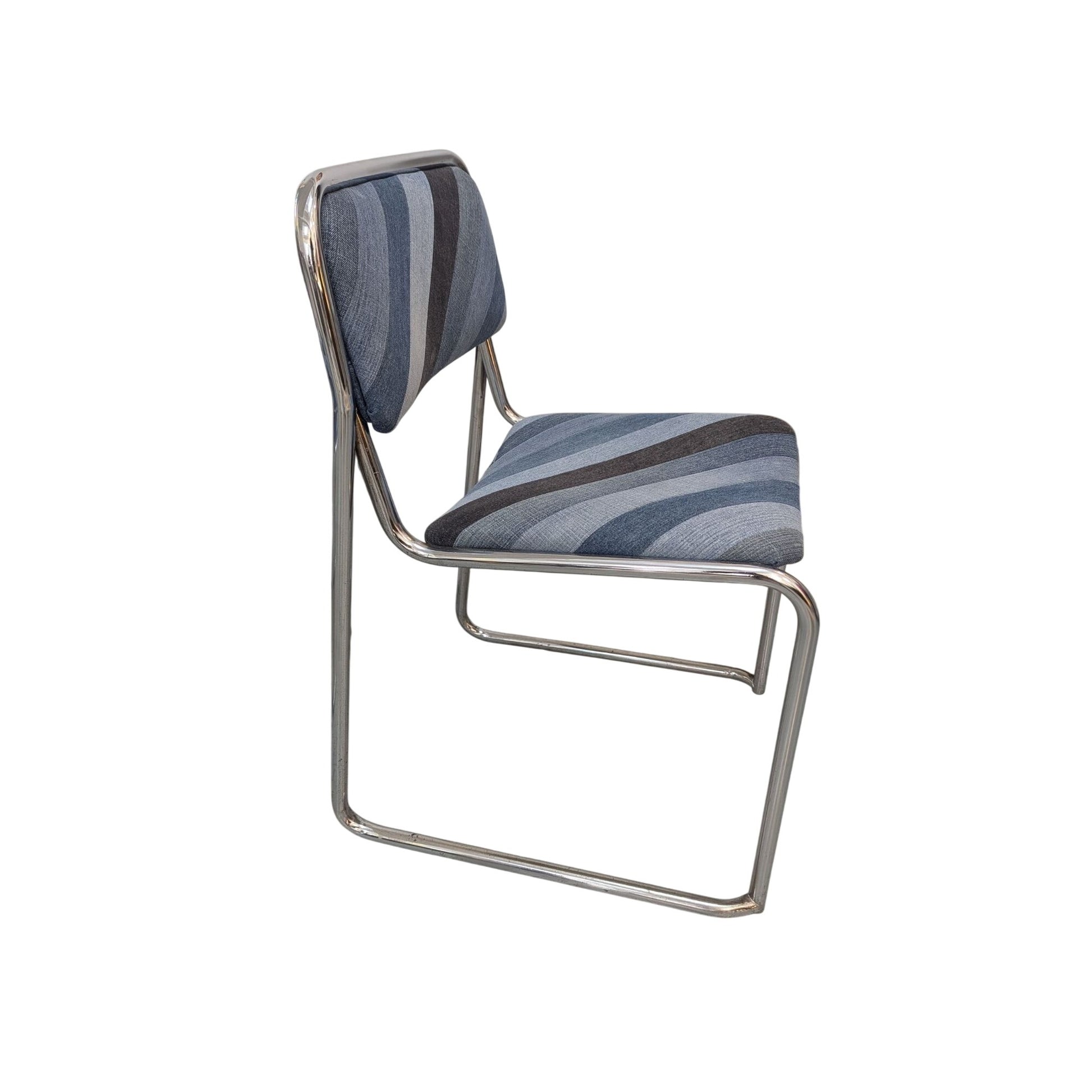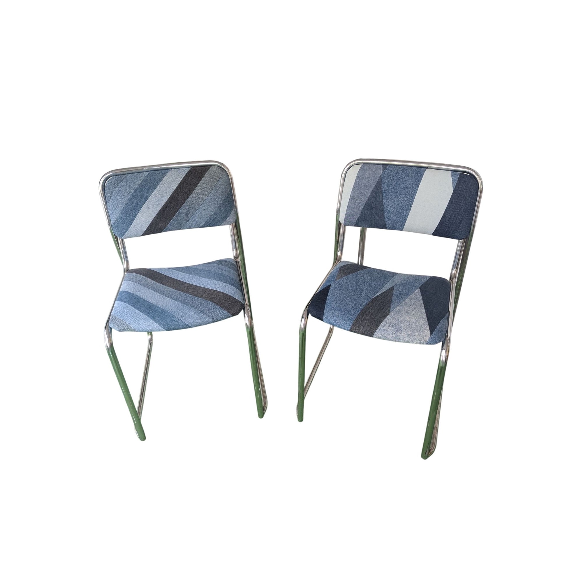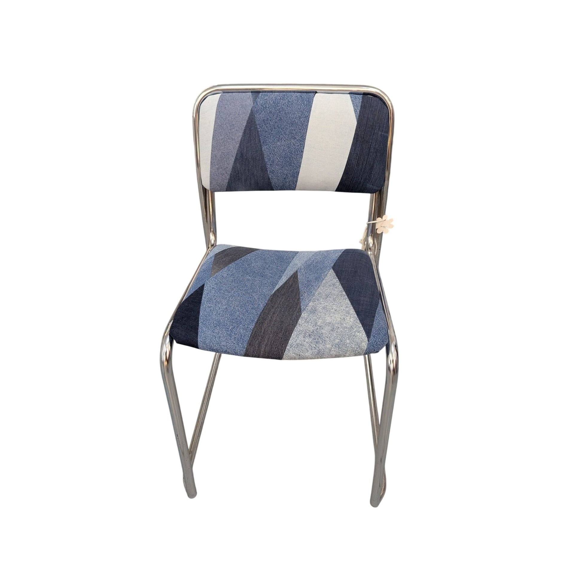Vintage John Do Chaise Rétro En Métal Chromé & Tissu Patchwork Denim