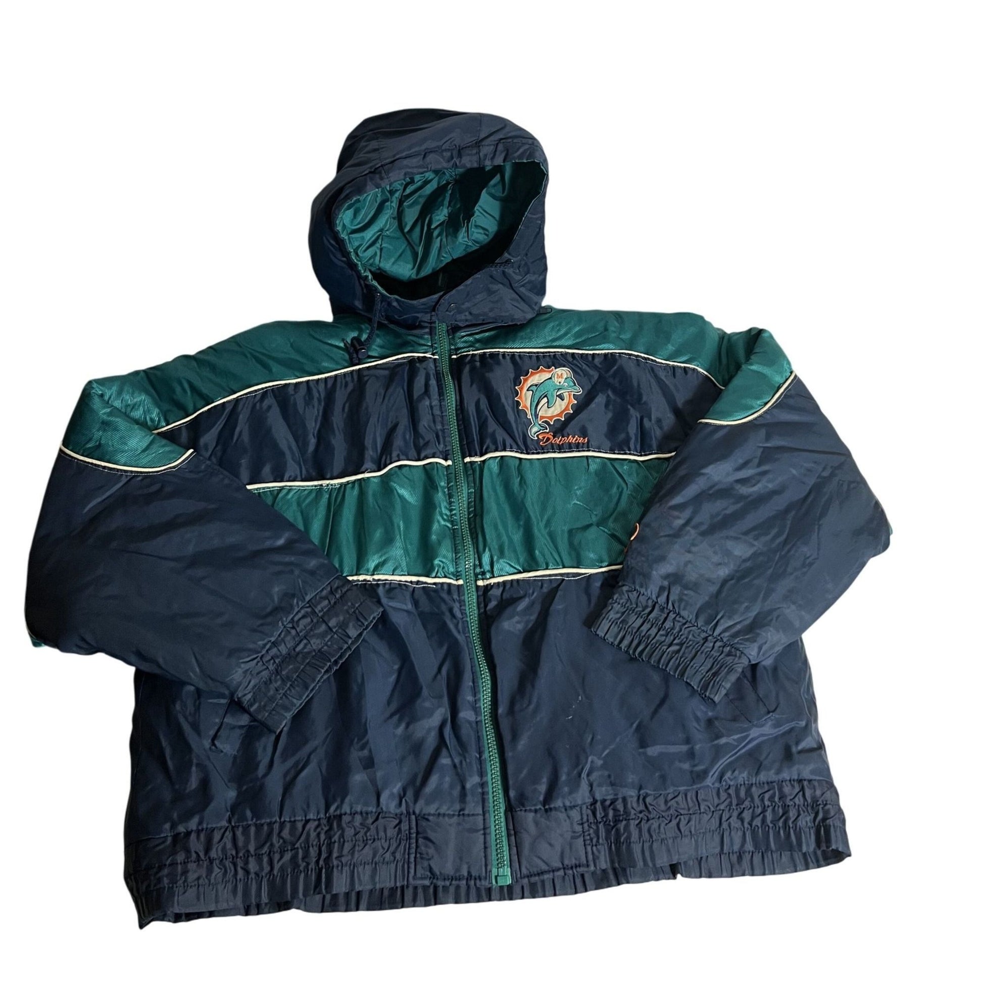 vintage Miami Dolphins Veste à capuche M Taille Nylon & Polyester Marine/Vert avec logo brodé