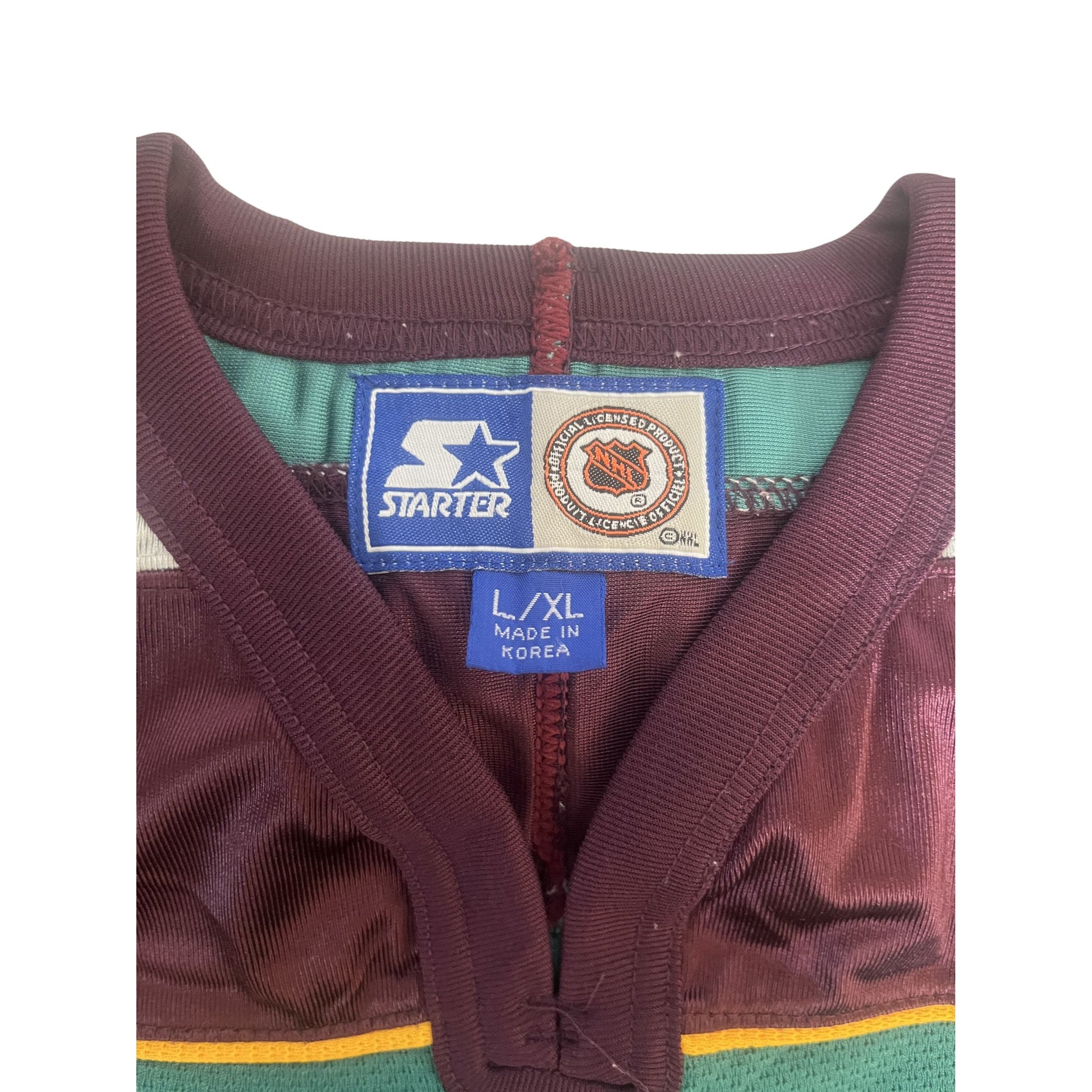 Maillot de hockey vintage des Mighty Ducks de la LNH, taille L/XL, bleu sarcelle/bordeaux
