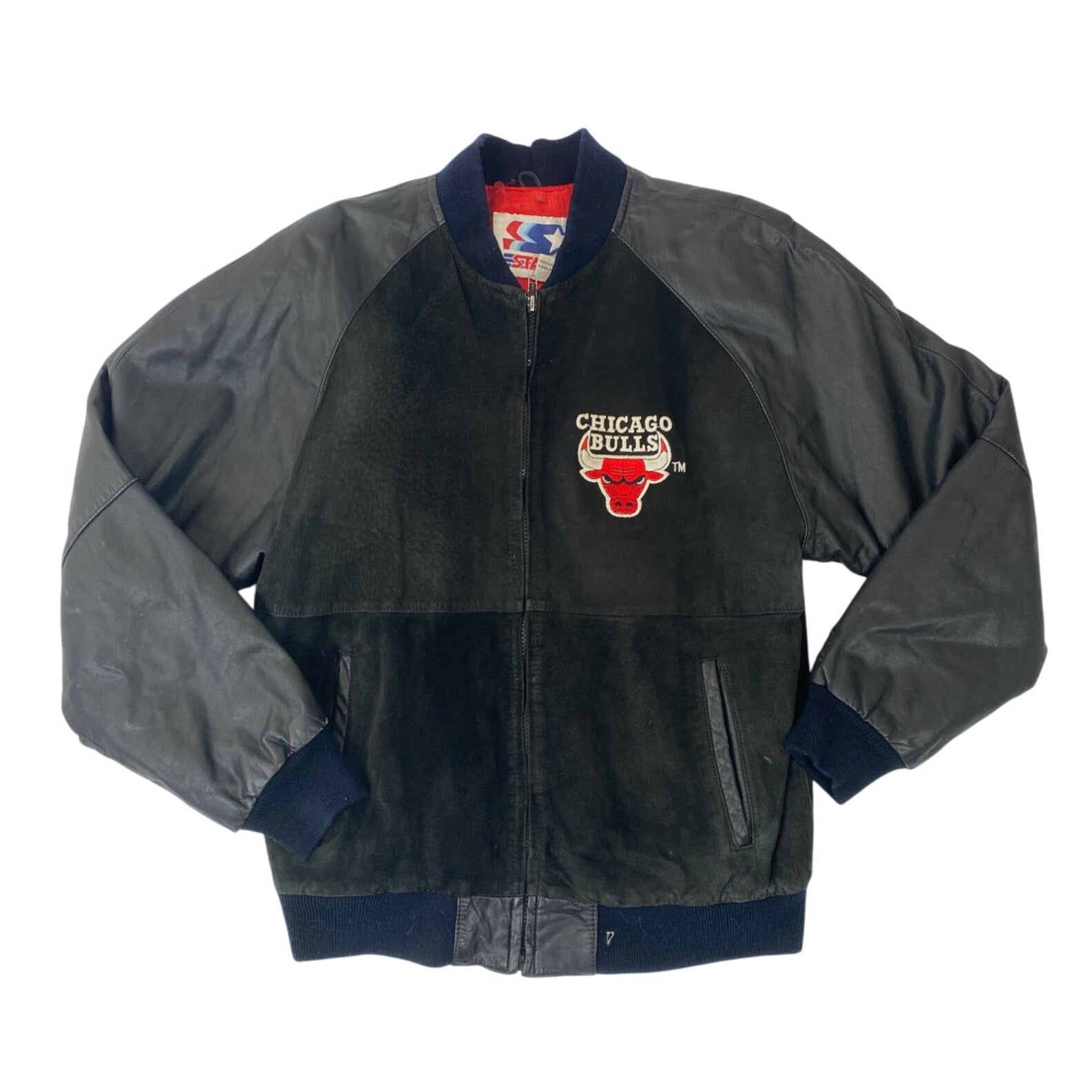 vintage Starter Chicago Bulls Cuir &Laine Varsity Jacket Taille M