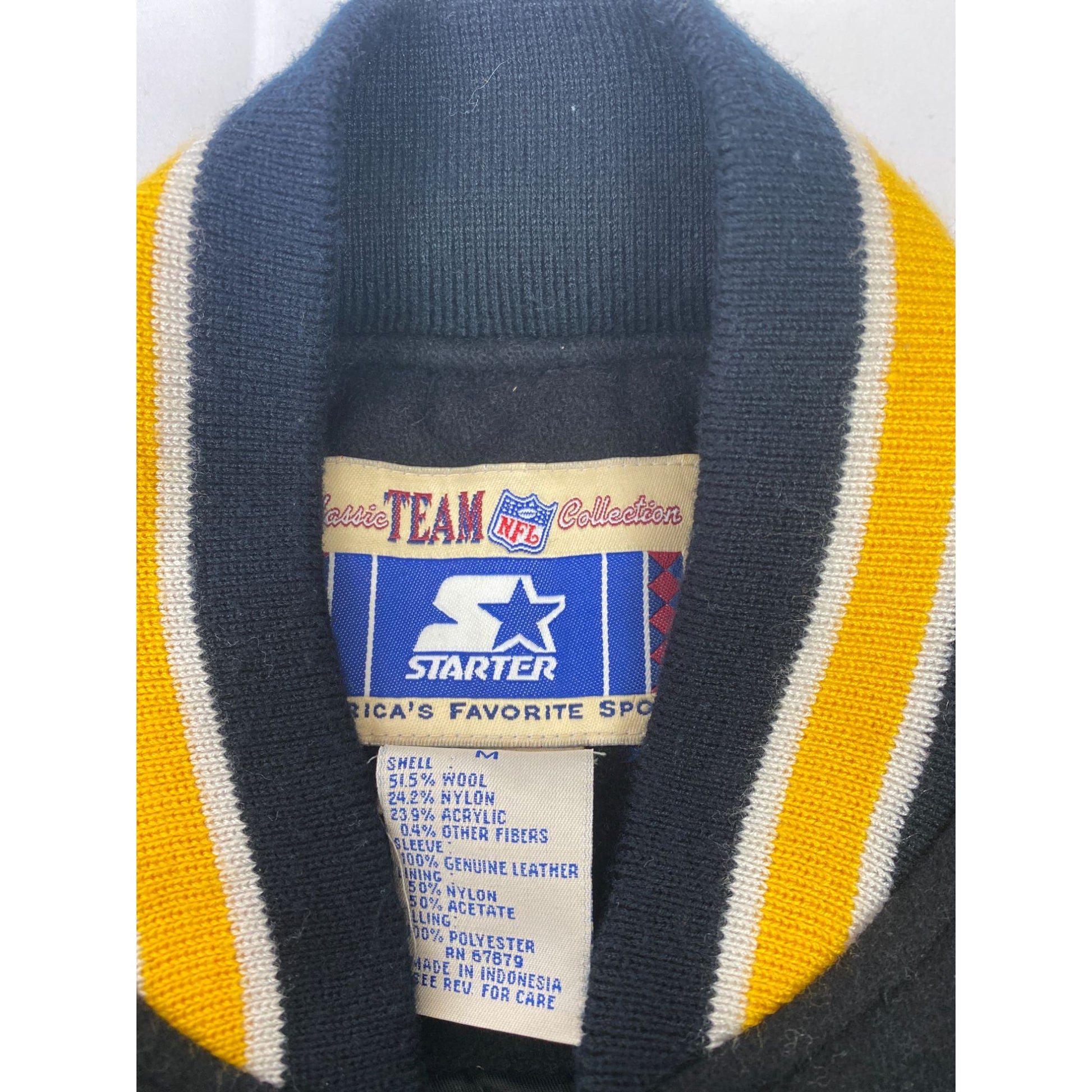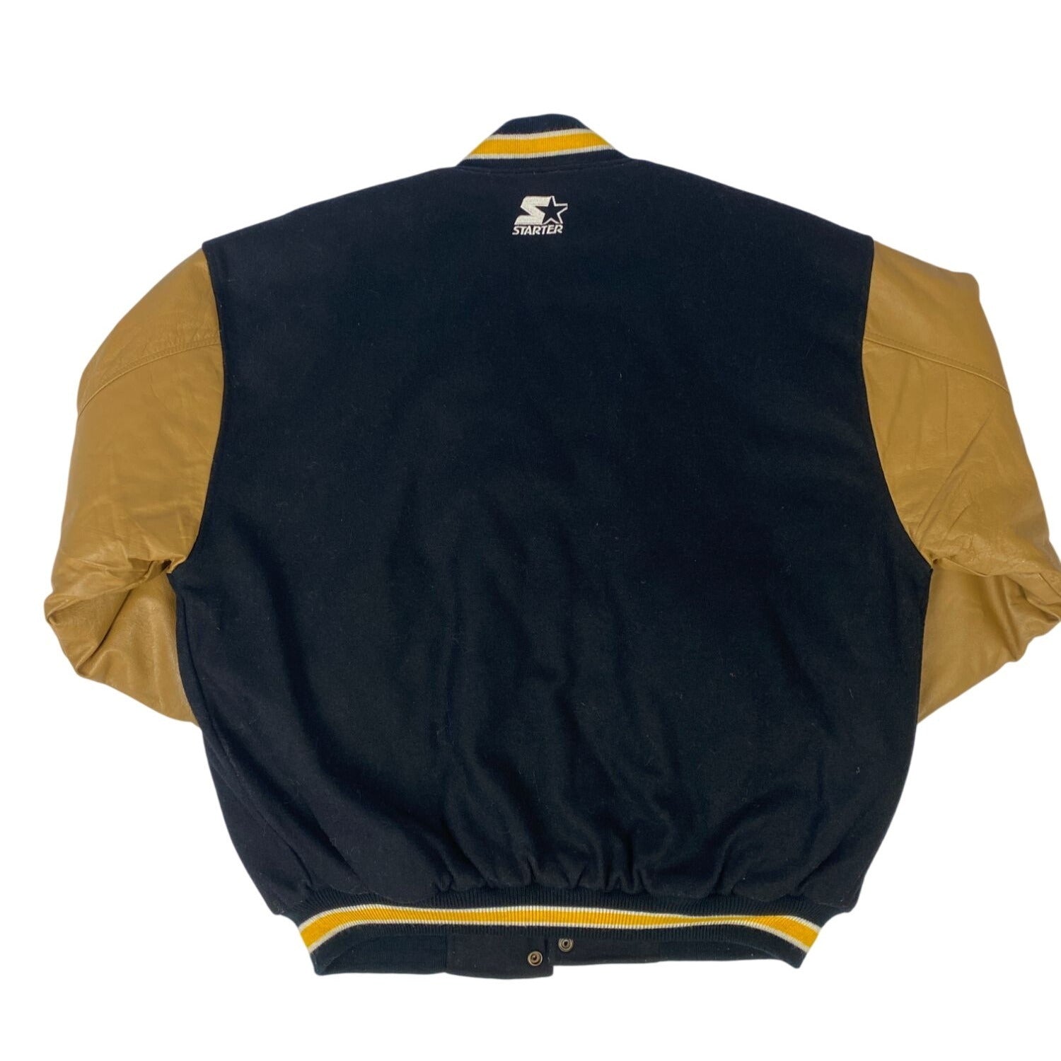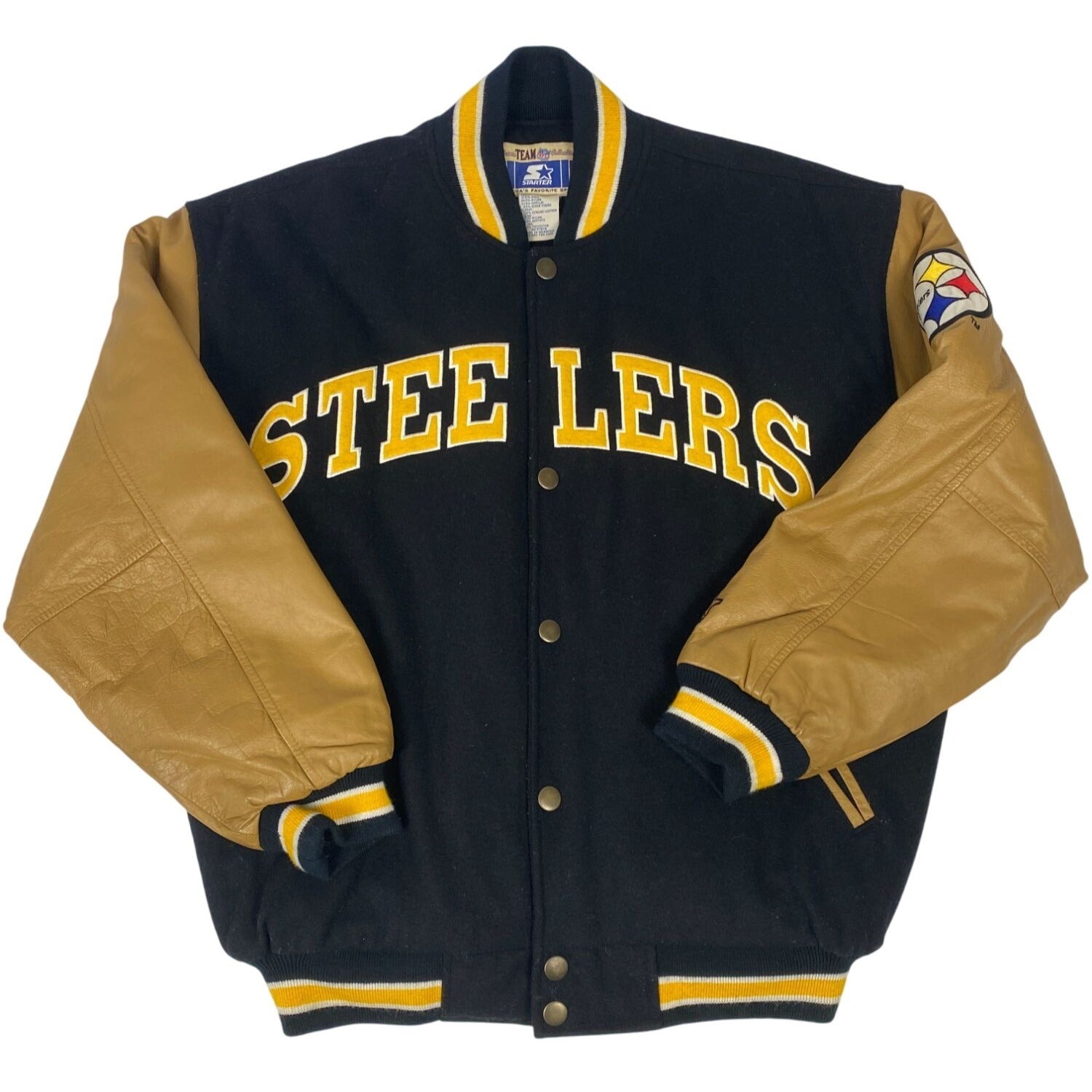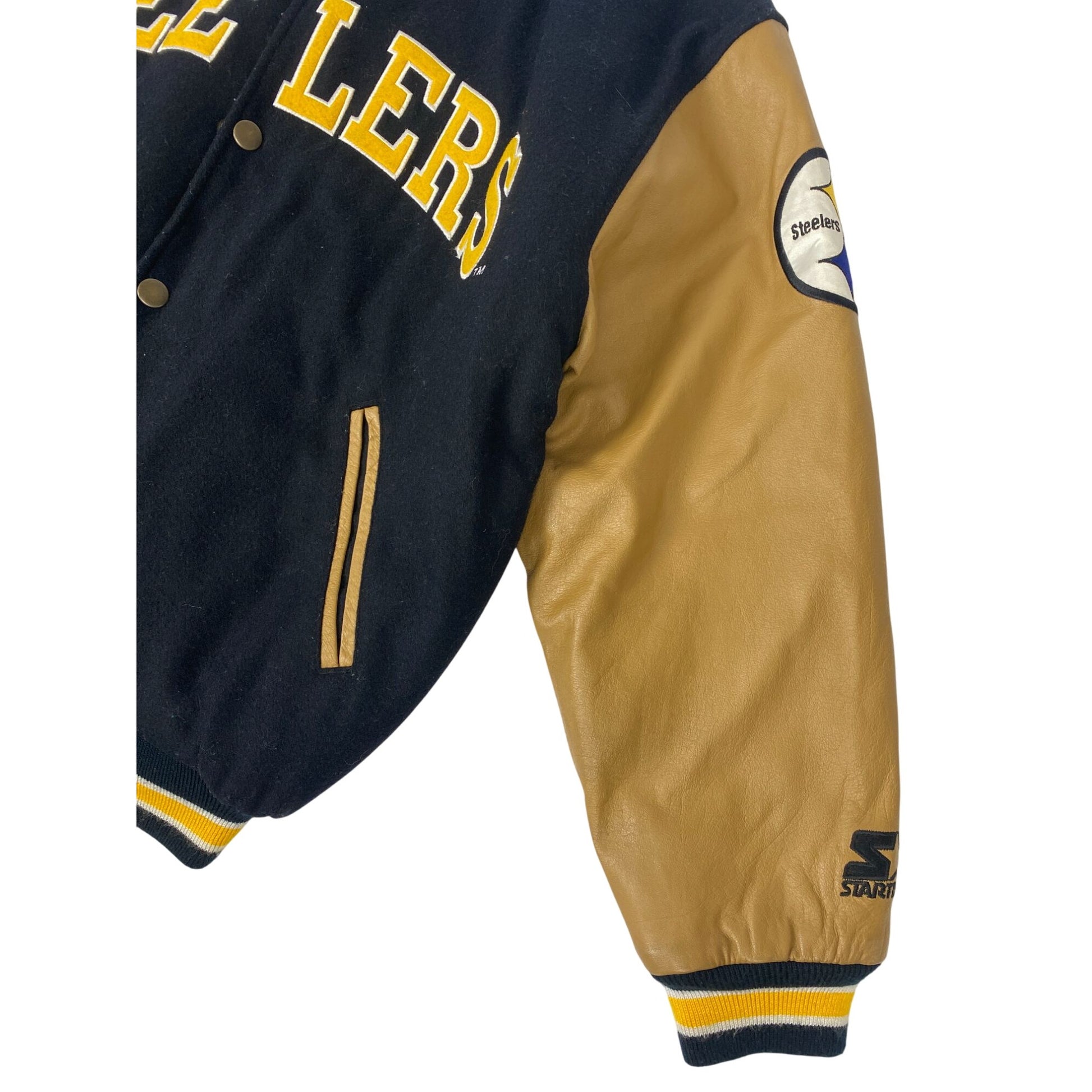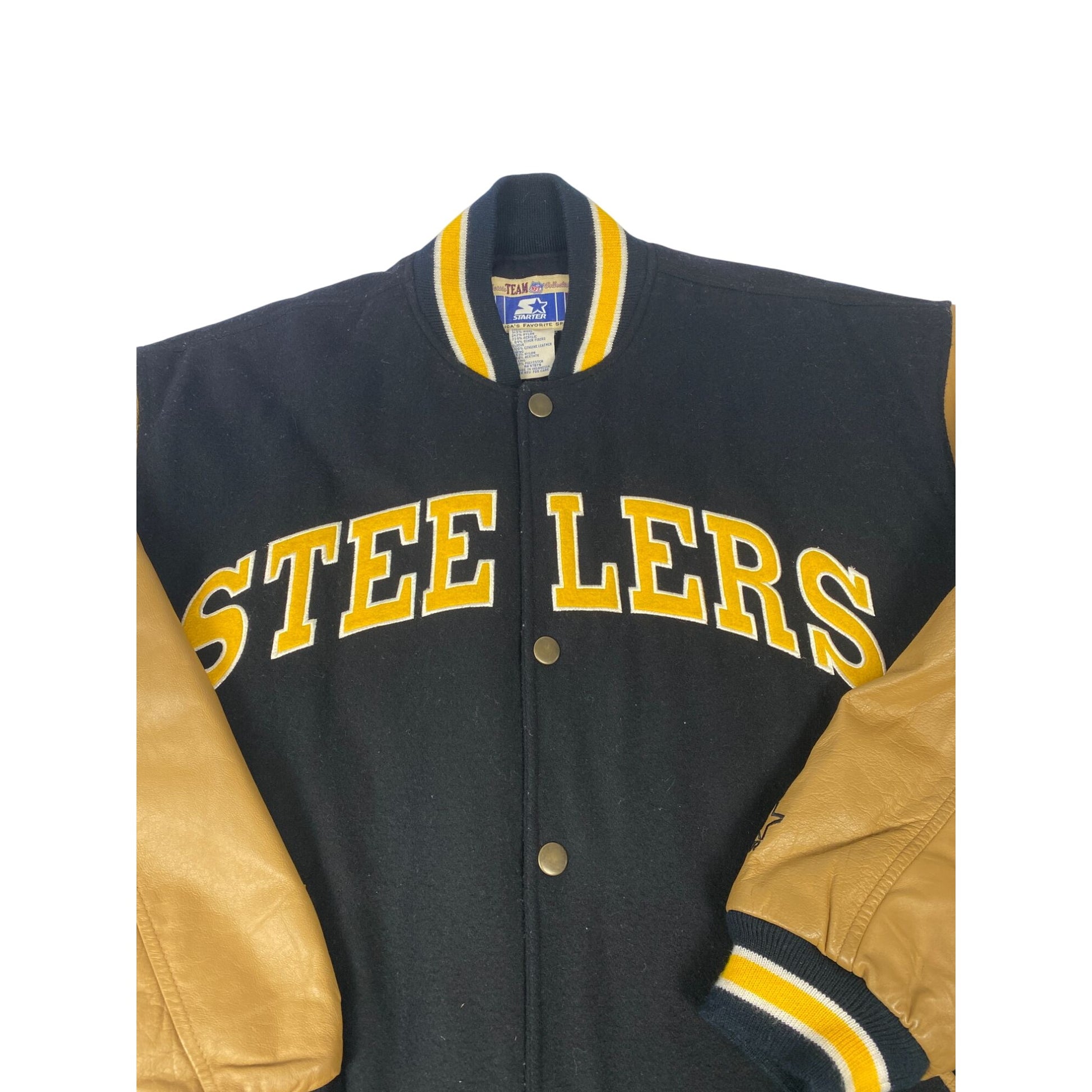 vintage Starter NFL Team Collection Pittsburgh Steelers Varsity Jacket Homme M Noir Or Laine Cuir